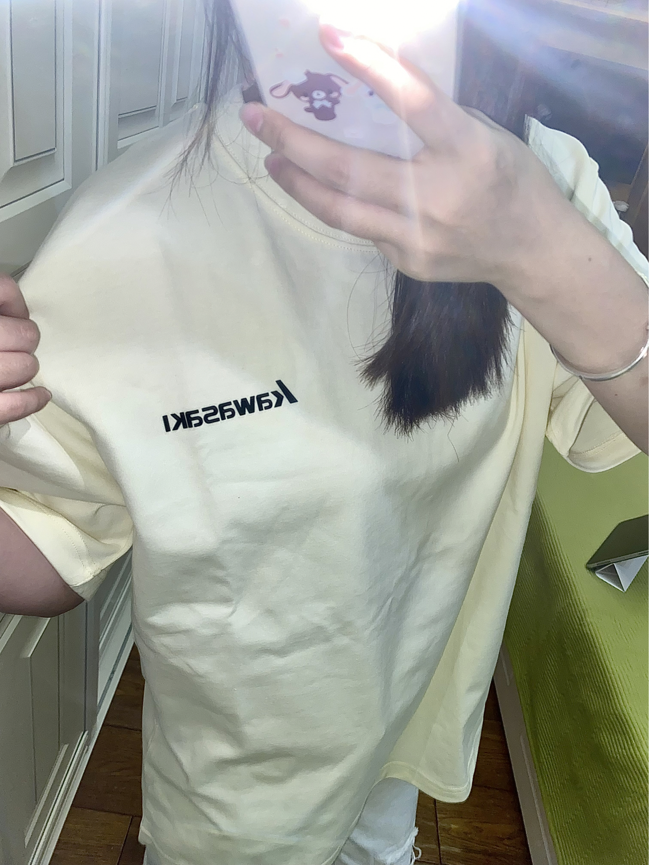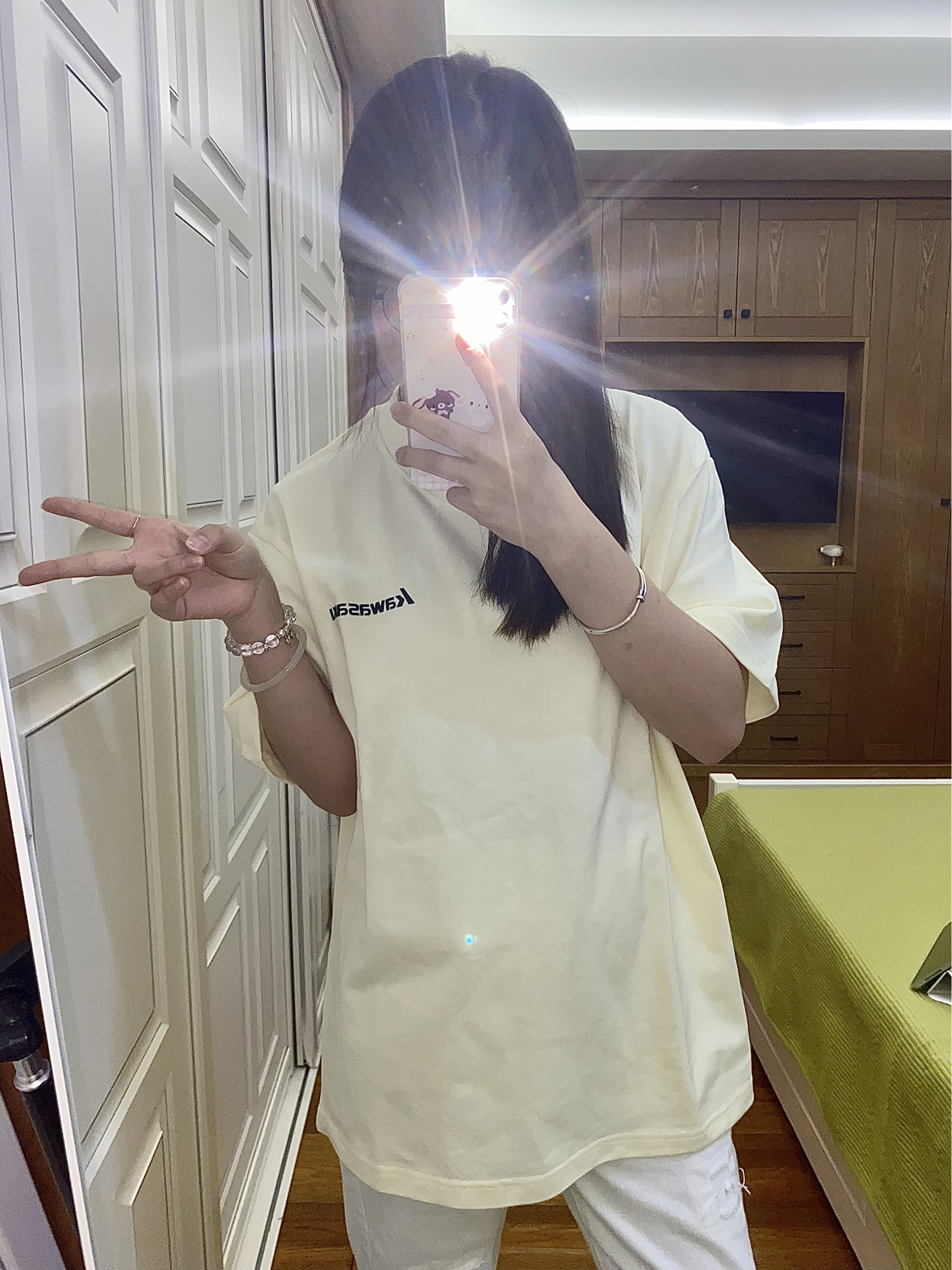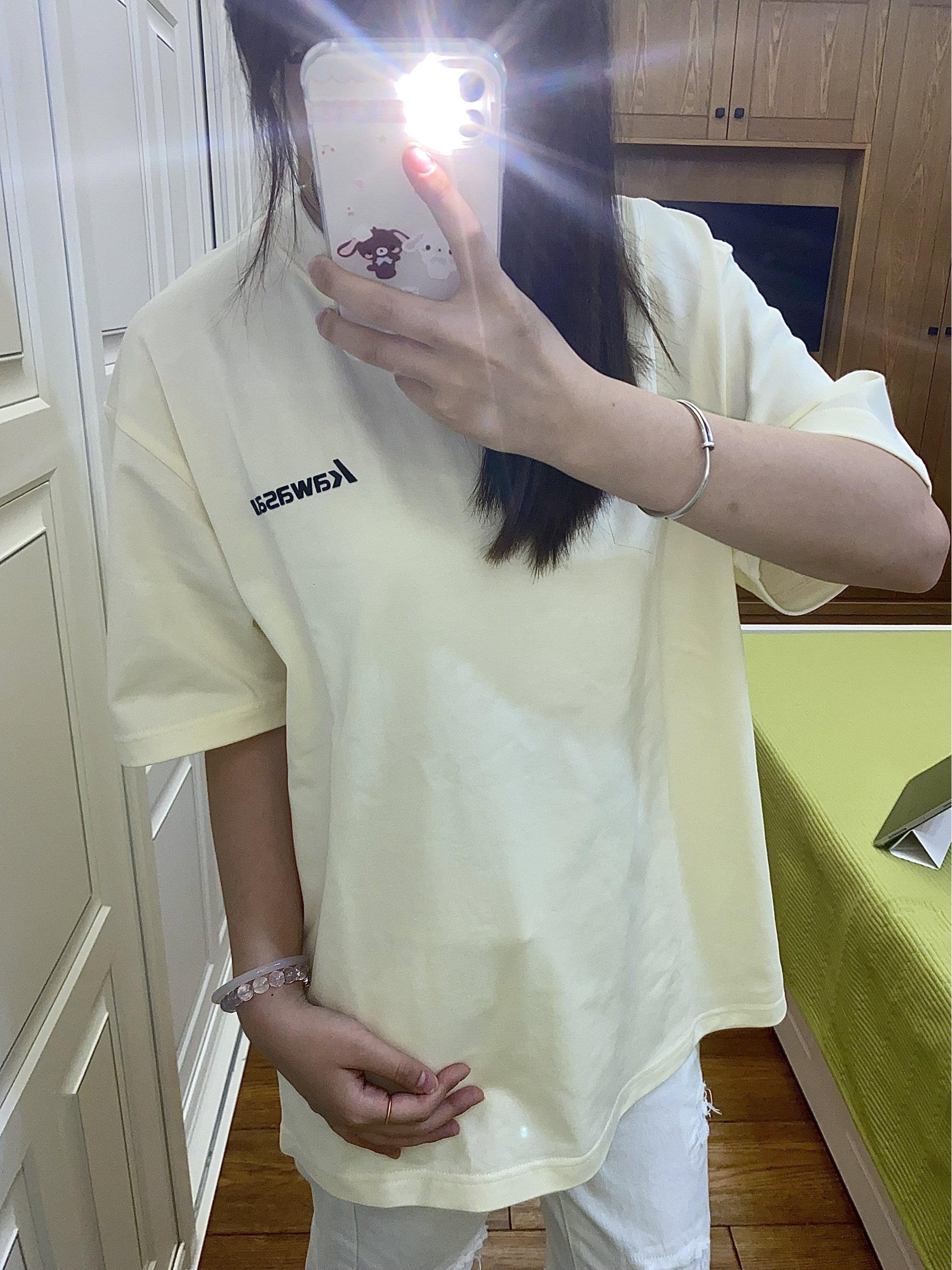 今天穿@Kawasaki川崎运动 家滴短袖 杏色短袖颜色很嫩韩韩滴 胸前做了黑色logo设计 简简单单的一件短袖 夏日必备啊!感觉随便搭都绝了 面料很重磅穿起来又显瘦又舒服滴