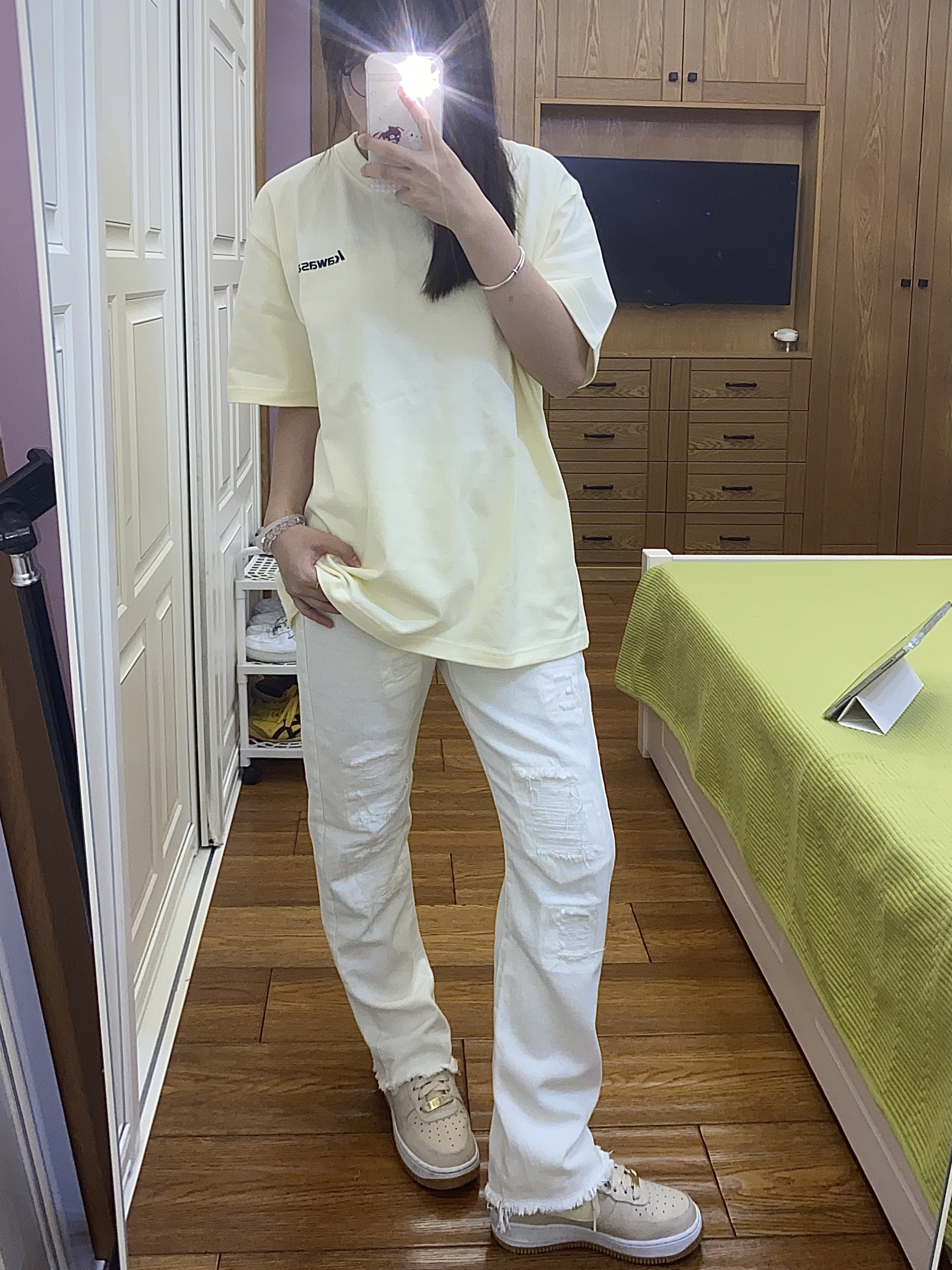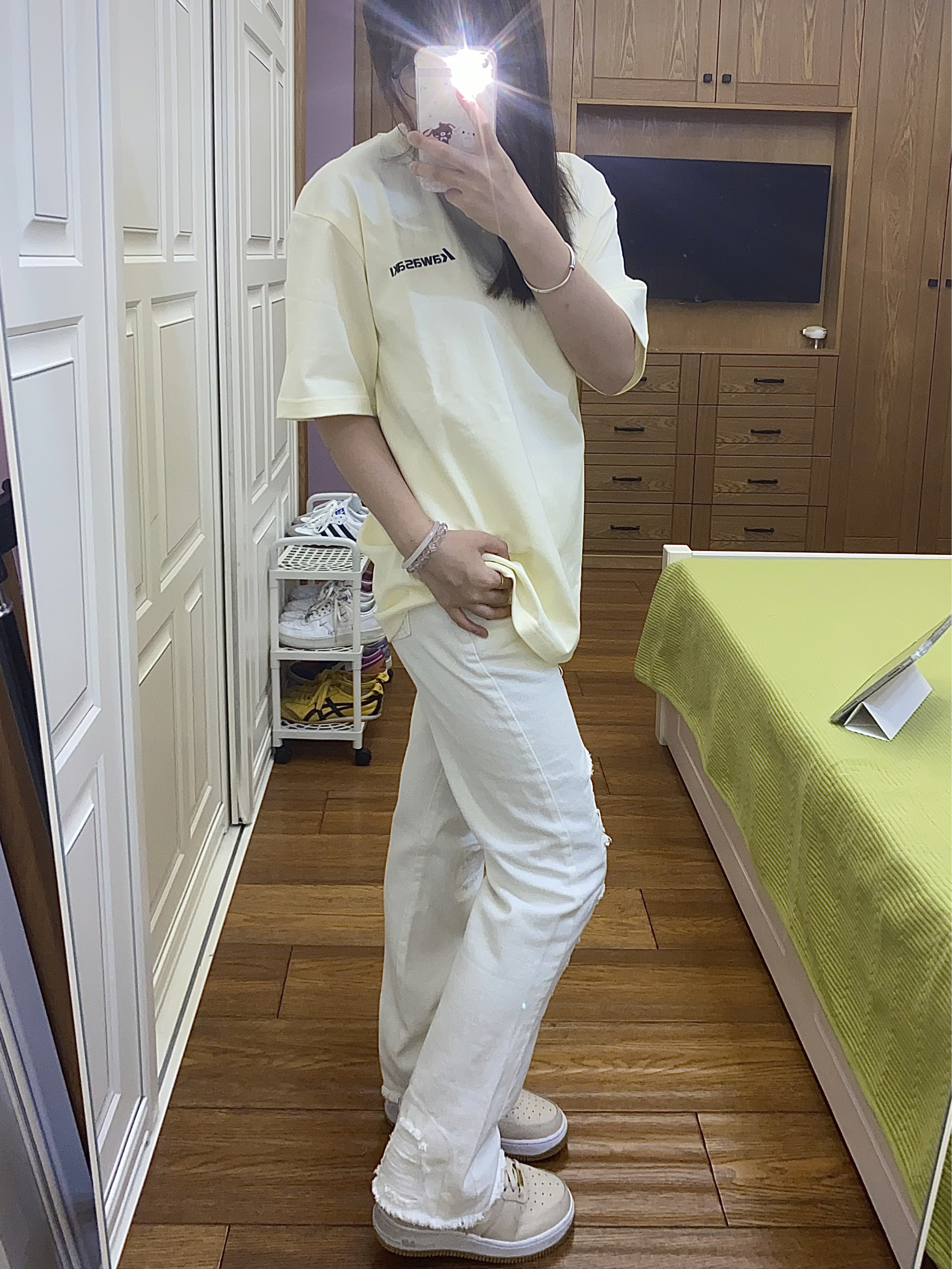 本篇笔记关联了Nike Air Force 1 空军一号 板鞋 轻便舒适百搭耐磨 Shadow/女款/米粉/白色、OCW 破洞微喇叭牛仔裤 2303GK23111 白、【张桂源同款】KAWASAKI/川崎 全棉透气圆领落肩短袖T恤 LCK-HYDX02-LCK176 杏等商品,为用户提供真实的使用体验和购买参考。