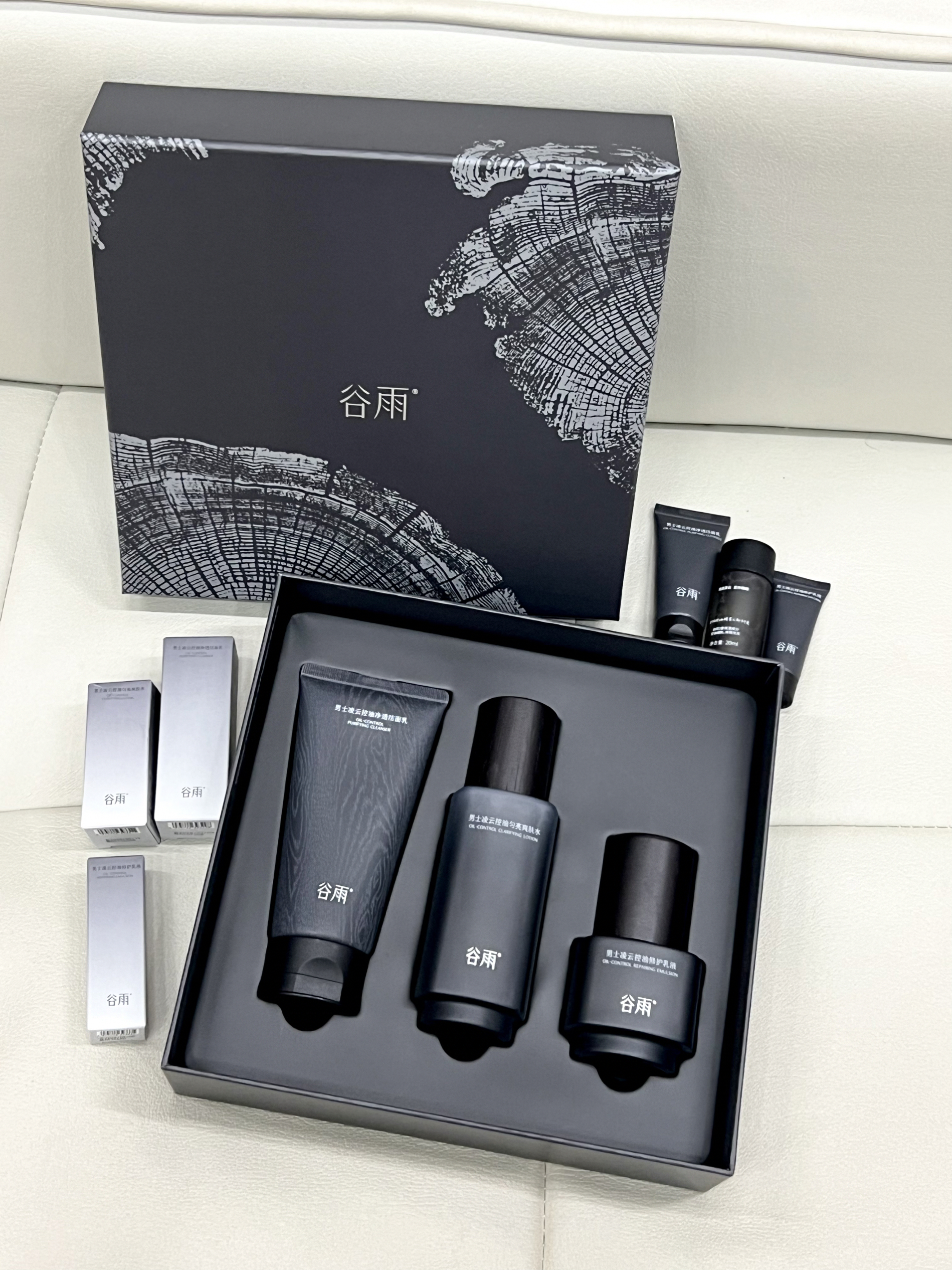 我最近一直用的谷雨家的护肤品 感觉还不错 才发现他们家竟然还有谷雨男士专研水乳套装 黑色礼盒的包装 酷酷的 里面有洁面 水乳 还送啦旅行装 水乳的质地都是比较清爽的 很好推开 一点也不会黏腻 洁面的泡沫很丰富 洗完脸也不会紧绷 一套就可以搞定男孩子基本的护肤需求啦 礼盒的包装 很适合送给男孩子呀~
