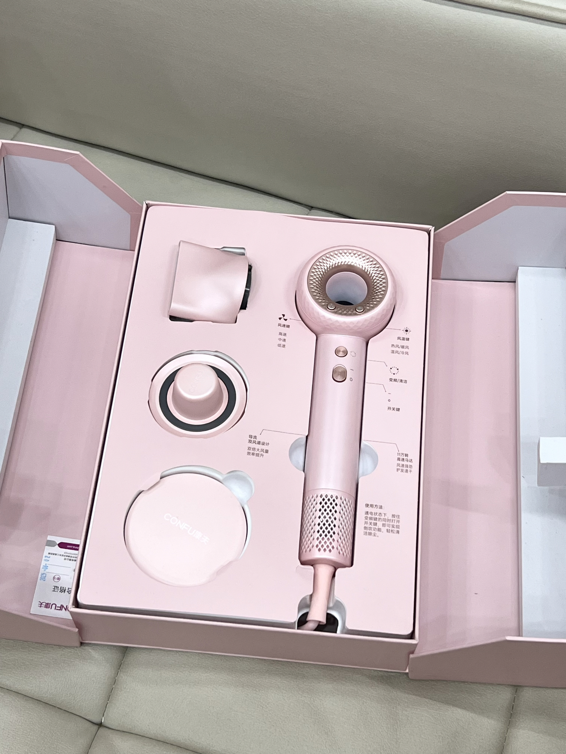 本篇笔记关联了CONFU/康夫 F9 电吹风 高速 速干 大功率 发型师 无叶风道 低噪 中空 航空马达 磁吸 大风力 负离子 等离子 恒温 冷热风 不伤发 降噪 理发店 樱粉+集风嘴等商品,为用户提供真实的使用体验和购买参考。