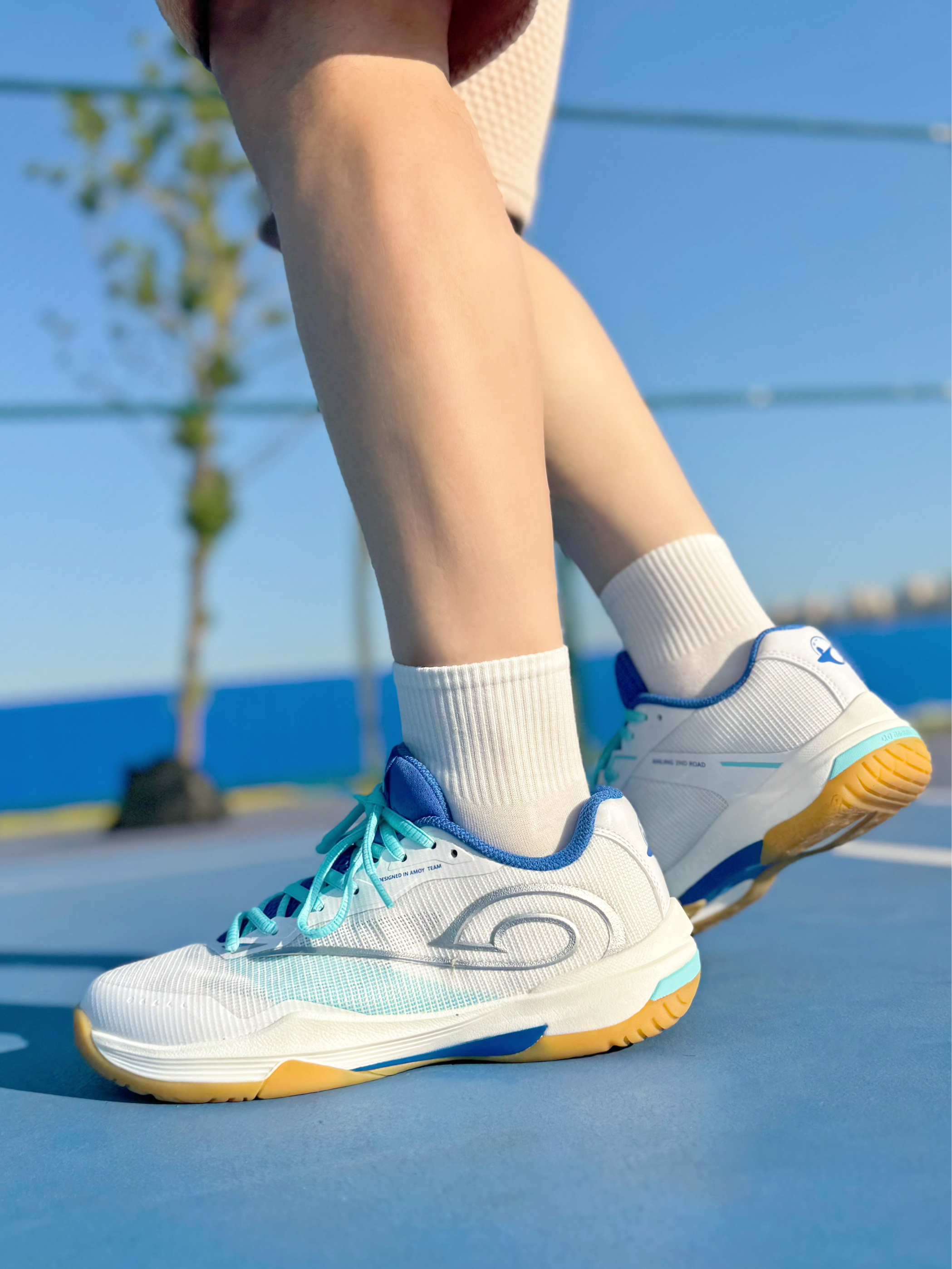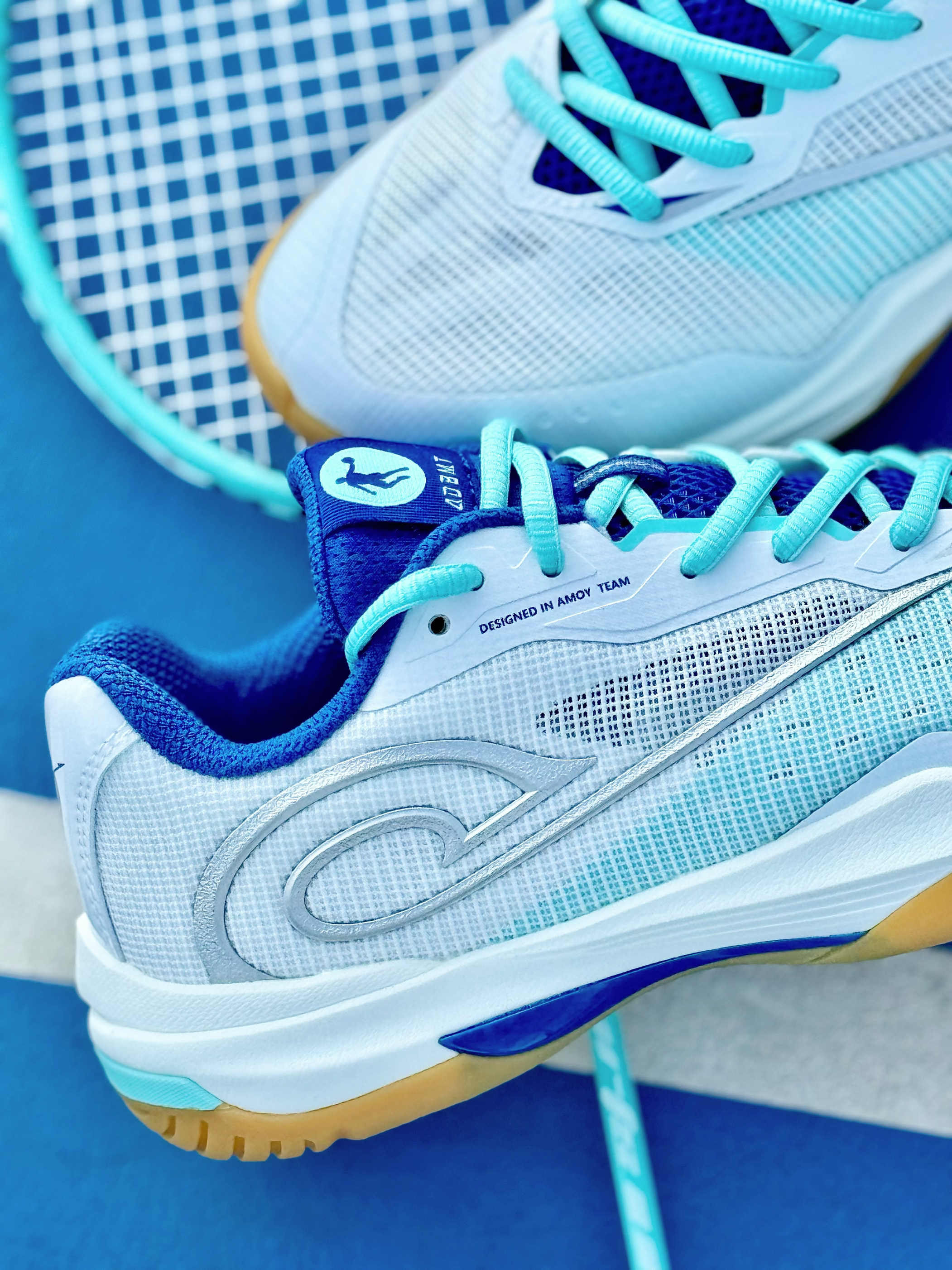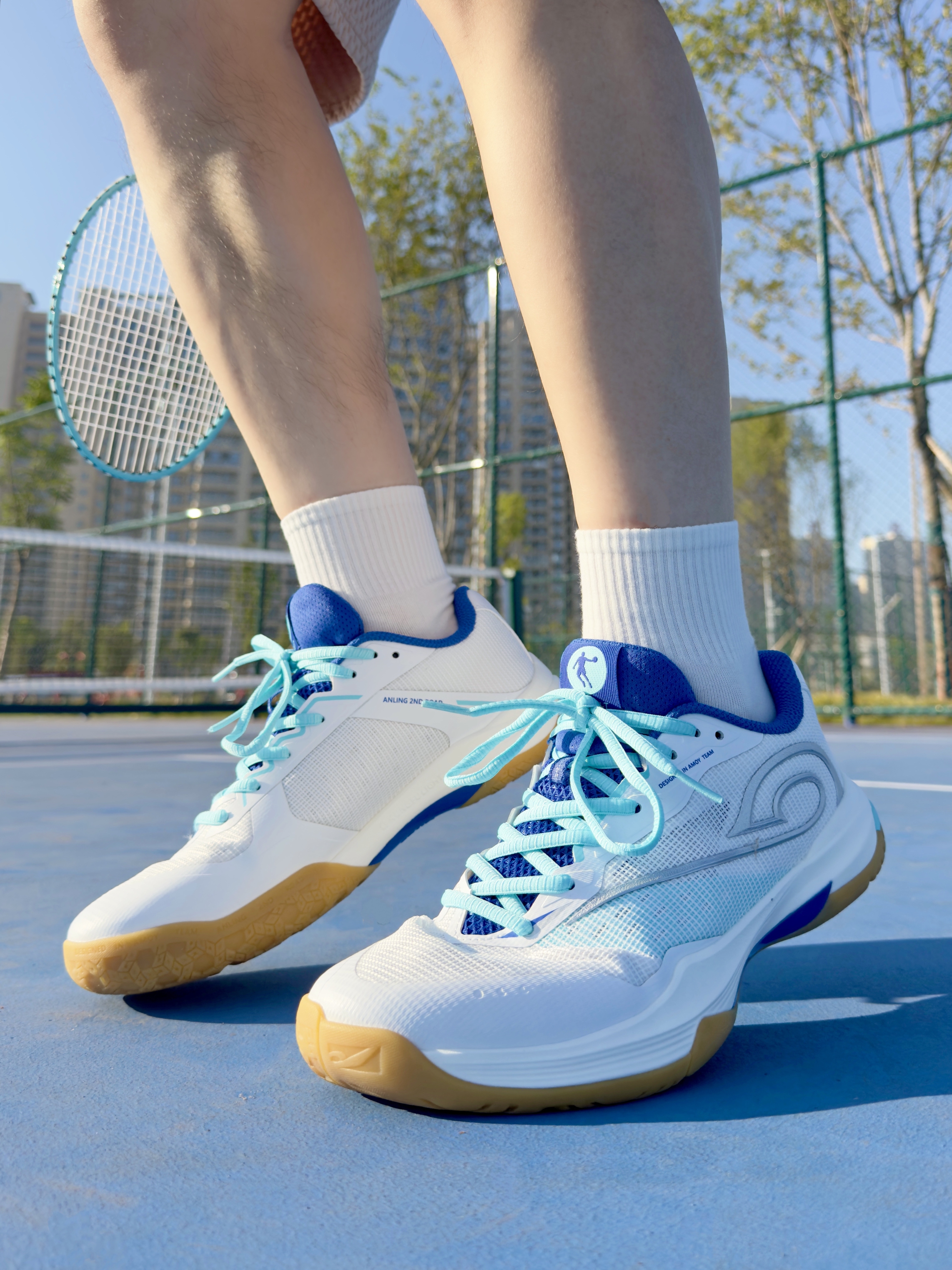 这双中乔的羽速其实蛮全能的 虽然是双羽球鞋,但是配置给的足 日常通勤运动以及打篮球都可以穿的 整体用到清爽的白蓝配色,穿搭好驾驭 中底是巭LIGHT科技,非常轻量化 还内置了抗扭片,稳定支撑性都不错 上脚轻便舒适,包裹性也比较好 鞋楦适中,不会有挤脚闷脚等情况 尺码方面偏小,可以选大一码!