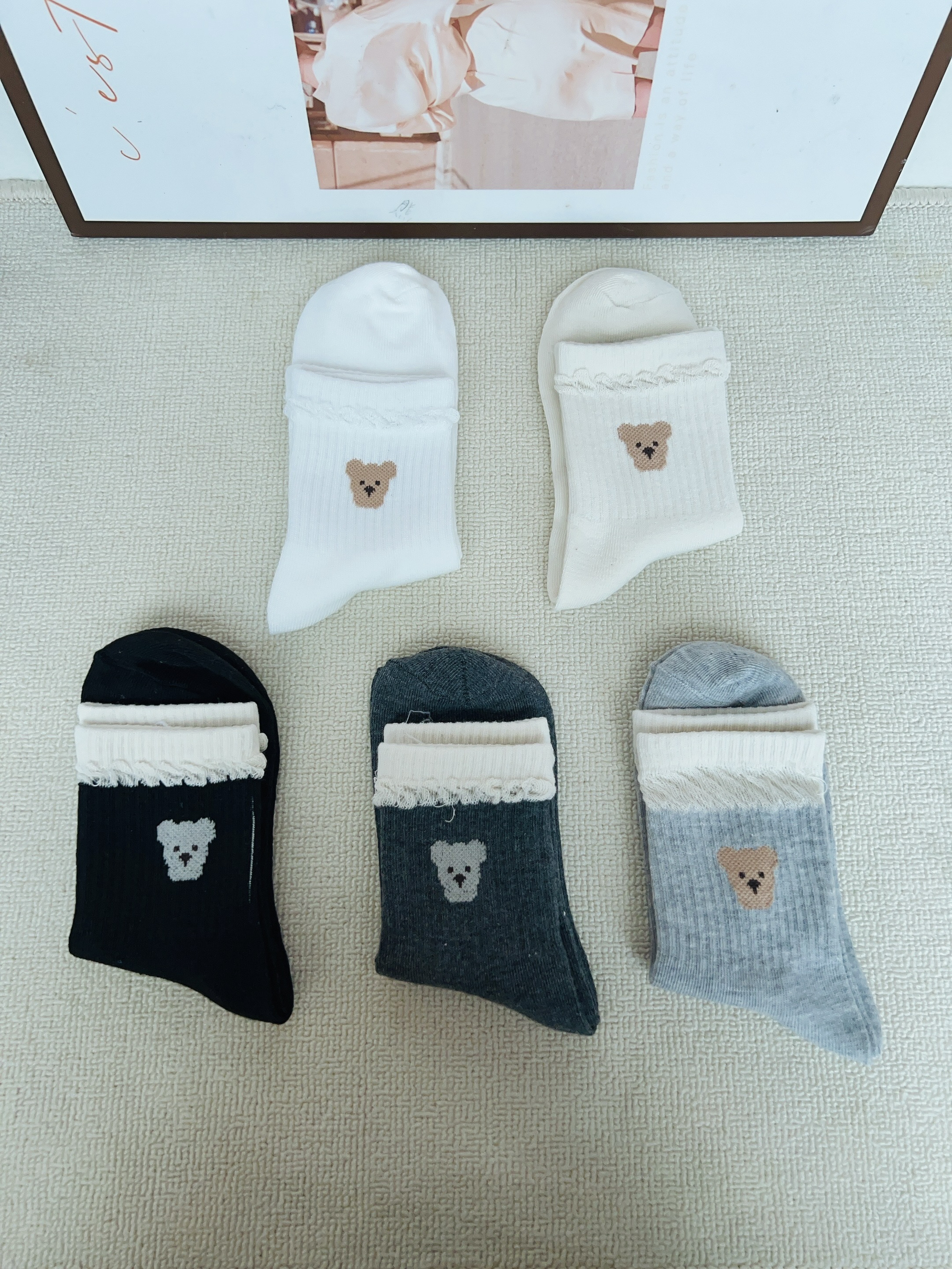 现在是十月份了秋冬季节啦 广东这个时候早晚气温比较低 当然要准备新的袜子穿啦 这款袜子配色简约好好看 我摸着面料舒适 细节做的可以精致 没有多余线头 上脚穿舒适暖和又不勒脚 有五双刚好满足我日常换洗 秋冬天随便搭都可以不挑
