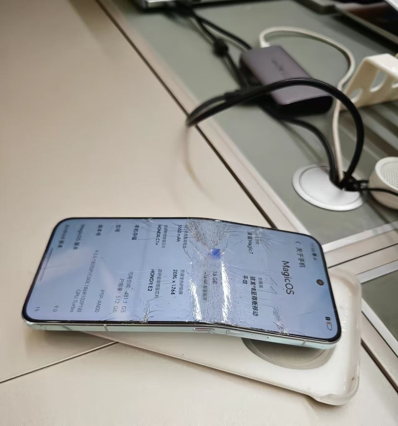 居然荣耀Magic7这么硬?越来越期待荣耀Magic8系列了 刚才刷视频看一个博主,荣耀Magic7被后备箱门夹弯了,没想到还能继续使用,看来荣耀的旗舰机是真的硬!