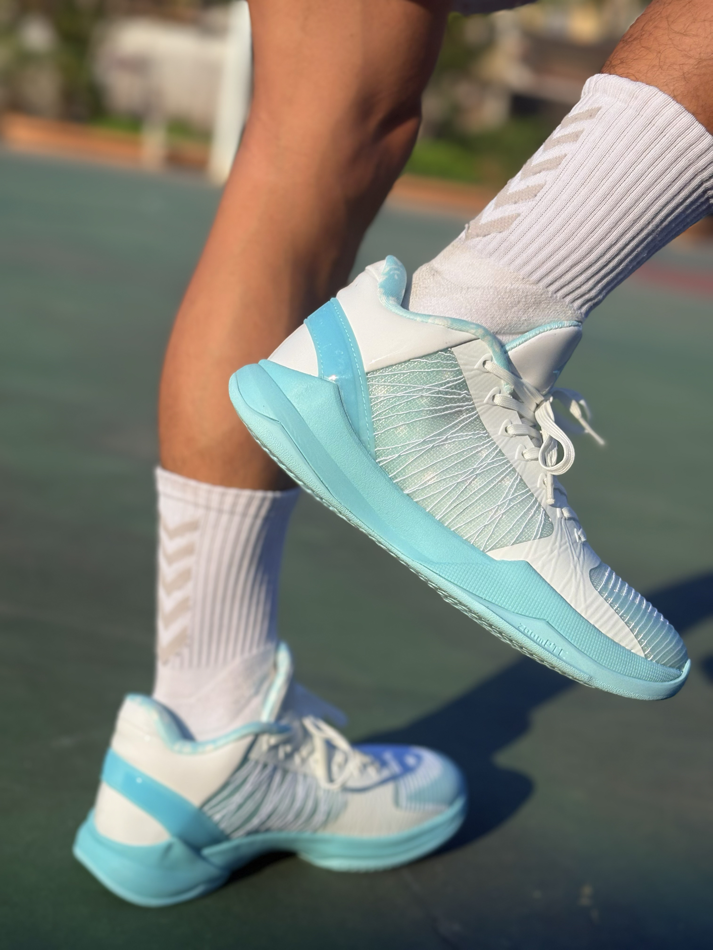 今天上脚的是 #石一童 篮哮五代,这次的外观,有点科5的意思了吧! 这次的配置不是鞋垫的气垫设计,而是内置的zoom气垫加上内置的碳板,我现在整体穿起来确确实实有种实战篮球鞋的感觉了,性价比我觉得还是蛮不错的! #篮球人装备裤 #球鞋新品曝光 #篮哮五代 #石一童篮哮五代 #实战潮鞋