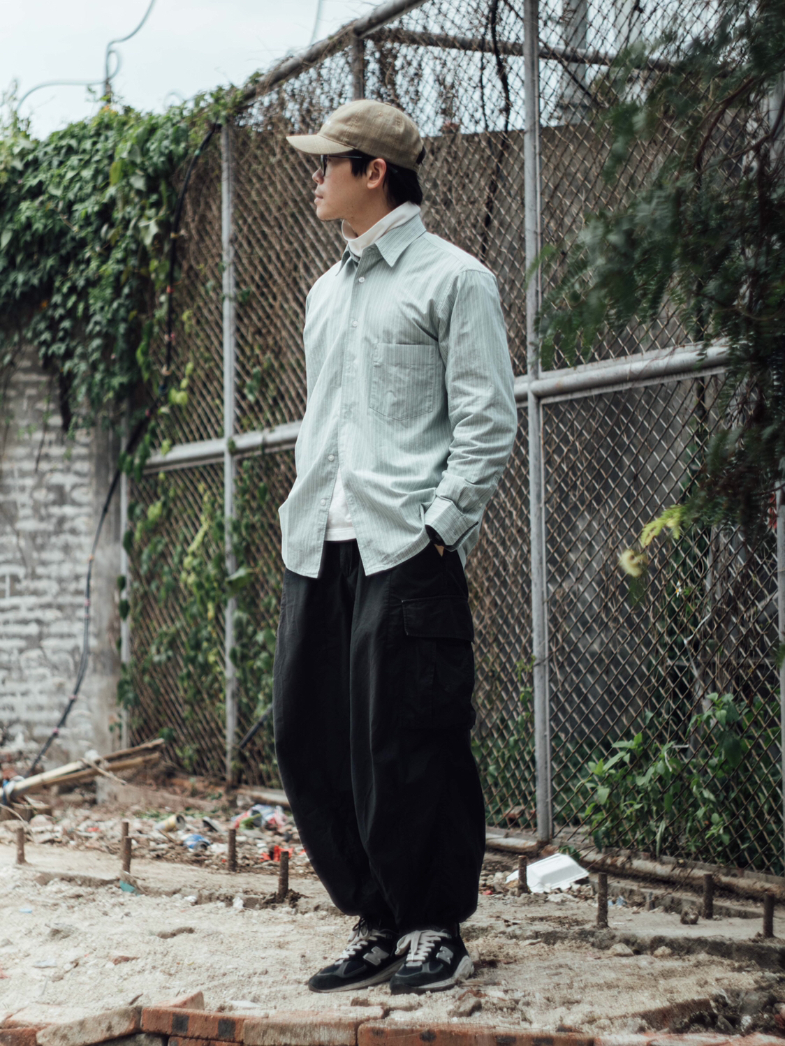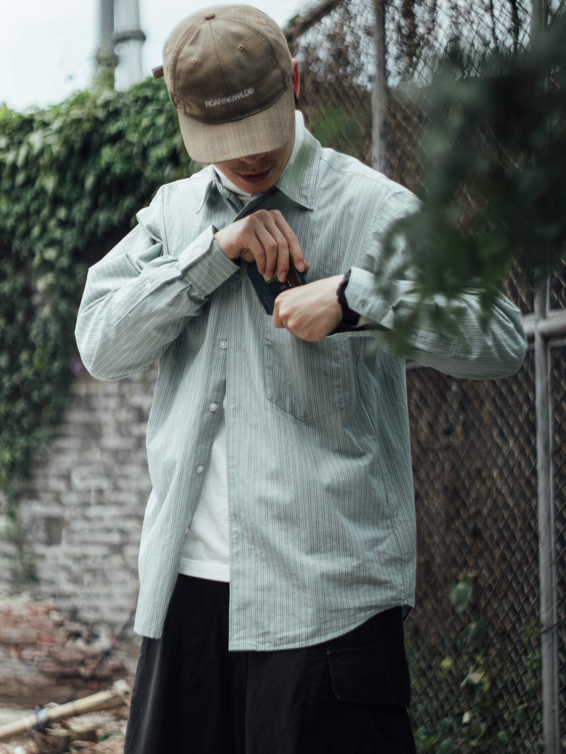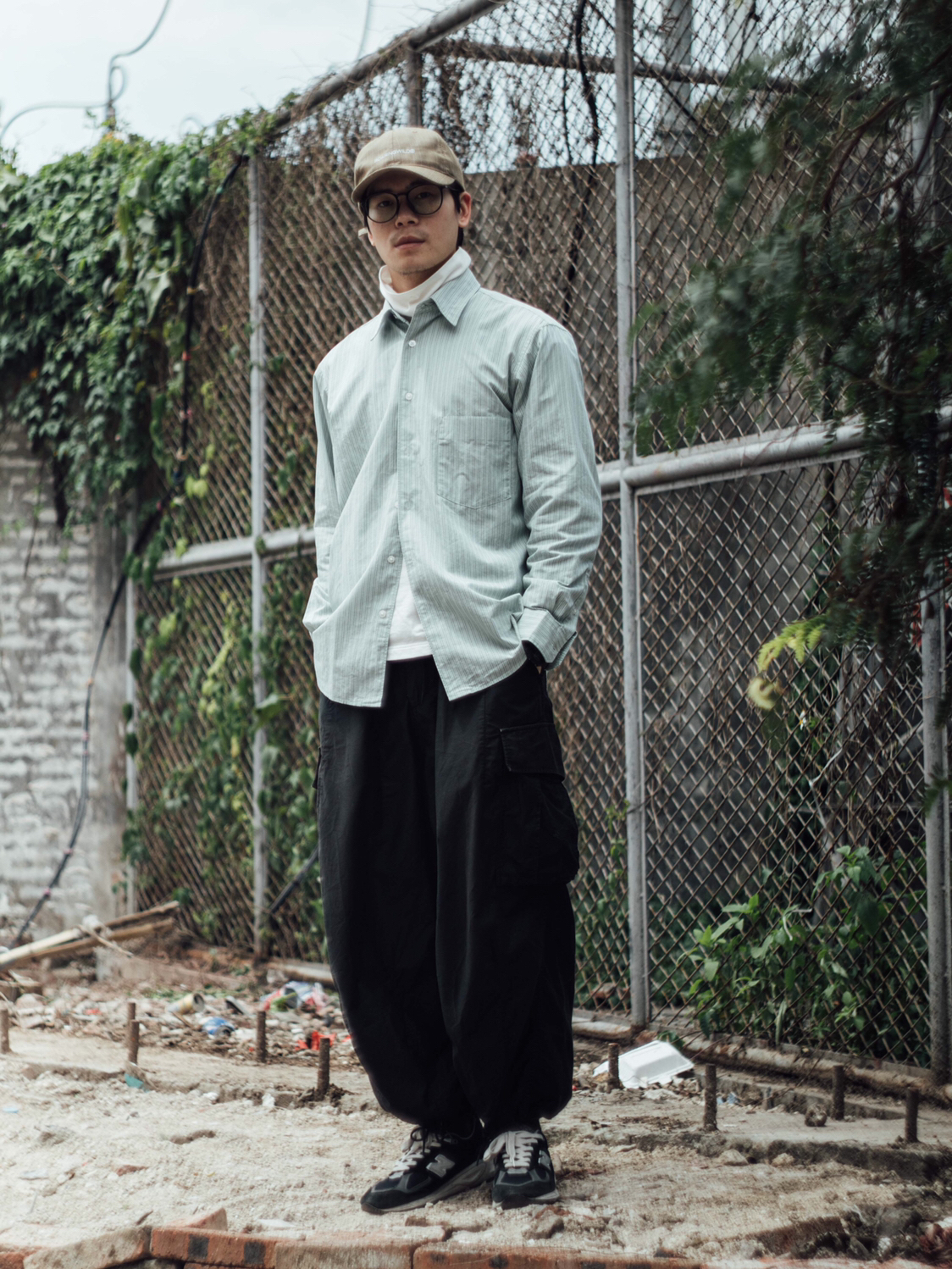 2020优衣库新一季U系列绿色条纹衬衫真的太好看了,颜色超级夏天,上身非常小清新~ - 图中上身单品🔗: 条纹衬衫:优衣库U系列(货号427319) 高领衫:优衣库U系列(19AW) 阔腿长裤:Needles 帽子:Roaringwild 鞋子:New Balance 990v2