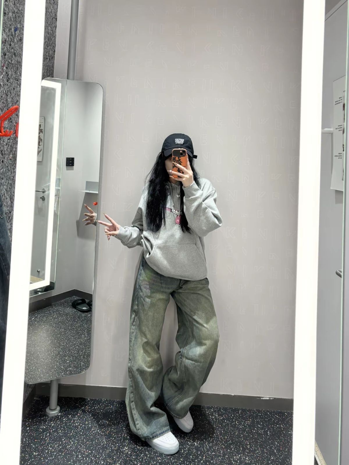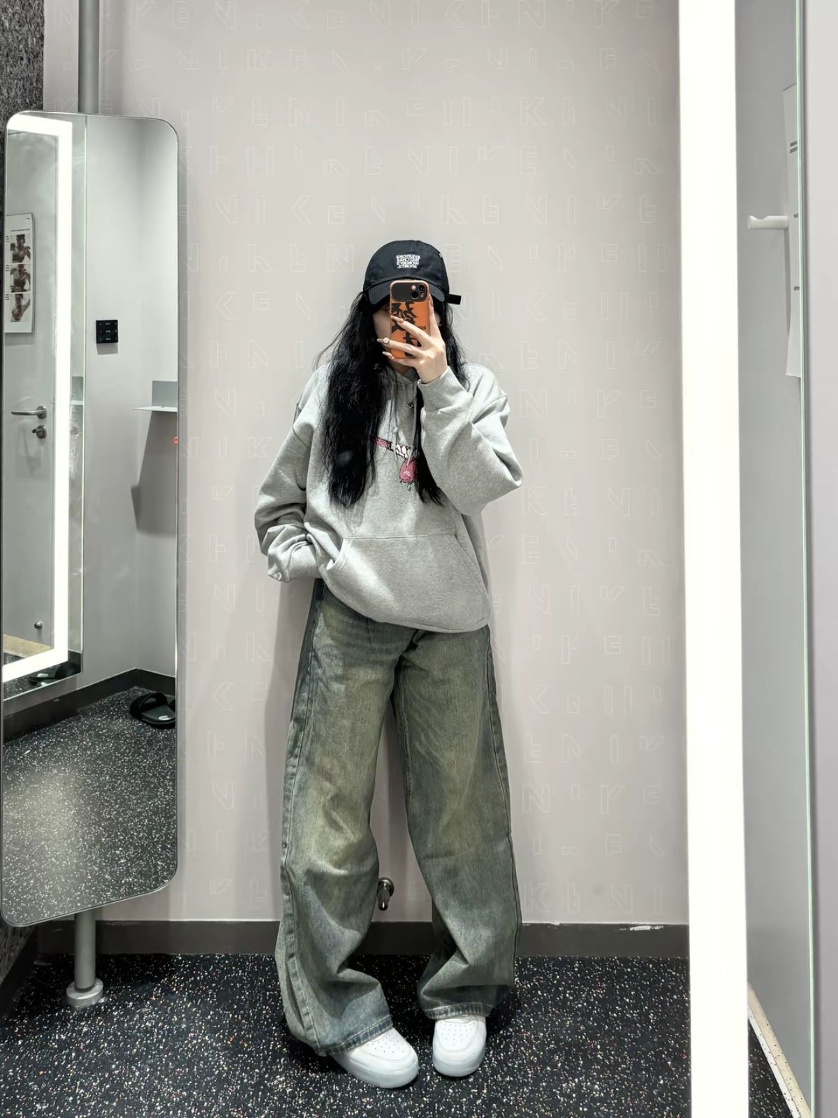 灰色系少年感空军一号,我的心头爱💌 鞋底水晶底所以整体看着是很有质感的 今日拿捏这条美式牛仔裤👖 色系搭配起来是蛮好看的 谁穿谁帅系列好吗[爱心_blue][爱心_blue][爱心_blue] 上衣搭配的是灰色卫衣刚好跟我的鞋子👟颜色呼应 拍照🤳这套包出片的