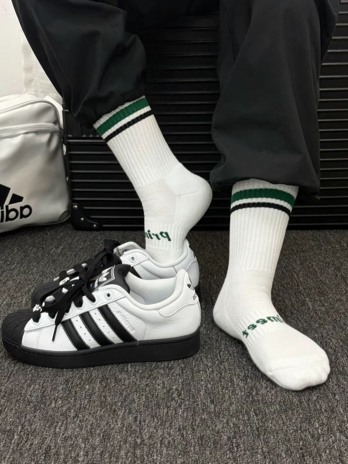 今日上脚 #Primeet派米 袜子🧦 袜子上脚舒服,随便搭配都好酷 袜筒弹力不错,不会勒小腿肉 运动的时候也可以穿 我搭配阿迪板鞋好🈶感觉