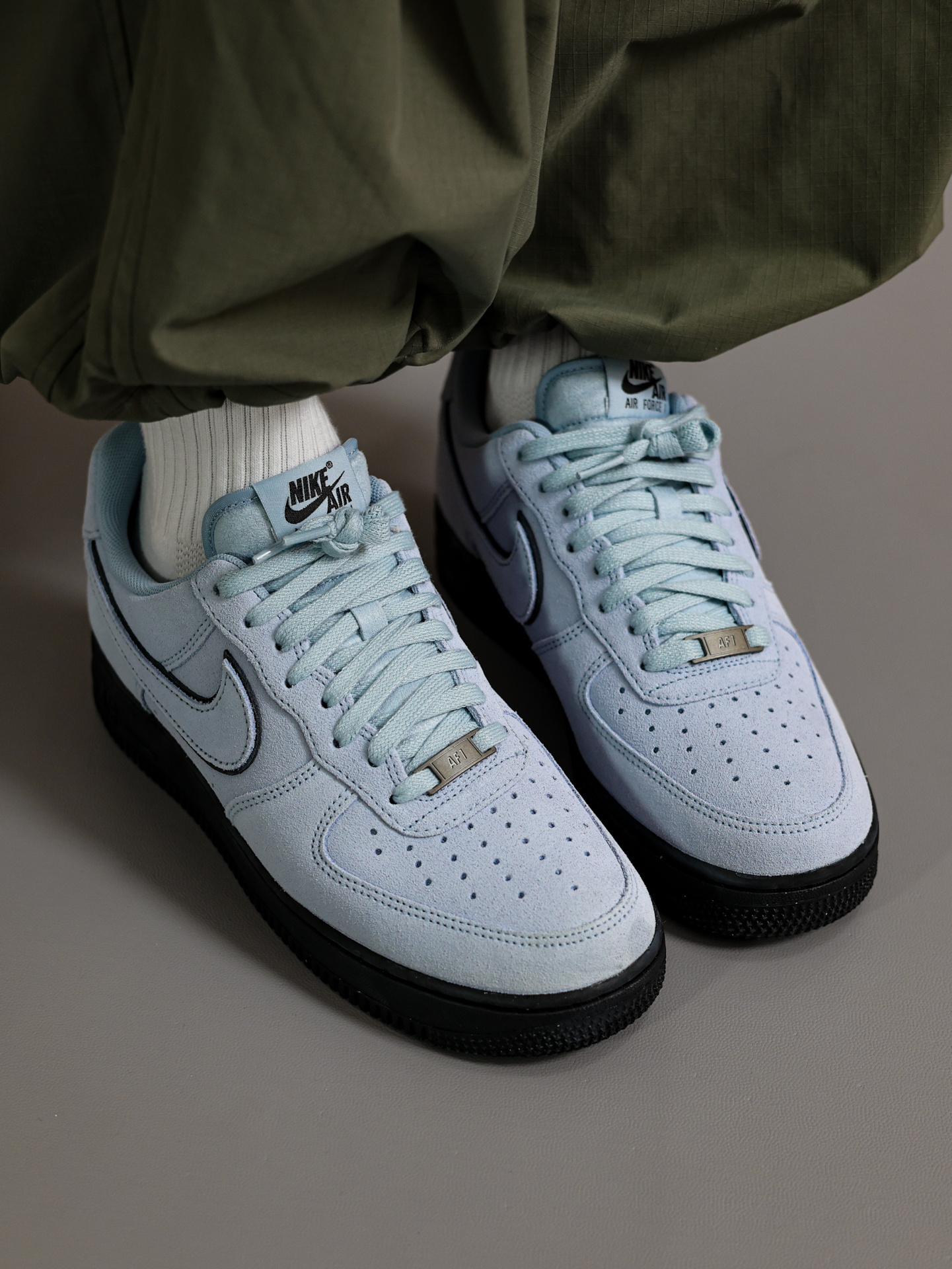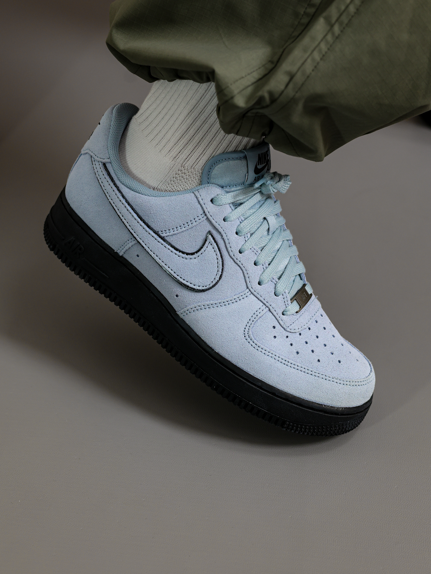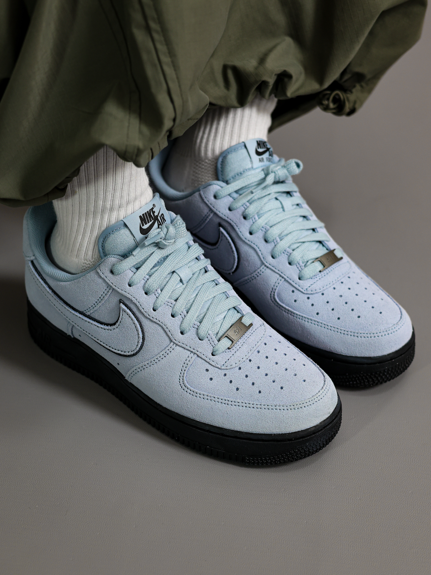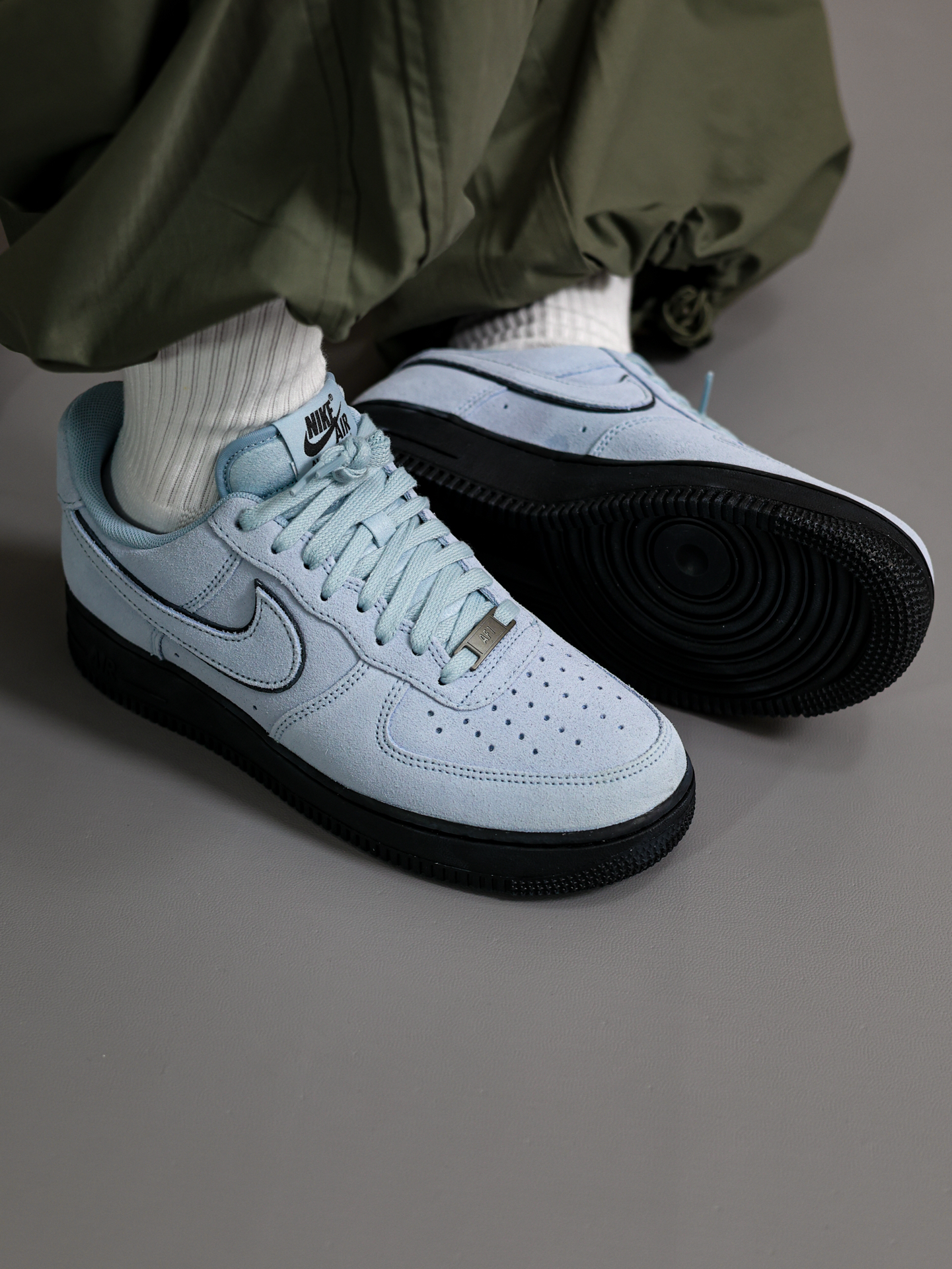 在假期里当然上脚👟最帅的鞋! 这双黑篮AF1空军一号配色好绝呀‼️ 上下两层层次分明,翻毛皮鞋面摸着有质感 ❌上脚舒适,只不过鞋底偏重偏硬 ✅再搭配一条灰绿色束脚裤,刚刚好! 尺码参考:170/120 穿着41 码正好的👌 @App #一人一张球鞋美照 #新鞋零时差 #我的人生球鞋 #拿捏复古松弛感 #空军一号NIKE