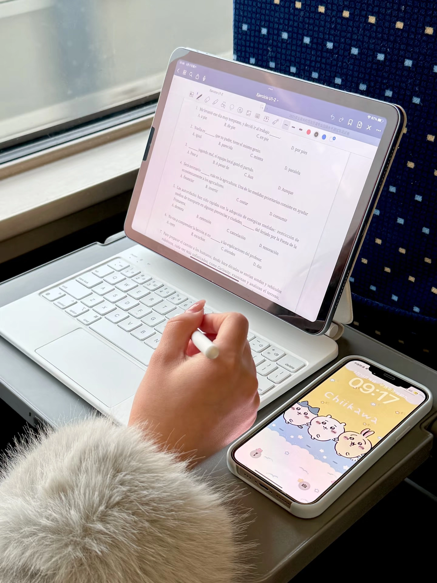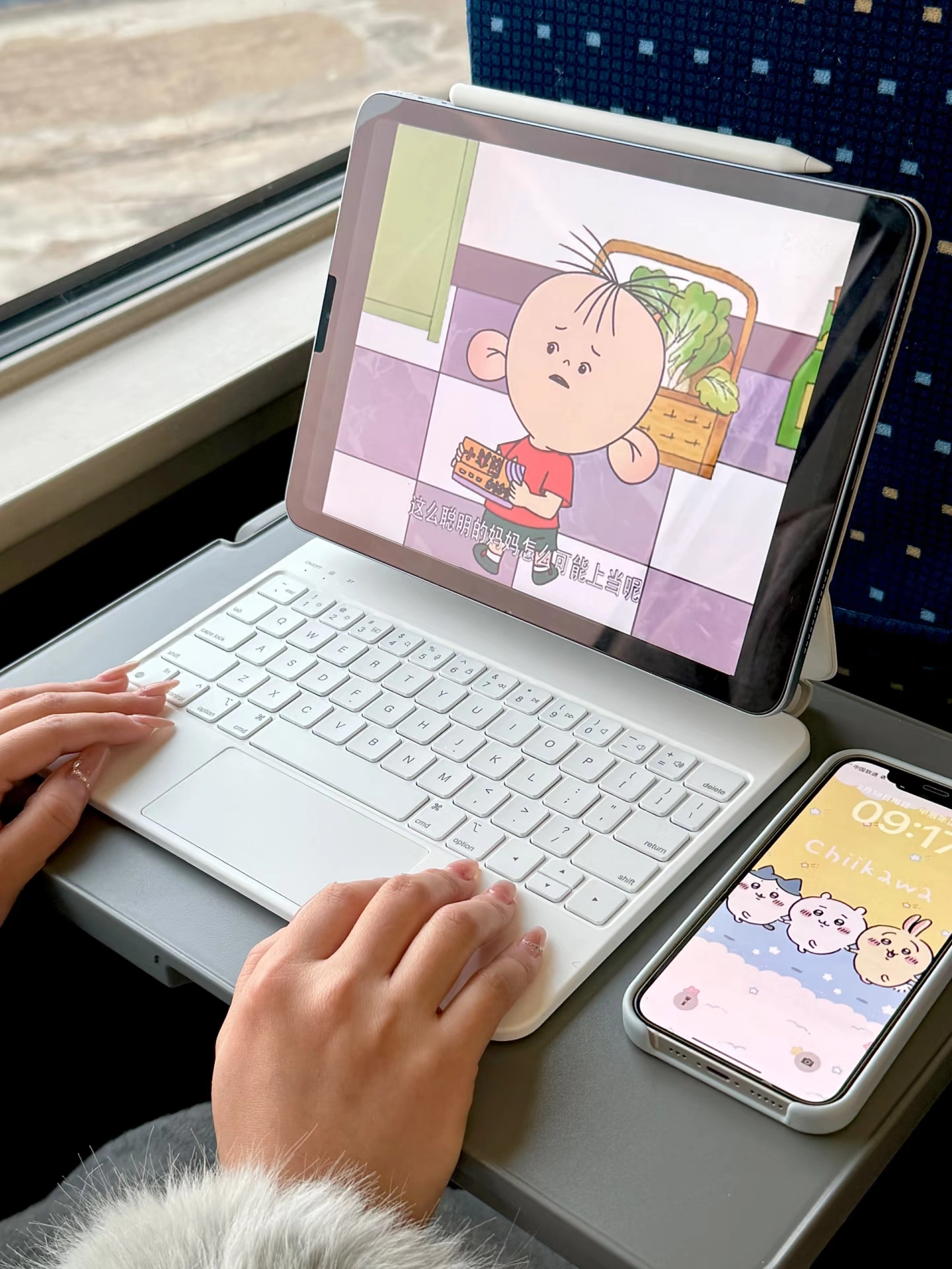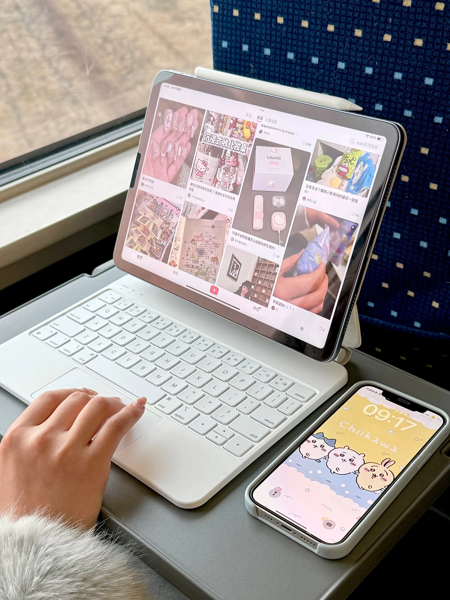 坐高铁时我用它办公,邻座小姐姐还以为是mac呢~ 搭配妙控键盘,它就像台小电脑! 蓝牙连接很方便,键盘打字没延迟 触控板也丝滑,打字声音还小,不会打扰别人~ 电池也耐用,路上看剧办公都能hold住~