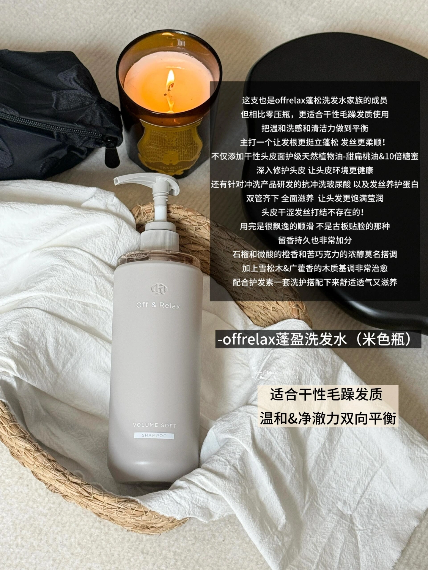 本篇笔记关联了【秦岚同款】OffRelax 柔顺蓬盈洗发水 补水保湿滋养氨基酸零压瓶 蓬盈洗发水2.0、【蒋欣同款】OffRelax 零压瓶净澈洗发水 长效蓬松控油清爽柔顺 蓬松洗发水2.0、【适用染烫受发质】OffRelax 夜间修护洗发水 滋养保湿柔顺亮泽改善毛躁干枯 修护洗发水等商品,为用户提供真实的使用体验和购买参考。