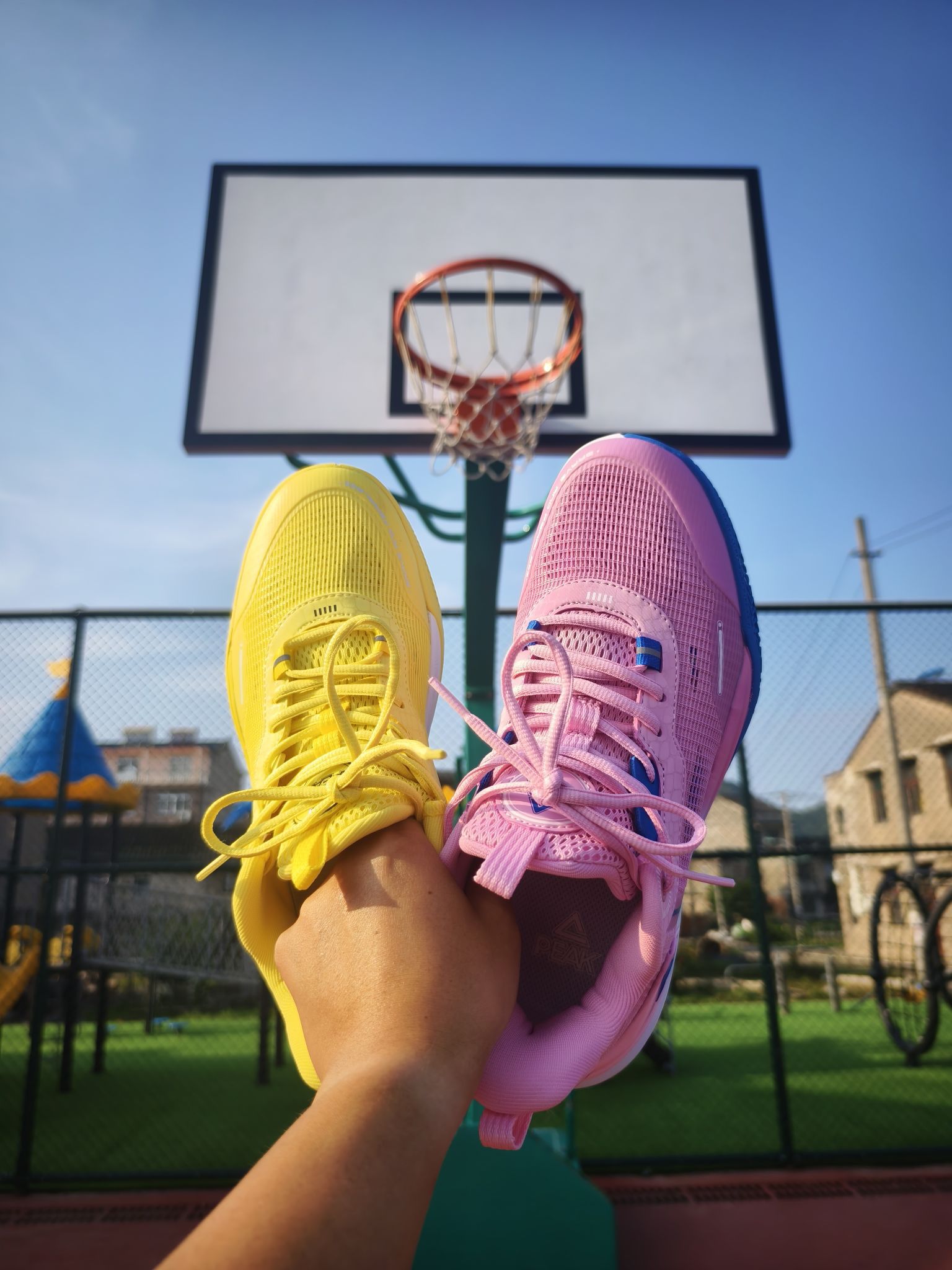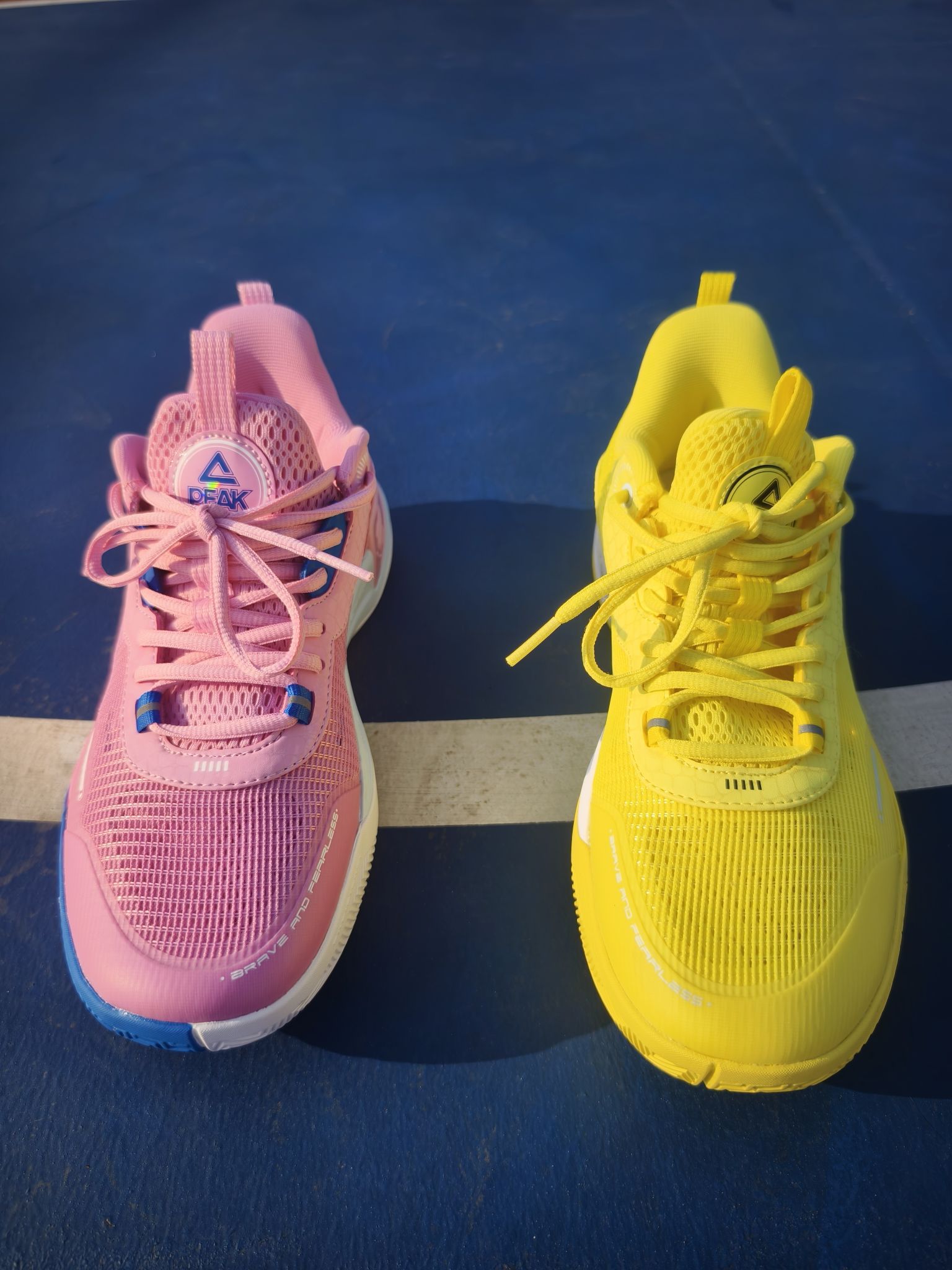 🌞夏天最适合打球流汗🏀💦 在篮球场上少不了一双又帅又能打的篮球鞋 🎨首先承认我是颜值控,第一眼就被这黄粉鸳鸯配色所吸引!💛黄的好看💖粉的骚气,谁在年轻时候不想拥有一双鸳鸯配色的球鞋,成为球场的焦点!那时候还得跟朋友一起买一双同尺码不同配色的,凑成鸳鸯!黄粉的搭配真的绝美! ⛹️夏天打球最怕热,出汗闷脚,这双匹克游侠鞋面采用大量透气网状,不用担心出汗的问题!可以尽情跑动! 👣球鞋尺码我个人建议...
