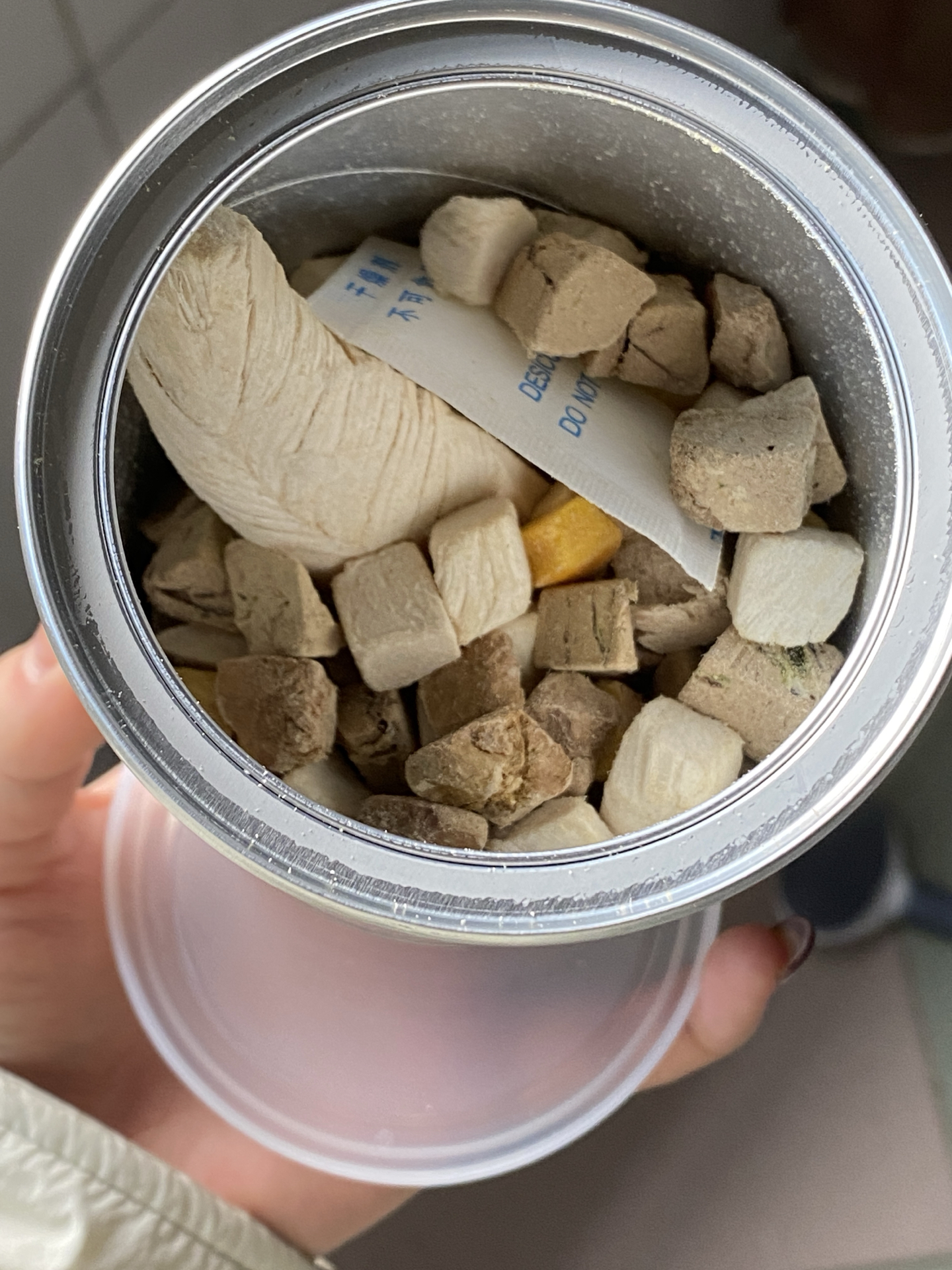 我家猫猫之前对我总是爱答不理的,直到我买了这个冻干桶!现在它看到我拿这个桶,热脸立马贴上来啦~吃了段时间没啥问题,偶尔给它加餐超合适!复水后香味也很诱人~不过要是分量能再多点就更完美啦!图源网络侵删