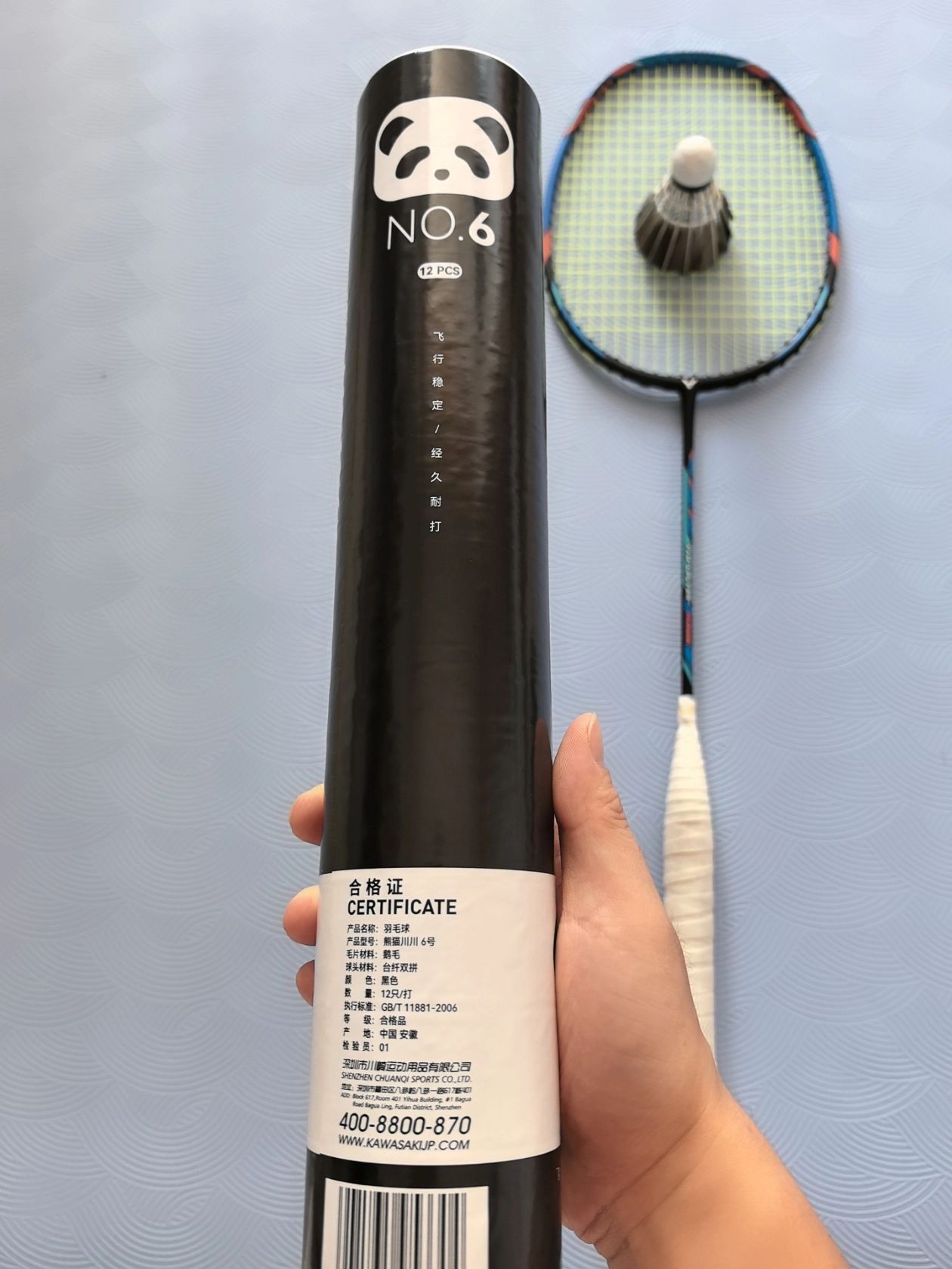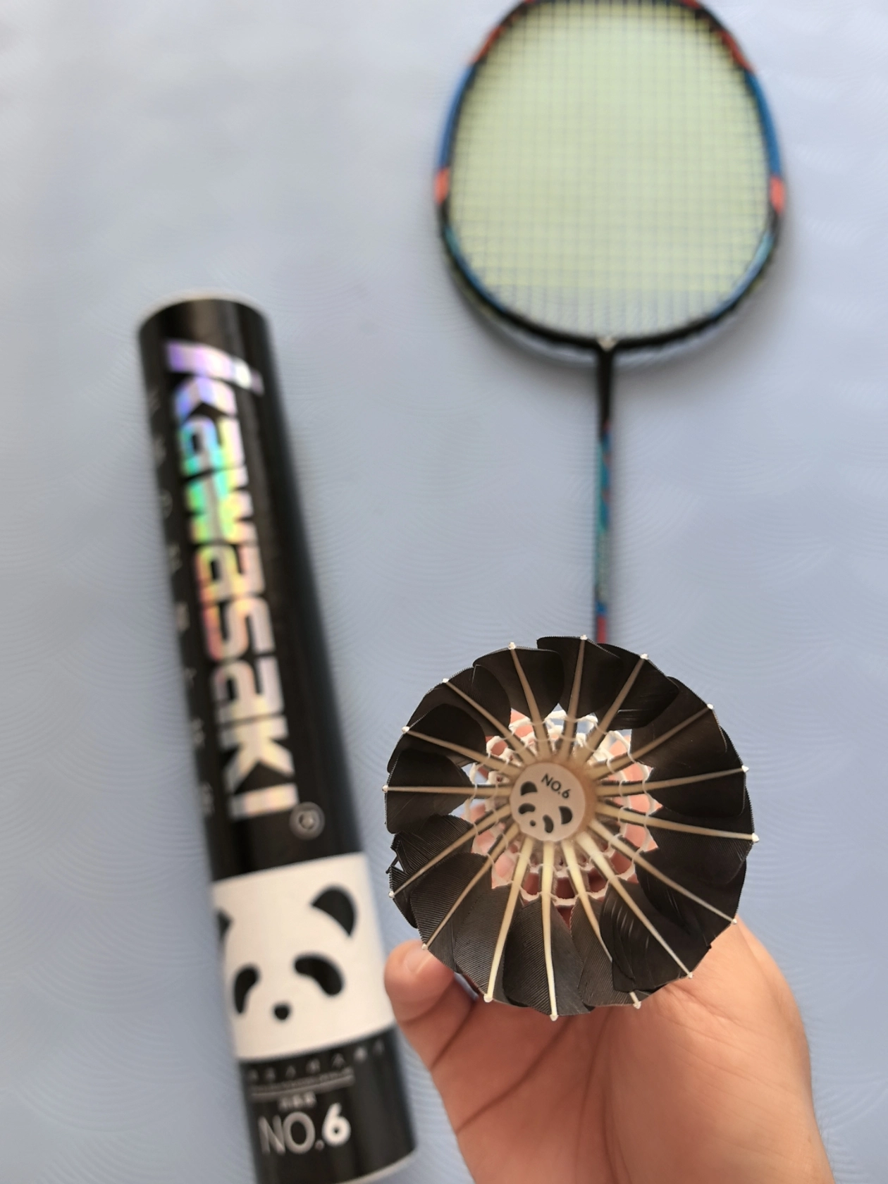 最近入手了这款熊猫川川羽毛球🏸 它用的是精选鹅毛,毛片厚实,耐打度还挺高~ 有些朋友对黑毛有偏见,但我打下来感觉打感和其他毛没区别~ 不过它飞行会有一丢丢偏,蒸一下能改善很多🤔 现在这个价格我觉得很适合入手,像我这种业余爱打球的,平时拿来当口粮球再合适不过啦~