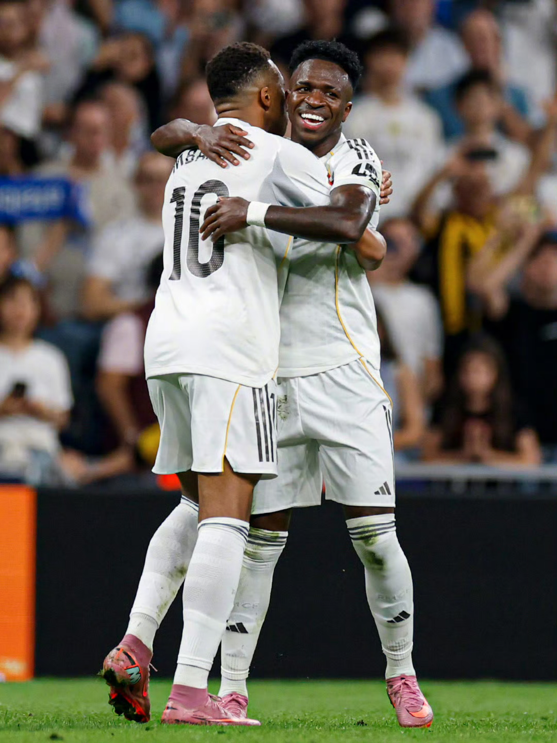 皇马7号维尼修斯太炸了!赛场上的犀利突破、进球后的跪地滑跪,把伯纳乌的气氛直接拉到顶点。和队友的激情拥抱、对球迷的深情鼓掌,每一个瞬间都透着“皇马新王”的霸气。 从巴西天才到银河战舰核心,他用每一次内切和每一脚爆射,在马德里的星空下,续写着属于7号的进攻传奇。#皇家马德里 #维尼修斯 #足球传奇 #伯纳乌之王