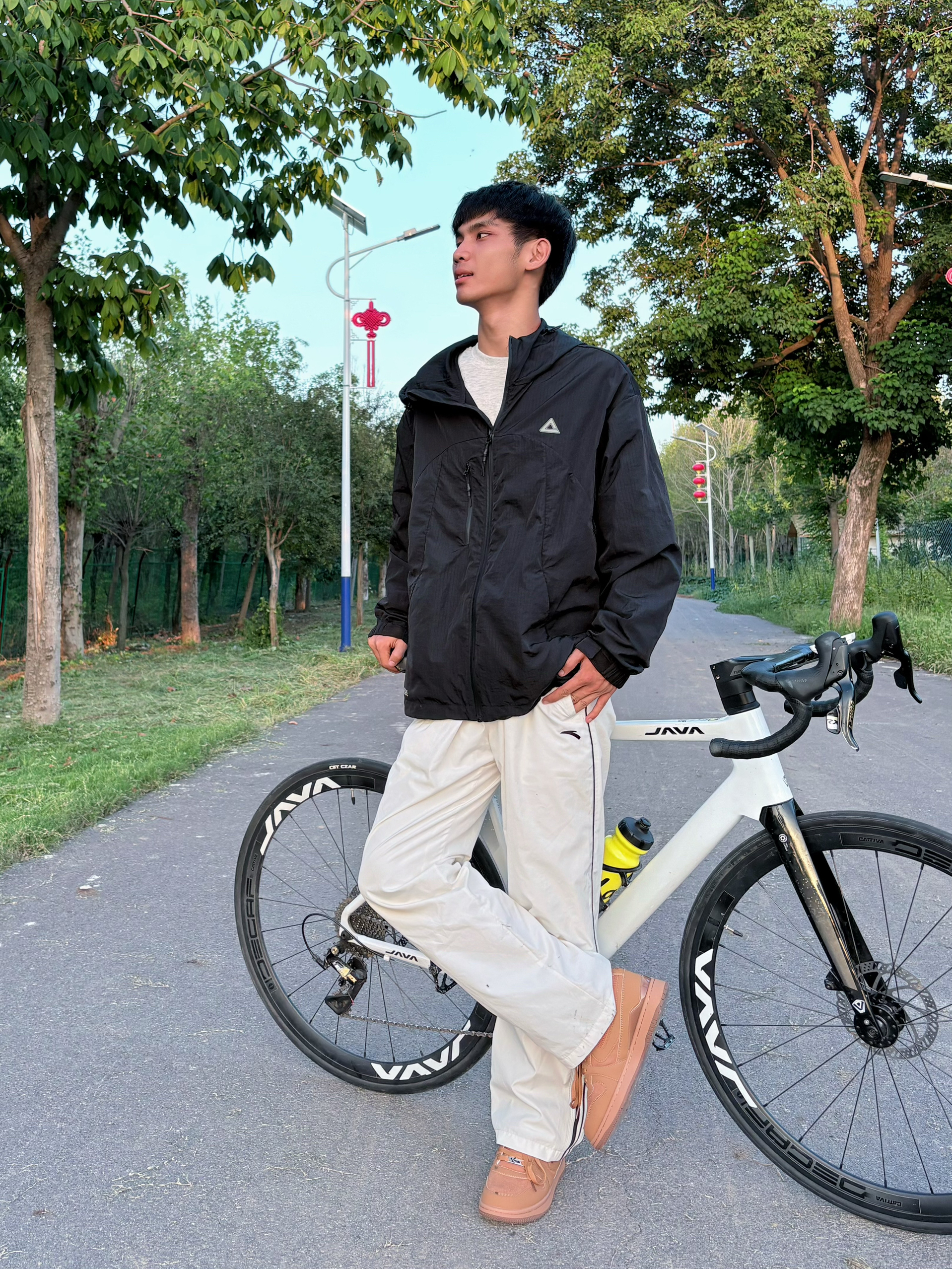 今天骑公路车🚴通勤后出来玩了 搭了套自在又不拖沓的𝐥𝐨𝐨𝐤👀,分享下! 上衣就是白T,简简单单 外面是黑色的轻薄风衣,防水💦还挡风🌬️ 配条白色休闲直筒裤,黑白☯️色对比很清爽 重点说下鞋子!是 Kappa 的复古板鞋 我选了摩卡棕色,秋天🍁的美拉德色系 颜色很好搭配低帮板鞋也好搭 而且脚感踩着巨舒适,关键是还能稍微增高✨ 搭今天这一身很舒服!