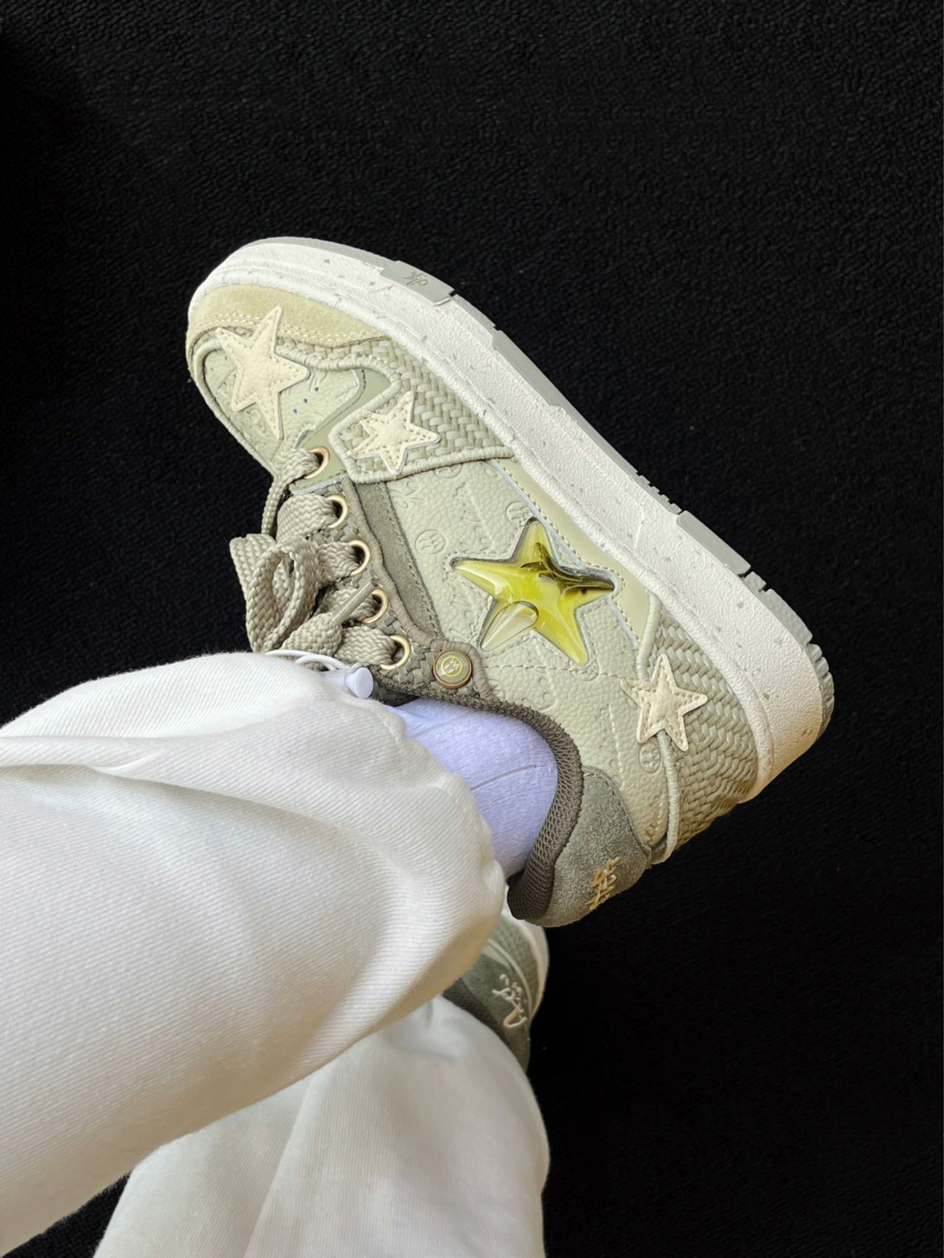 里夫斯篮球鞋市场反馈一直很不错,这次准者也是为小里出了一双日常通勤的联名板鞋,后跟,侧面等融入的小李的元素 这个小白鞋颜值就是帅啊,非常百搭,还是皮革面,质感是真棒啊,还好打理,擦擦就干净 中底是高弹EVA填腹,脚感还是不错的,通勤穿很舒服,鞋楦也很宽松,日常穿很合适 尺码方面我觉得正码正拍即可