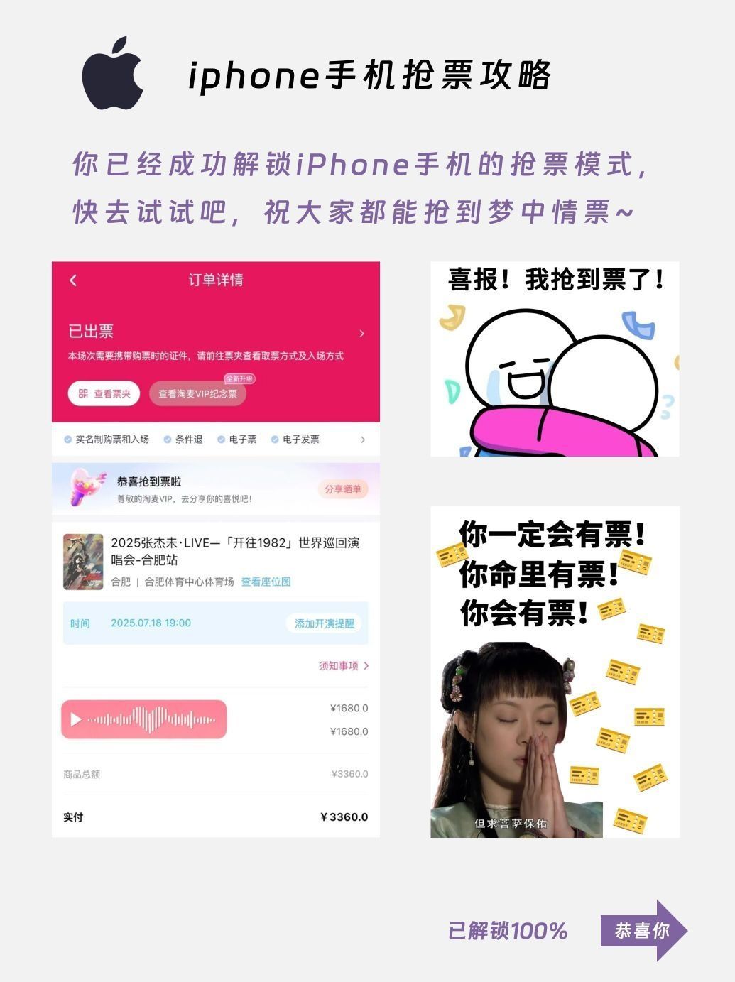 一试就成功!iPhone抢票模式真的好牛 姐妹们,苹果手机这样设置,抢票都快人一 步! 我最近就靠这样操作,在大麦上抢到了张杰演唱 会的内场票,实在是太开心啦!! 今天就把我的保姆级抢票攻略分享给大家。快来 看看你一直没抢到爱豆的演唱会门票,是不是因 为没开这个开关 祝所有的追星人都能抢到梦中情票,记得🐴住攻 略哦