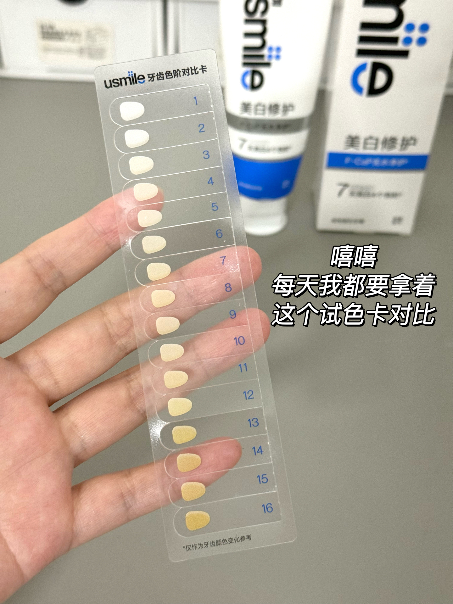 怎么早点没发现介个啊! 收到试色卡迫不及待的对比啦 它这个七天能白四个色阶诶 好期待我七天之后的变化啦 白色的膏体 而且还能拉丝诶 也不会辣嘴 有点淡淡的清香 刷完口腔hin清爽 大家不要放过介个美白牙膏#牙膏美白 #Usmlie #usmlie美白牙膏 #牙膏美白去黄口臭推荐 #美白牙膏推荐 #美白护齿牙膏 #宝藏美白好物分享 #美白牙齿必备