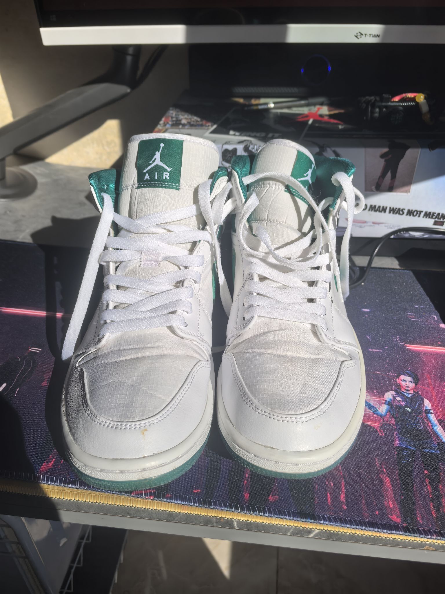 本篇笔记关联了Air Jordan 1 板鞋 运动休闲鞋 复古潮流支撑合成革 中帮/白色/绿色等商品,为用户提供真实的使用体验和购买参考。