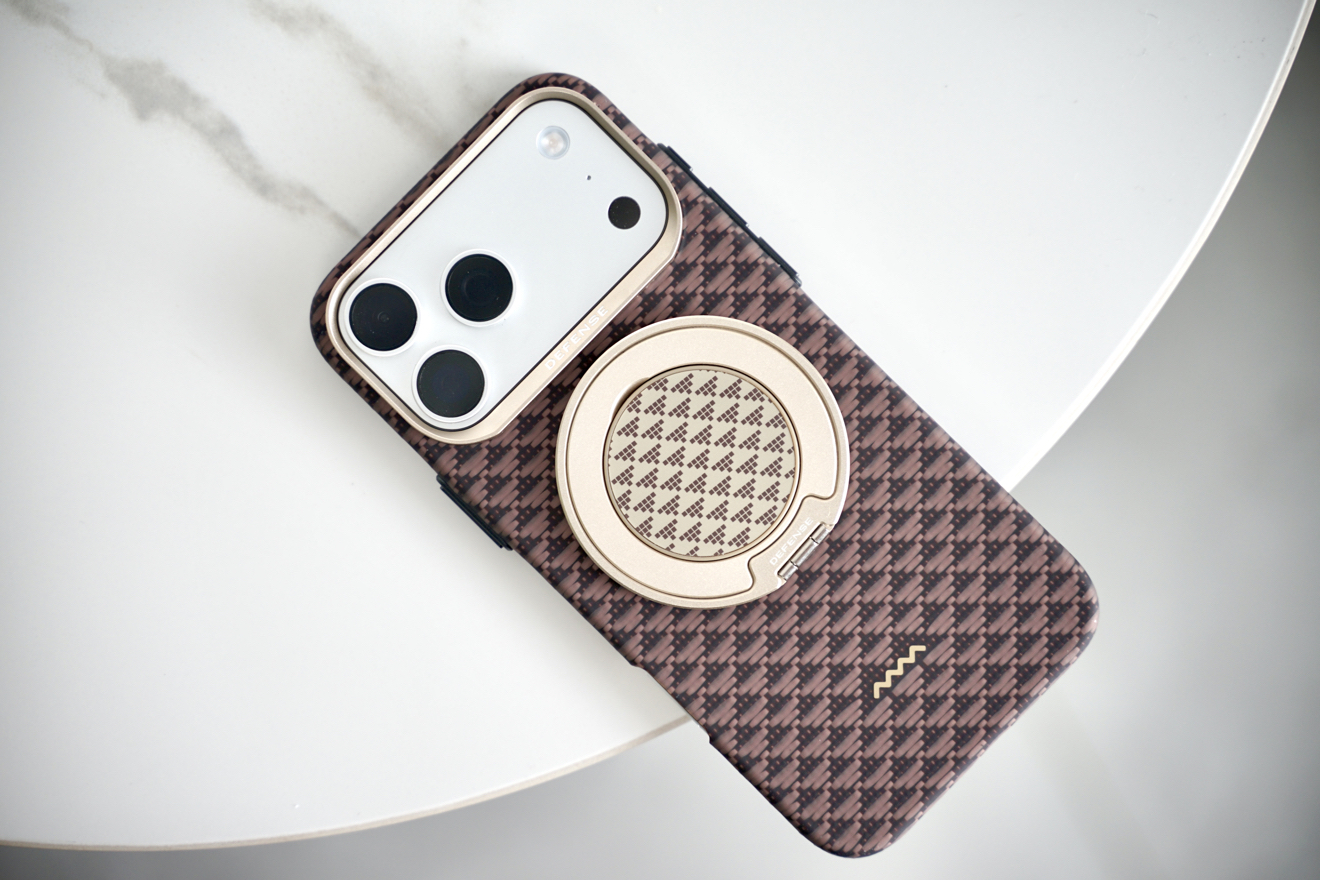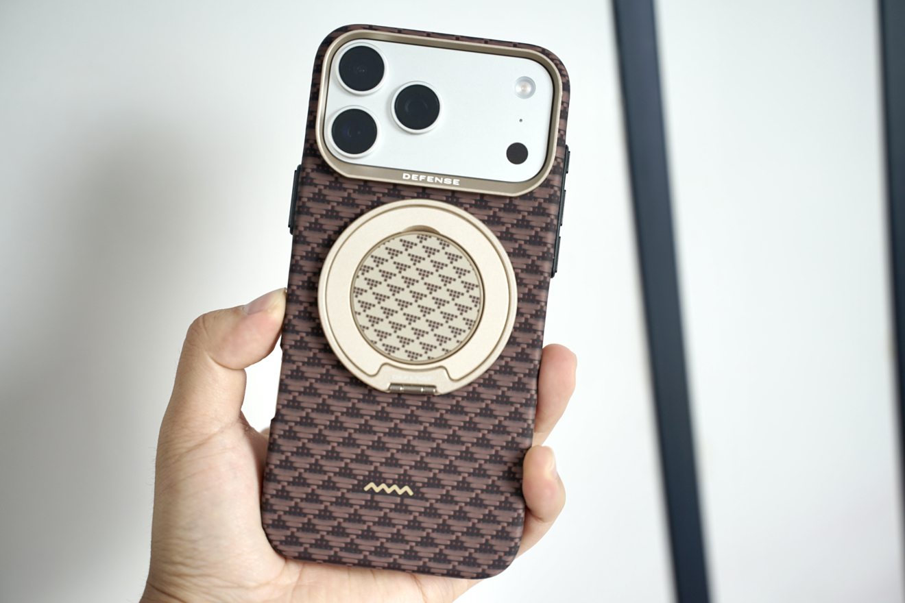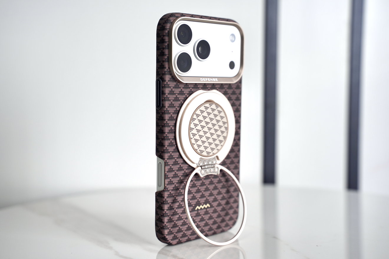 今年给 iPhone17Pro Max 依旧搭配上了决色的“和光同尘”芳纶纤维手机壳,搭配银色 iPhone17Pro Max 还是那么漂亮,仿佛将晨光中闪烁着点点金光具象化。缂织工艺在保持超薄手机壳的基础上还能有更丰富的手感。 MagSafe 这次依旧没落下,搭配仅0.36cm 的磁吸支架,能随时随地将手机立在桌上,也能让手机更稳固的卡在手上,不仅好看更实用!