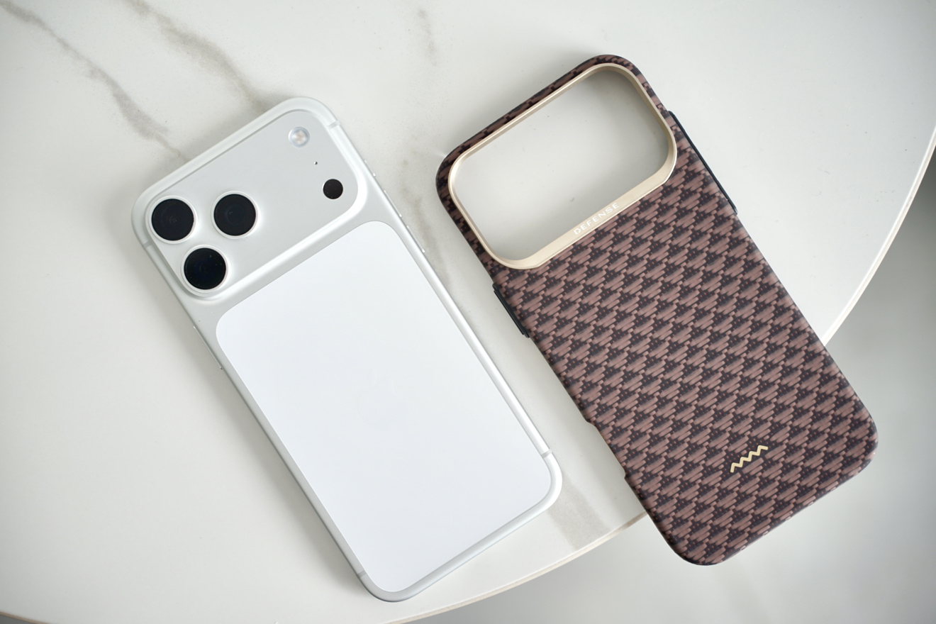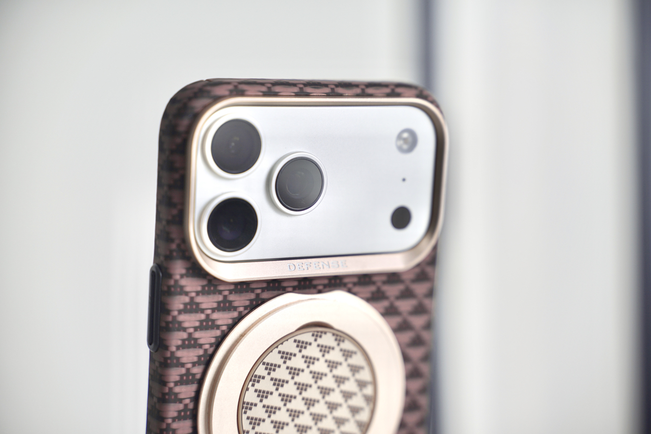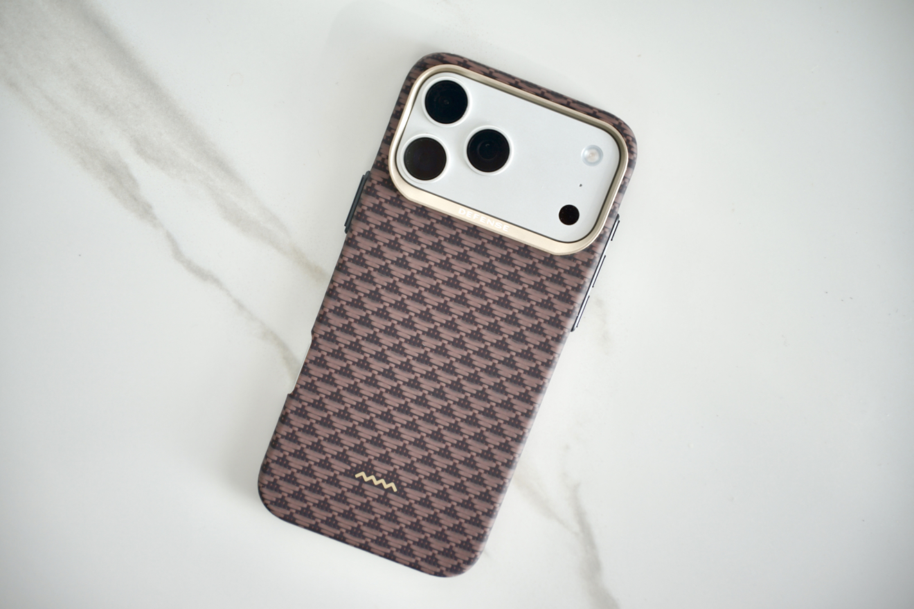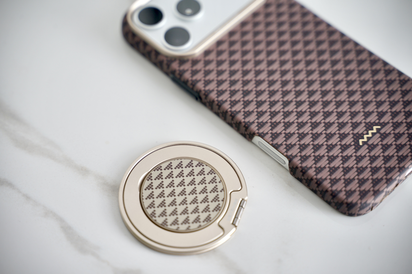 今年给 iPhone17Pro Max 依旧搭配上了决色的“和光同尘”芳纶纤维手机壳,搭配银色 iPhone17Pro Max 还是那么漂亮,仿佛将晨光中闪烁着点点金光具象化。缂织工艺在保持超薄手机壳的基础上还能有更丰富的手感。 MagSafe 这次依旧没落下,搭配仅0.36cm 的磁吸支架,能随时随地将手机立在桌上,也能让手机更稳固的卡在手上,不仅好看更实用!