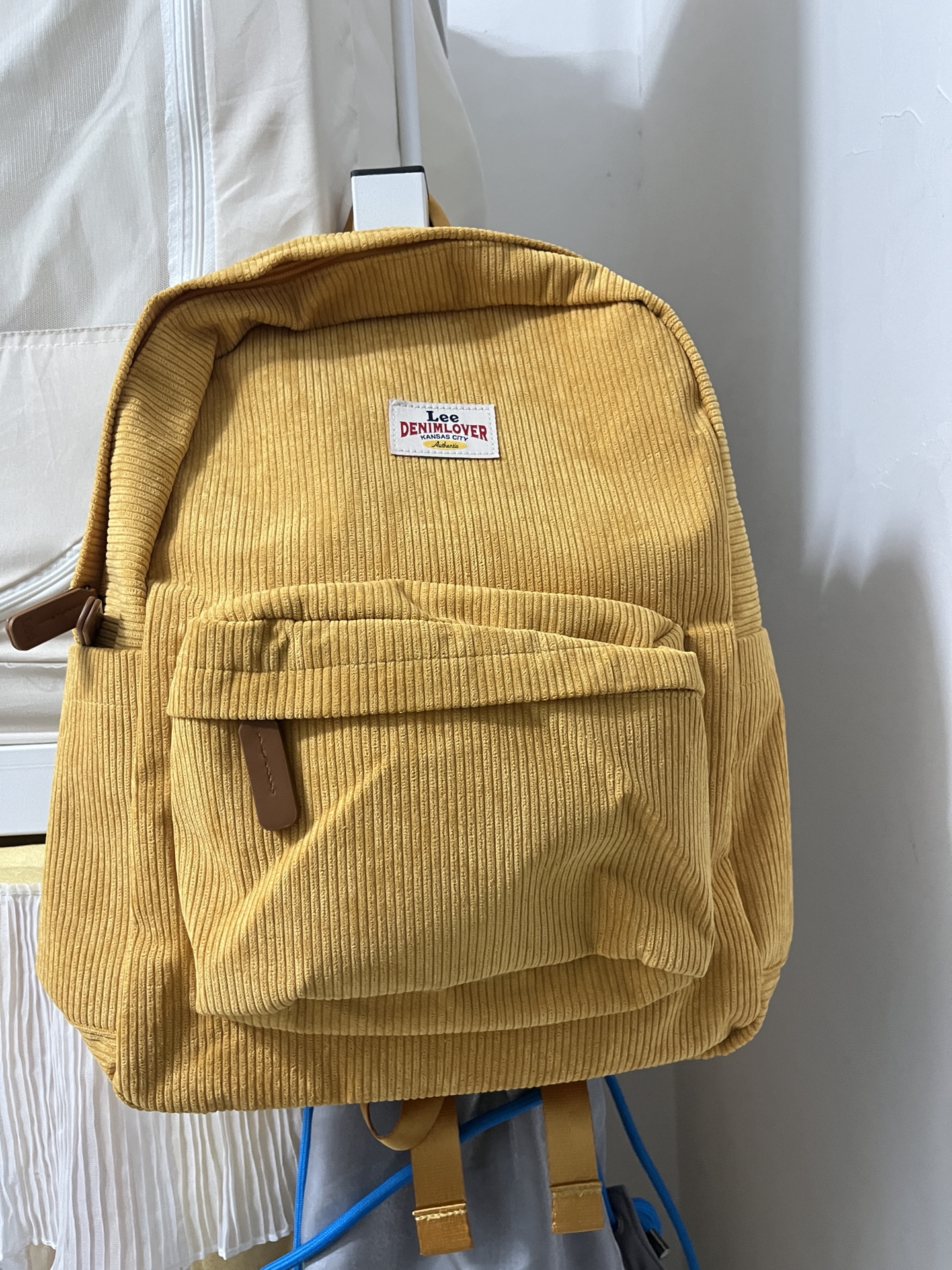 谁懂啊家人们!我挖到个超好看的灯芯绒背包✨ 颜色是那种暖乎乎的黄,灯芯绒面料摸起来软fufu的,还有字母标和车缝线设计,复古又时髦~质量也很抗打,日常通勤或者出游背都很合适🎒 不过它容量不算大,装太多东西会有点鼓,但架不住颜值高啊! 学生党或者上班族背都很有氛围感,我自己背了几天,已经被闺蜜追着要链接啦🤣