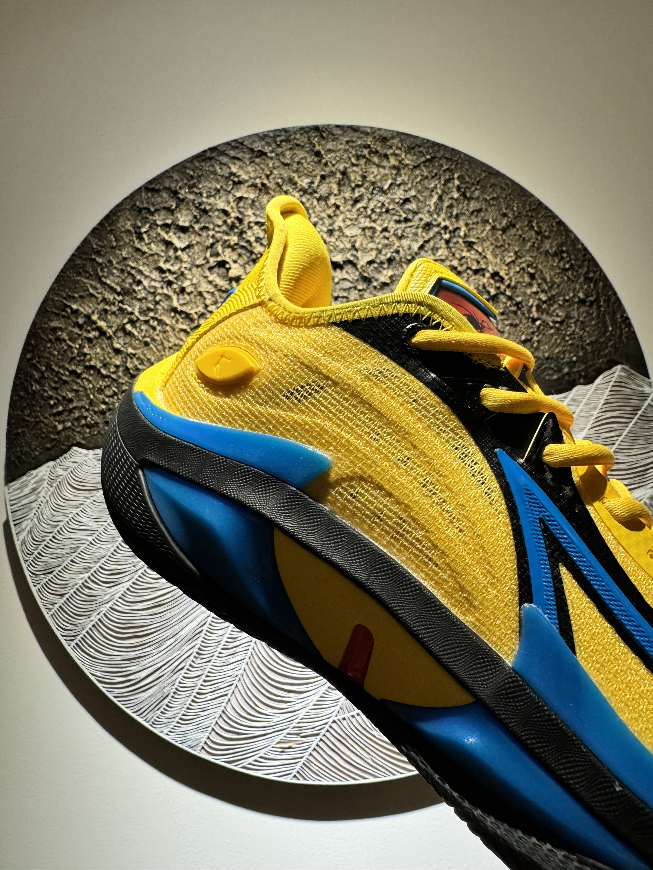 #中乔毒牙4 #球鞋真心话 #这些鞋很哇塞 #开学季球鞋指南球鞋真心话 #球鞋坦白局 鞋型更流畅,配色更亮眼 整体配色有点李小龙的感觉 鞋底有当年欧文5的神韵 看样子是耐磨的外场底 第一个鞋带孔带飞线 后跟logo左红右蓝,玩鸳鸯 整体做工比较细腻 个别小细节存留胶水痕 绞综鞋面韧性不错 泡棉填充可以,颜值性能在线