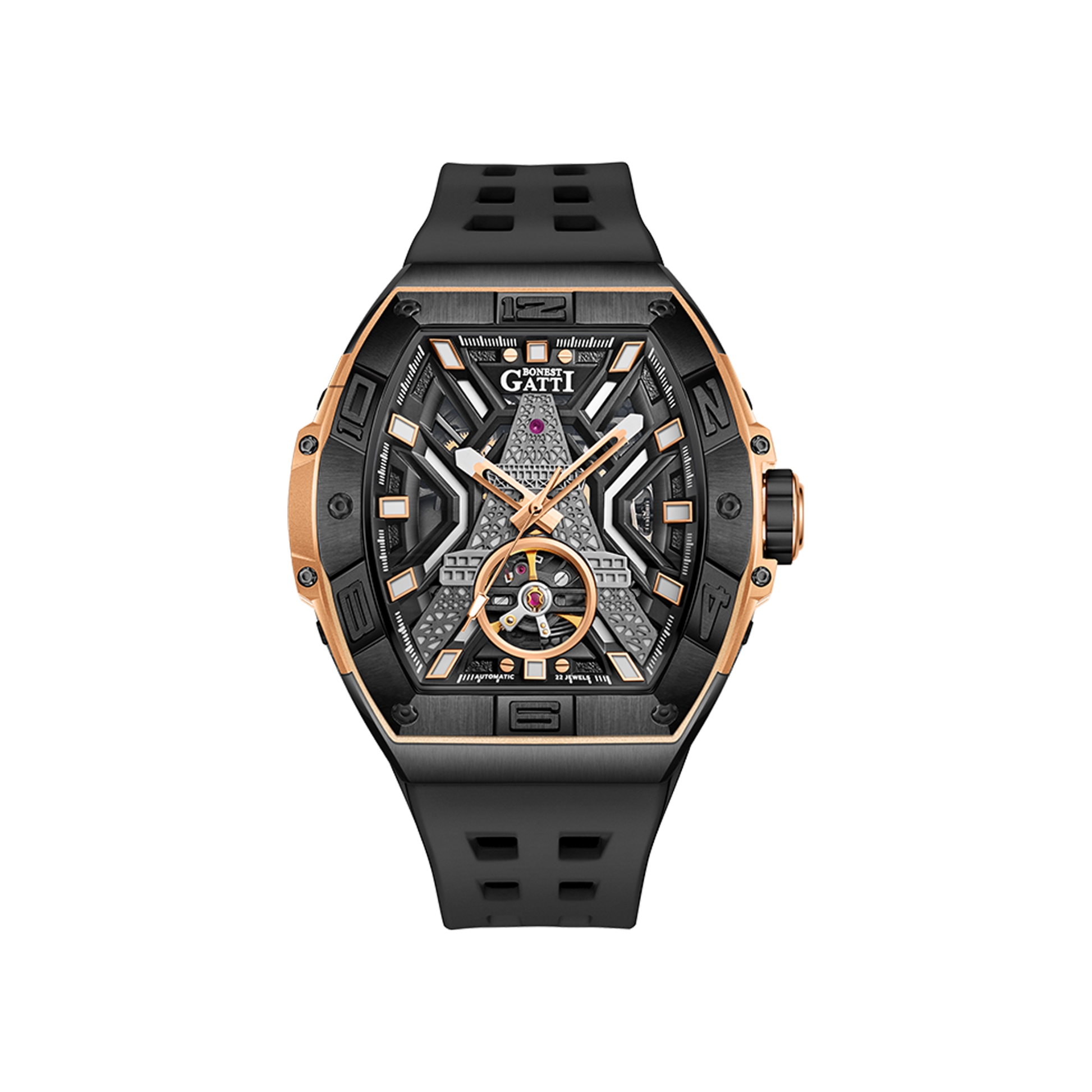 本篇笔记关联了BONEST GATTI/布加迪 时尚潮流商务休闲酒桶型百搭夜光防水镂空自动机械男士手表 玫黑 BG9970-A3等商品,为用户提供真实的使用体验和购买参考。