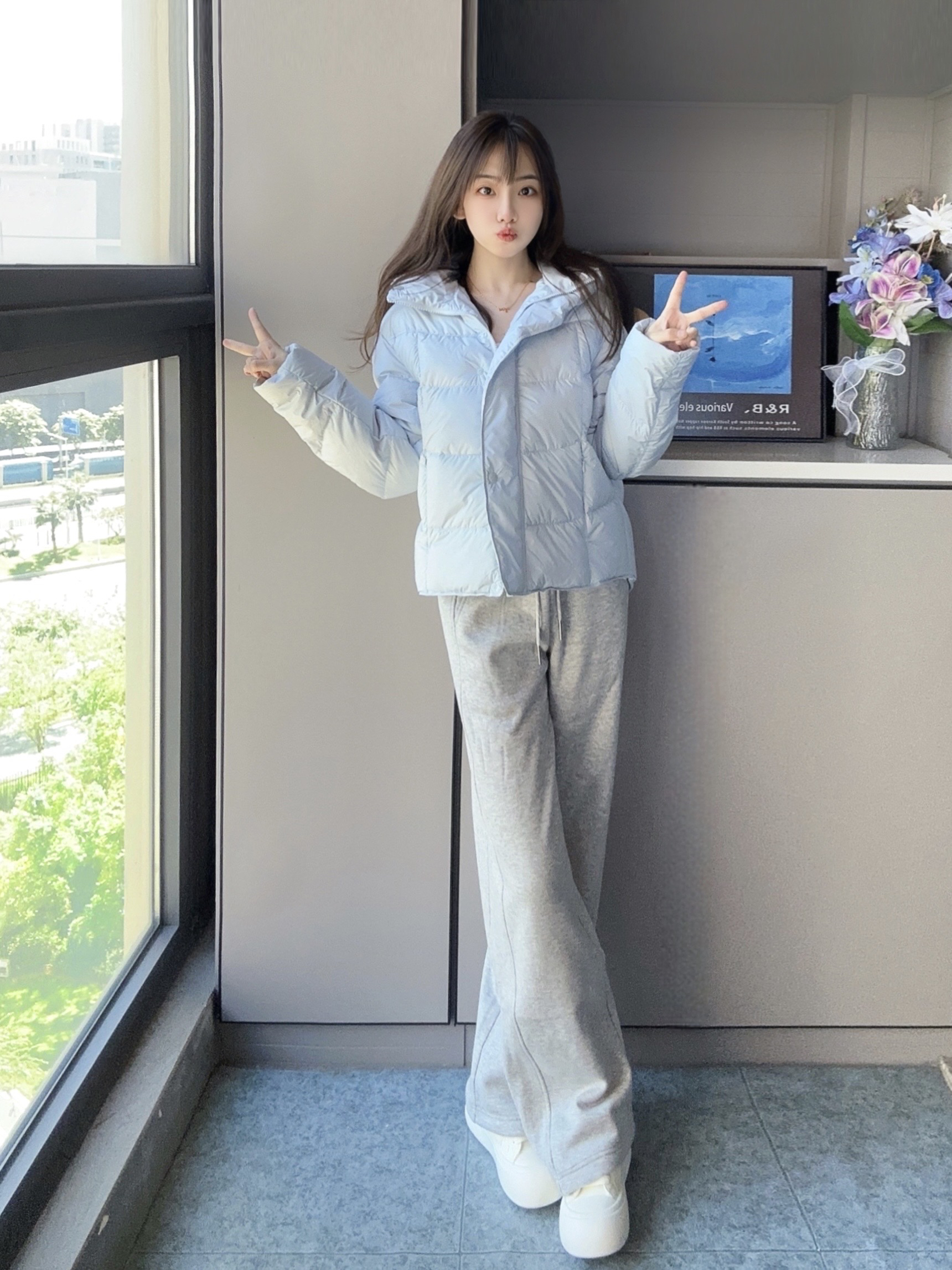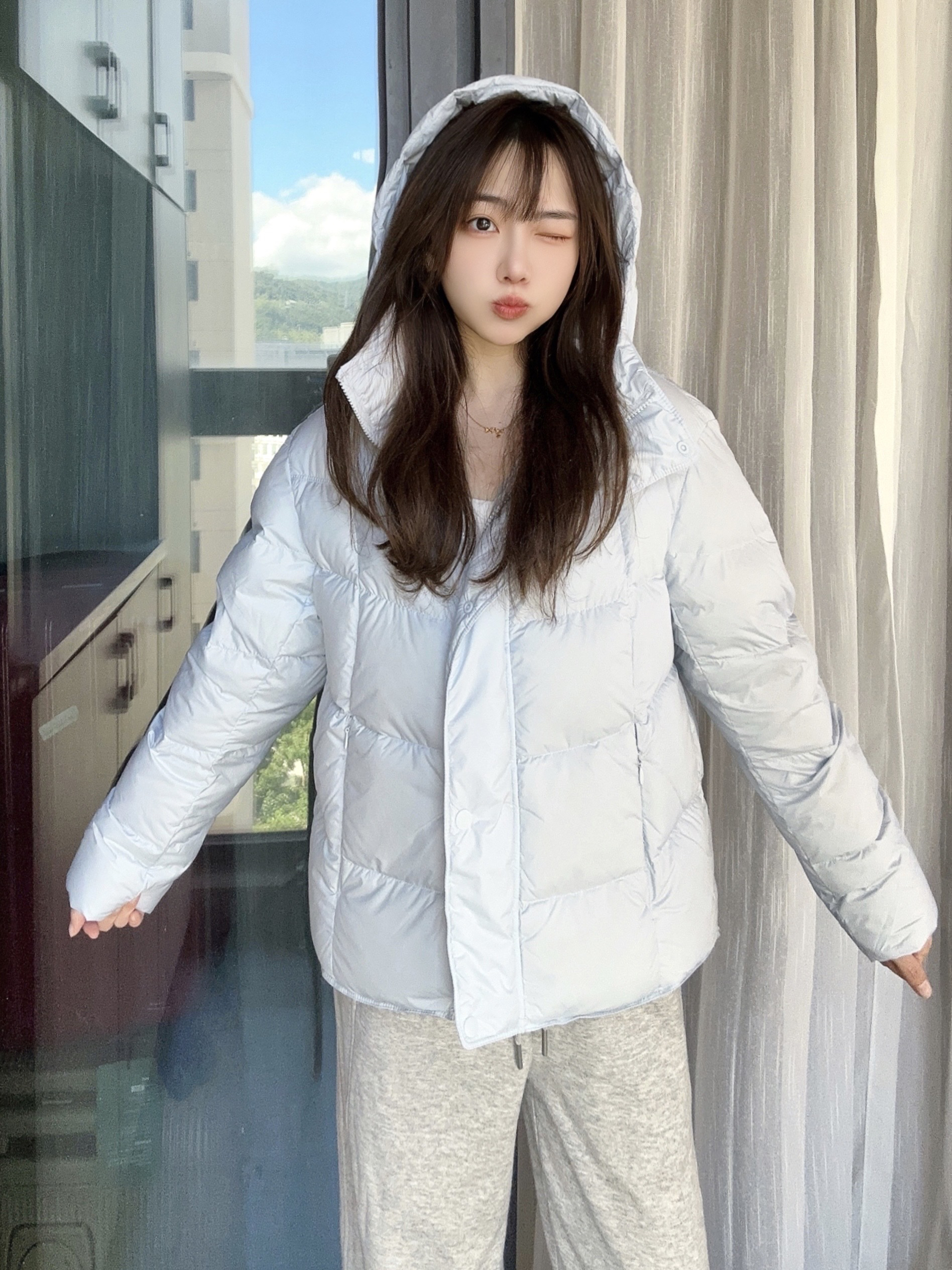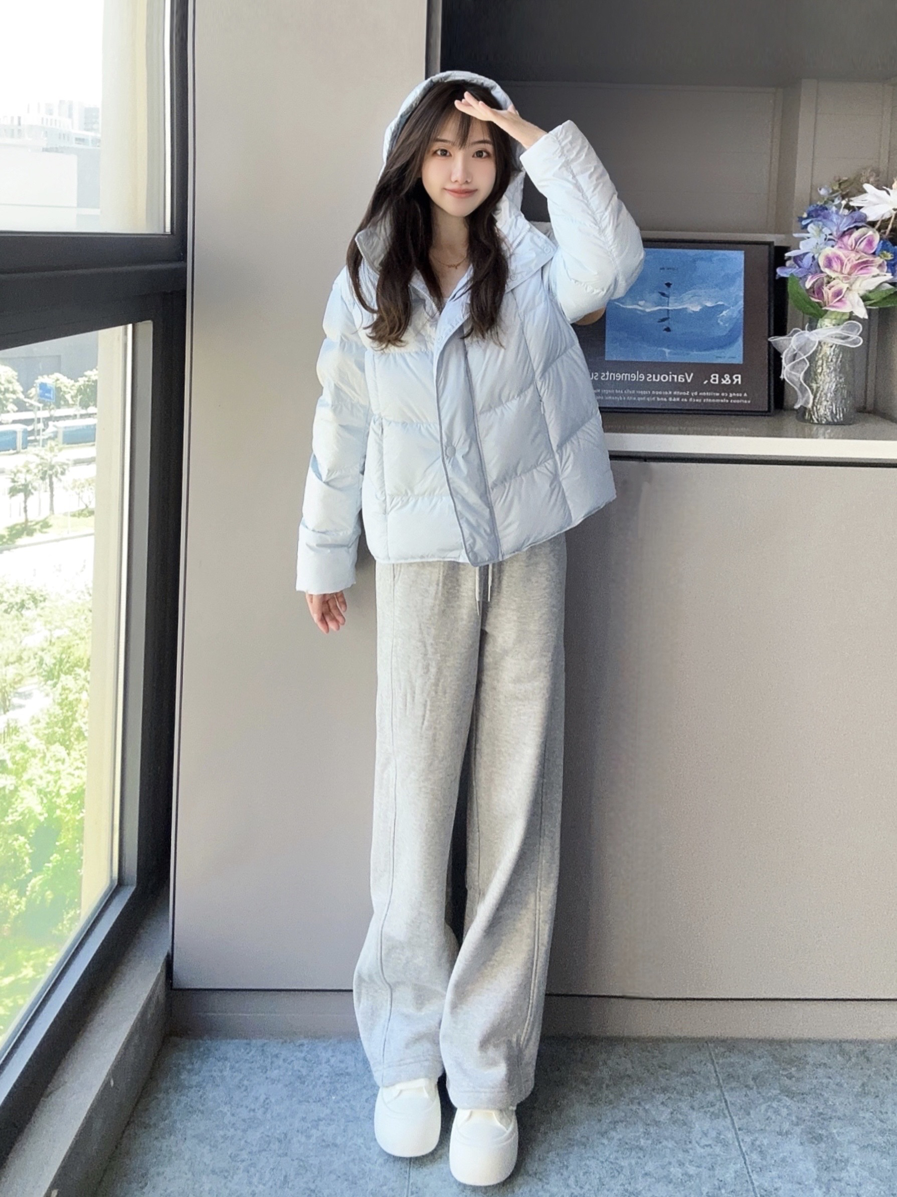 冬日的一抹淡蓝色很温柔 羽绒服保暖也要好看 短款不压身高不显臃肿 通勤很适合呢