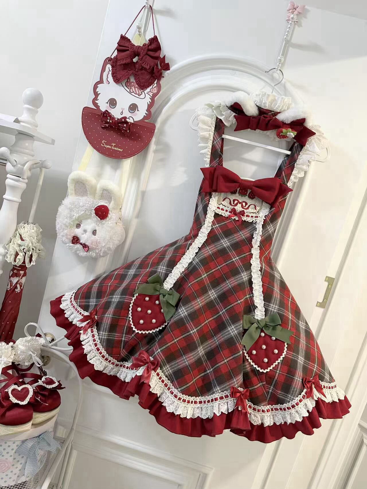 草莓的元素真的很喜欢搭,配上这个格子就很有古早的那个味道了#lo裙安利 #洛丽塔lolita #lo裙