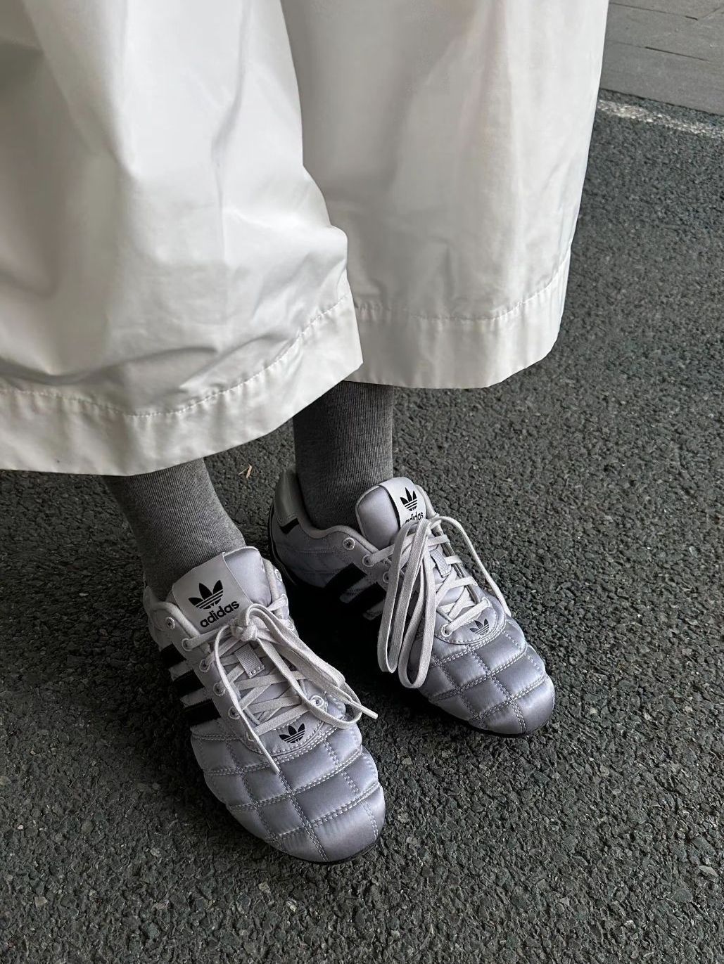 外观太帅了,银色格纹完全不会很突兀,反而更添加了些格调。 第一次尝试这种鞋子,出乎我意料的好酷好看~ 这双银色鞋子和其他鞋子有些不一样,鞋面材料是光滑的布料,摸起来超级有质感~ 喜欢的赶紧冲吧🤍🤍