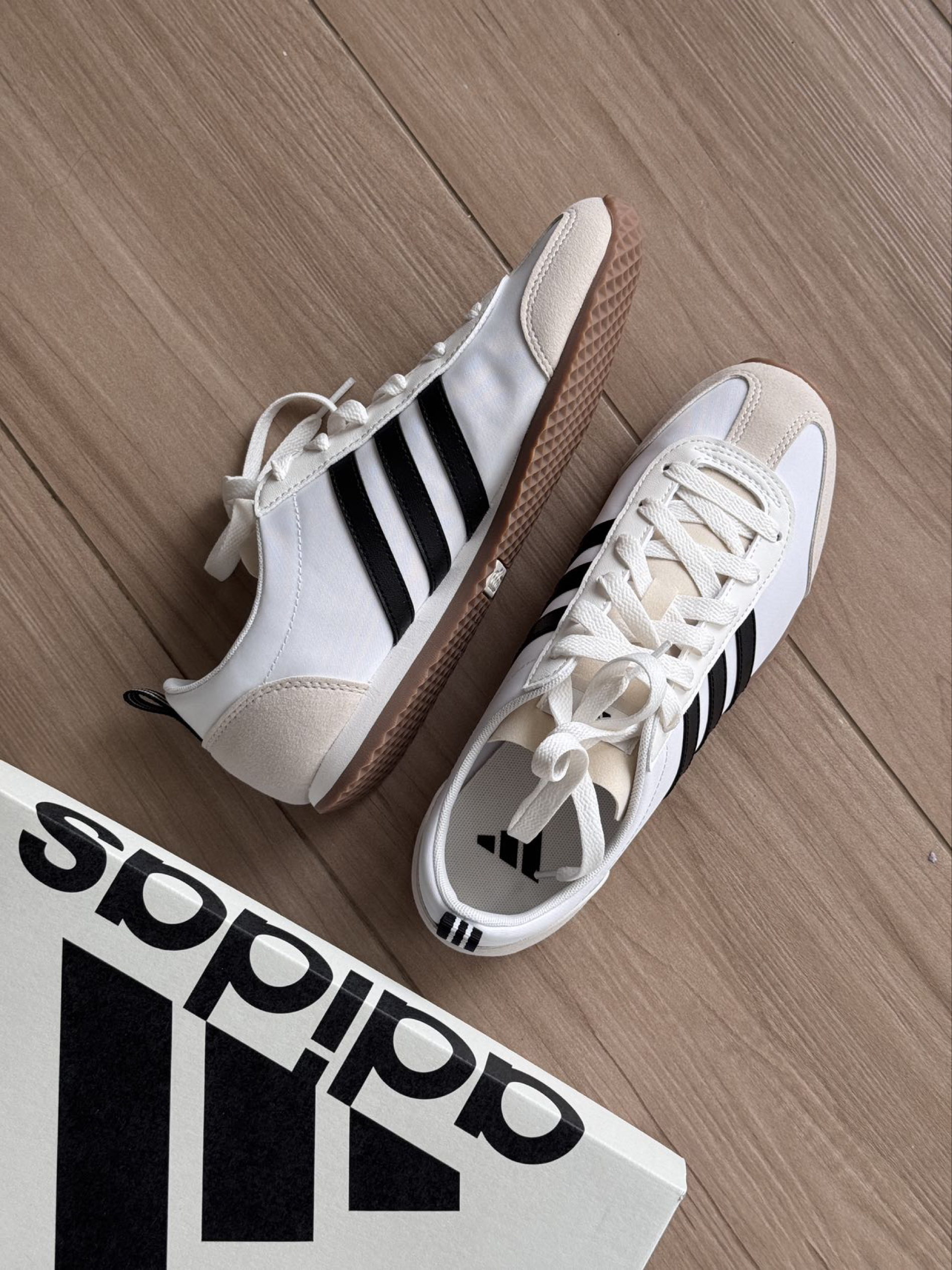 穿了一周,软底又软又薄,暴走5km脚不酸,而且复古鞋型巨显脚小! 👔:配高腰直筒牛仔裤+白T,美式复古感拉满;或者搭碎花连衣裙,甜酷平衡绝绝紫。 小🏷️:虽然它颜值抗打、脚感舒适、适配多风格; 但是白色鞋面易脏,得勤打理哦。 文案2:《实测阿迪阿甘鞋:它凭什