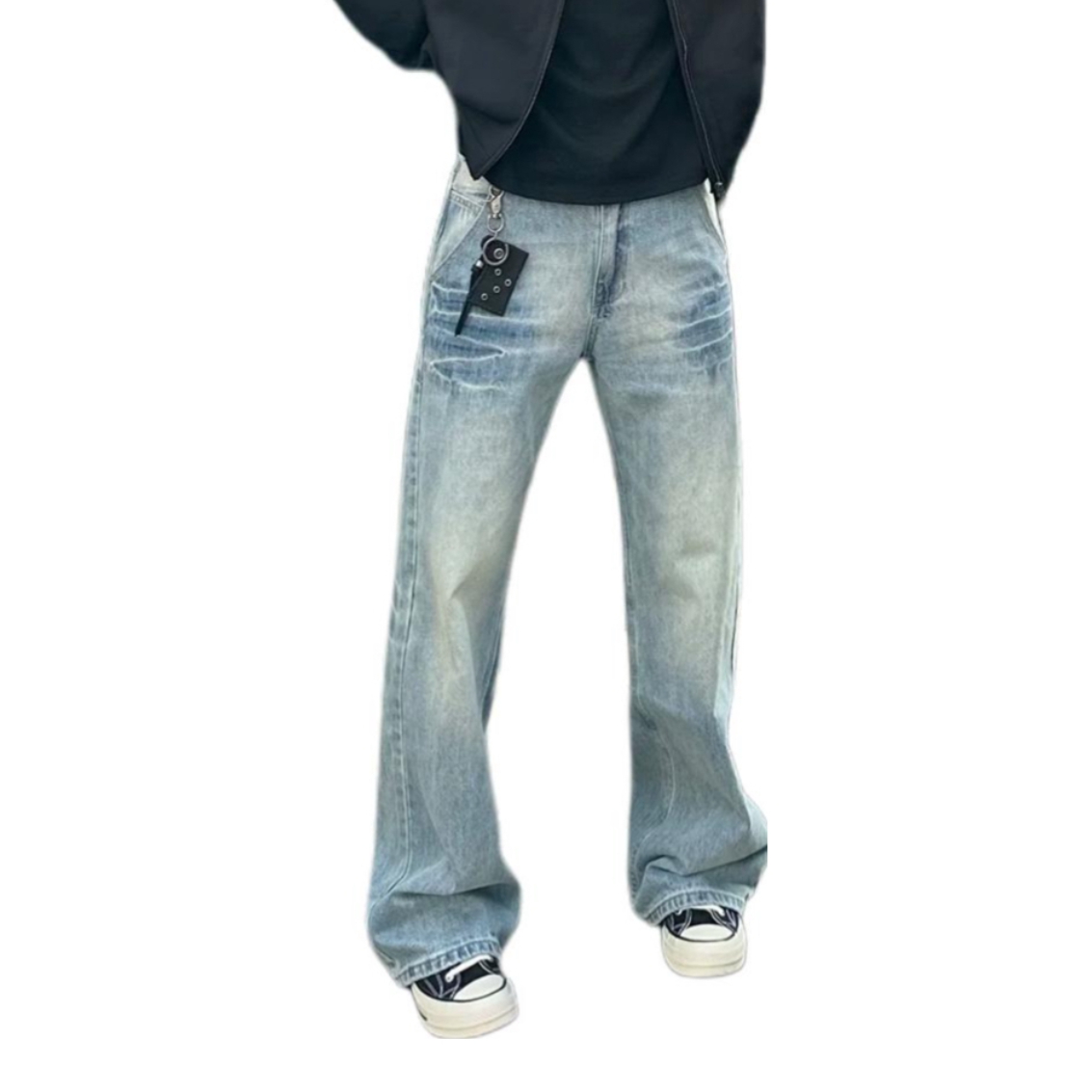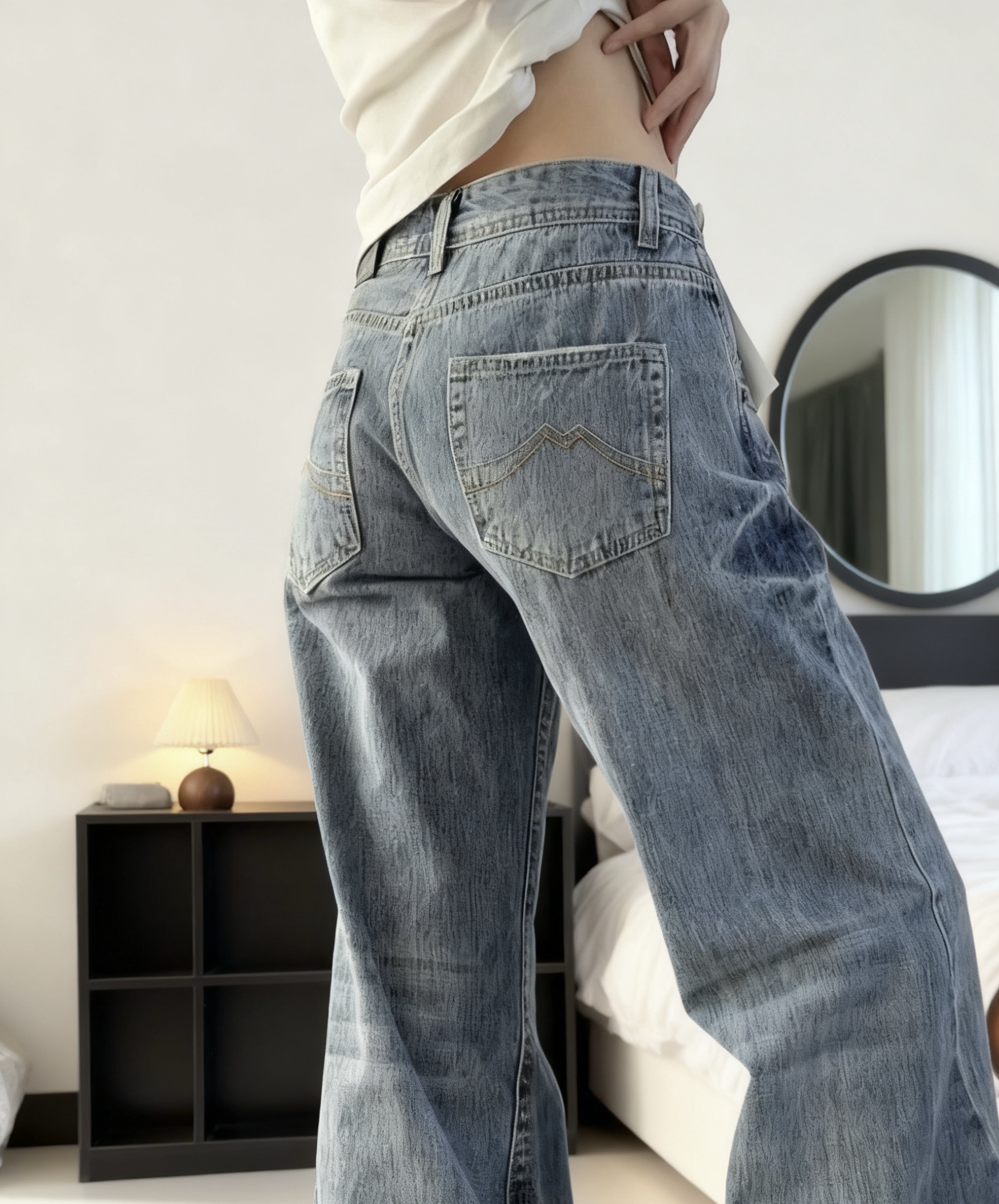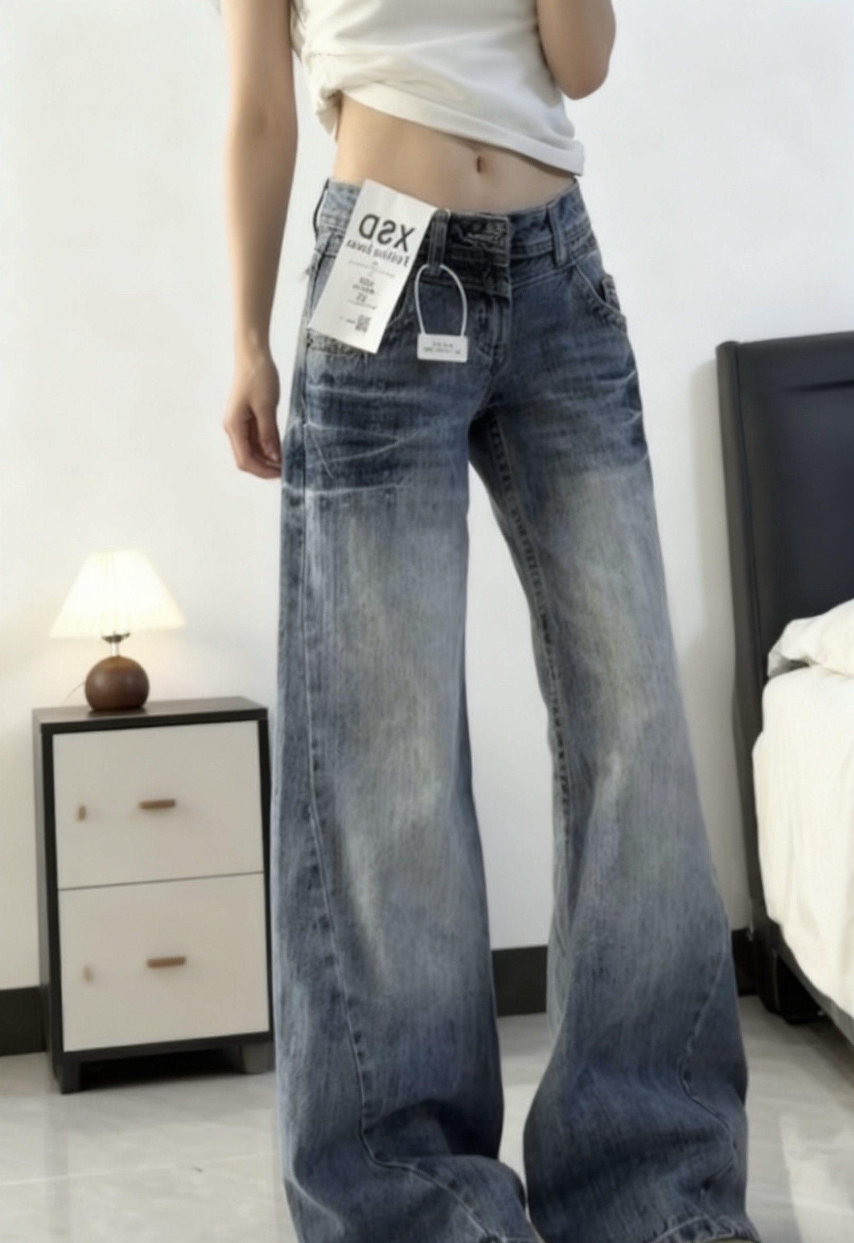 这条复古做旧阔腿牛仔裤太绝啦!经典牛仔蓝自带复古感,阔腿版型超显腿长,对各种腿型都很友好。高腰设计还能优化身材比例,搭配简单的上衣就很出彩,日常出街或者休闲聚会穿都超合适,妥妥的百搭神器~
