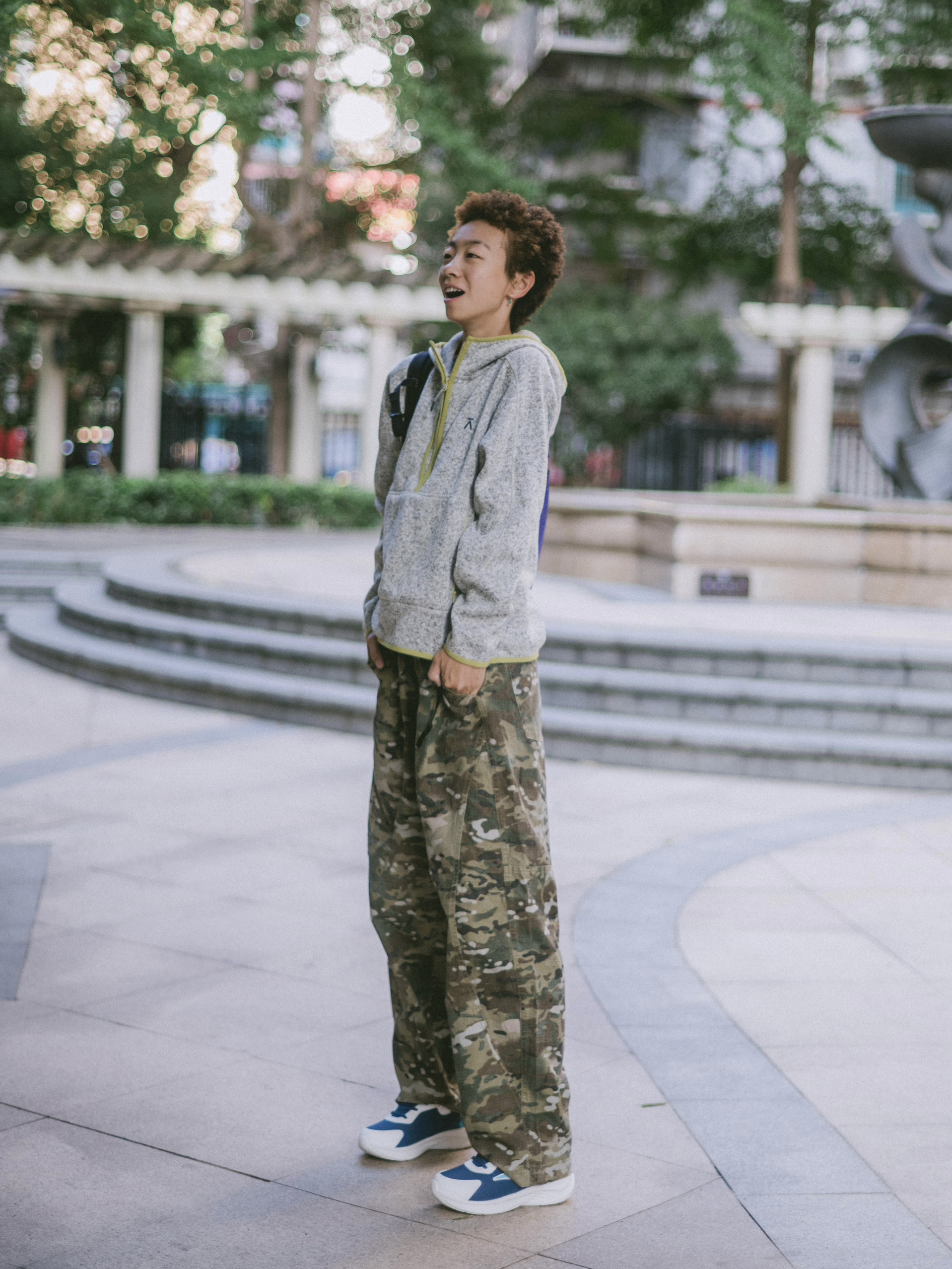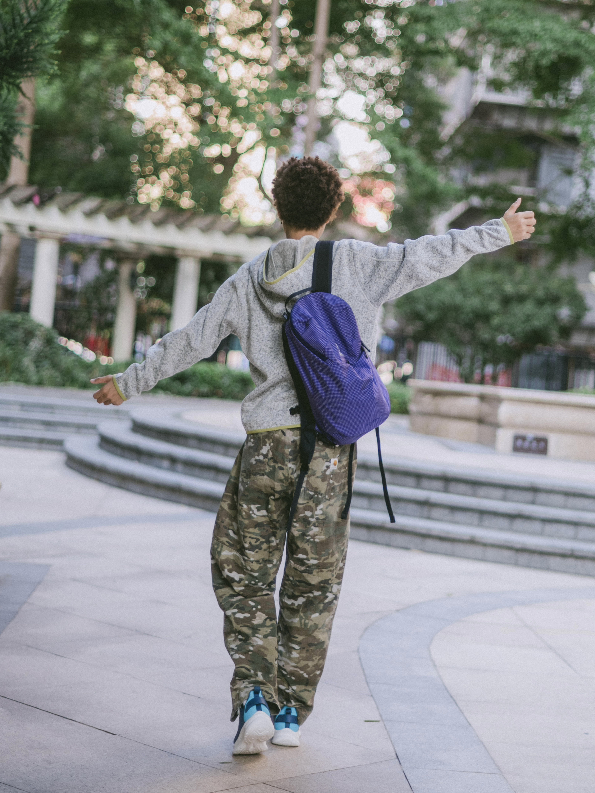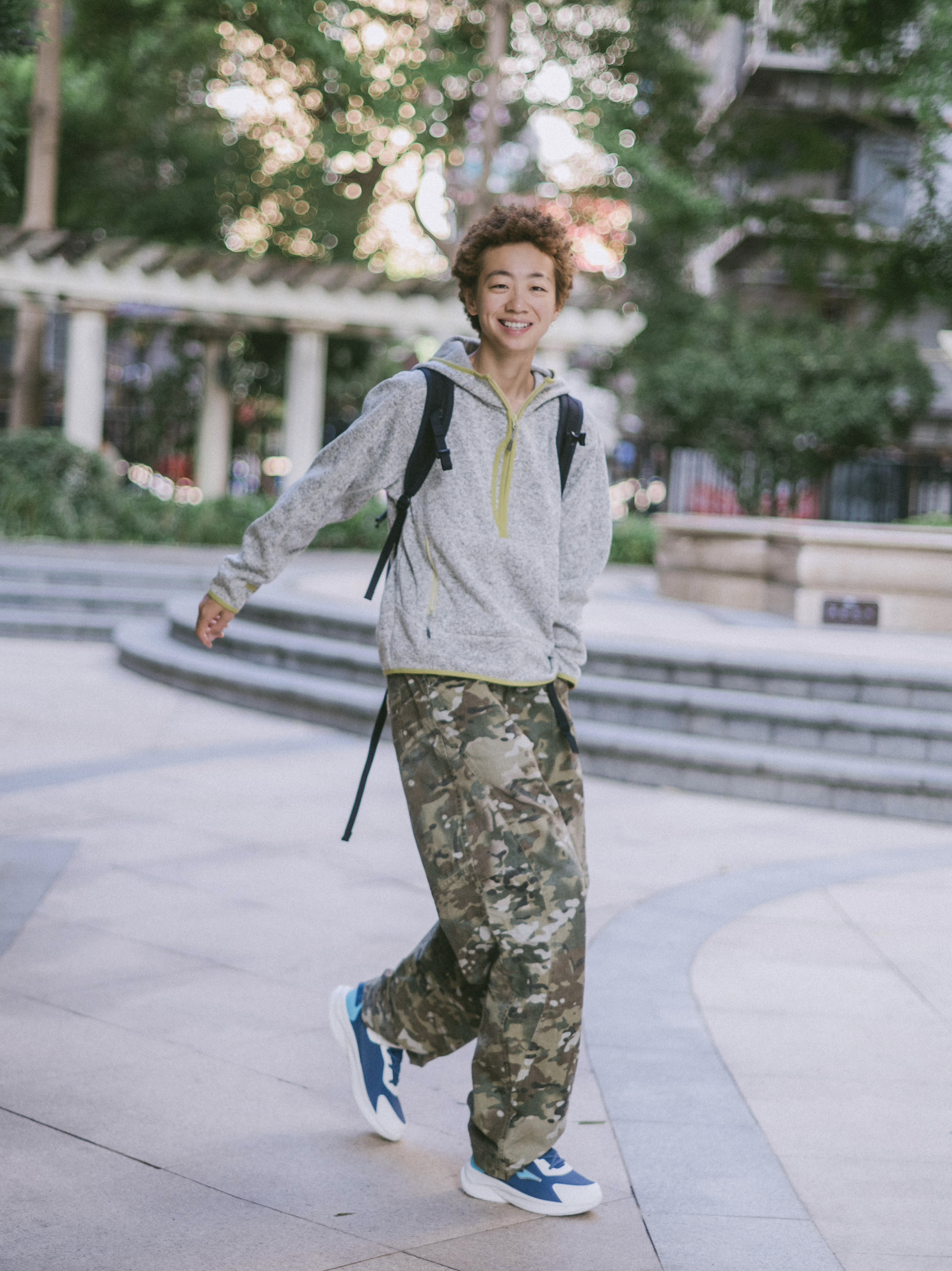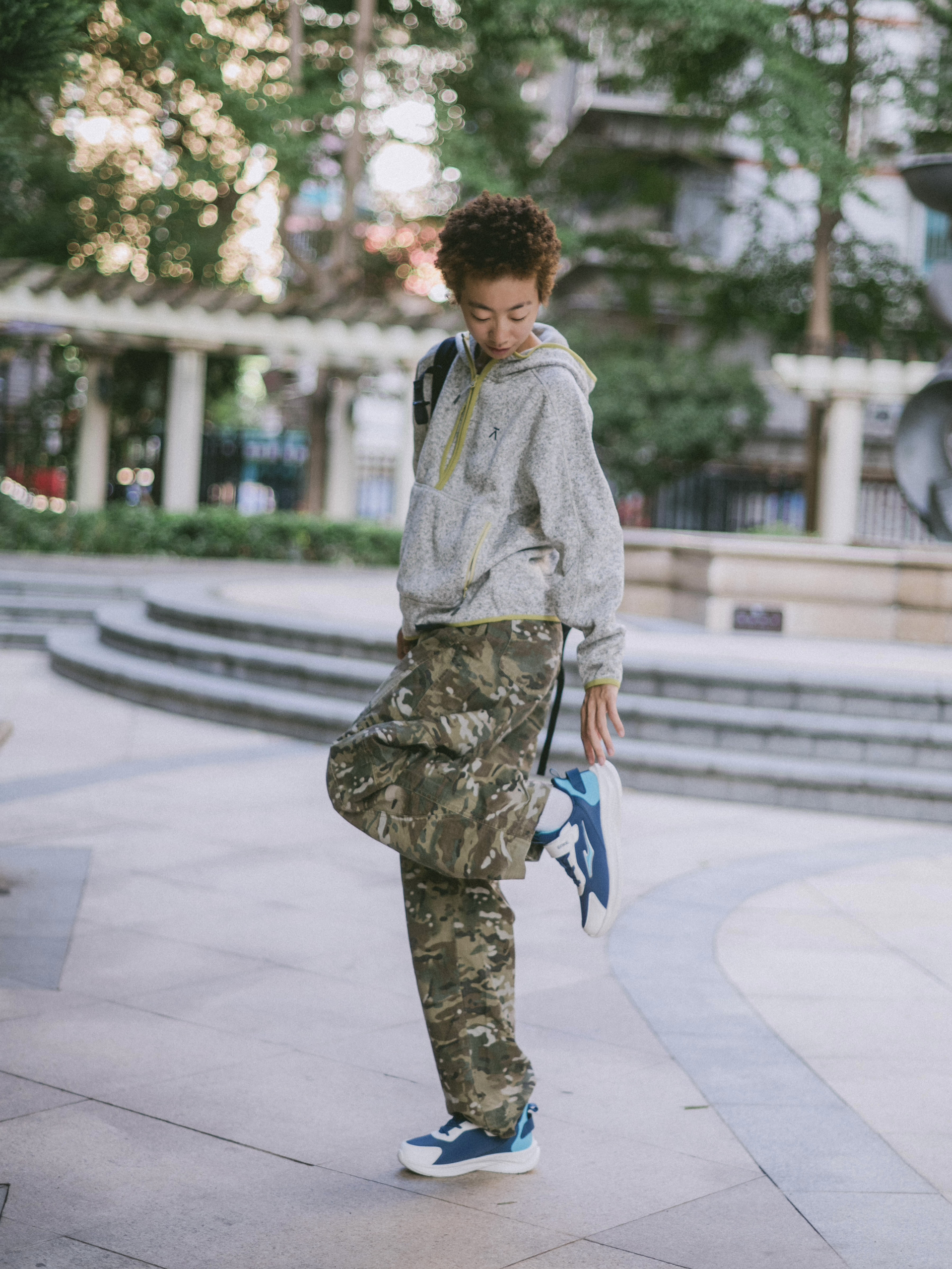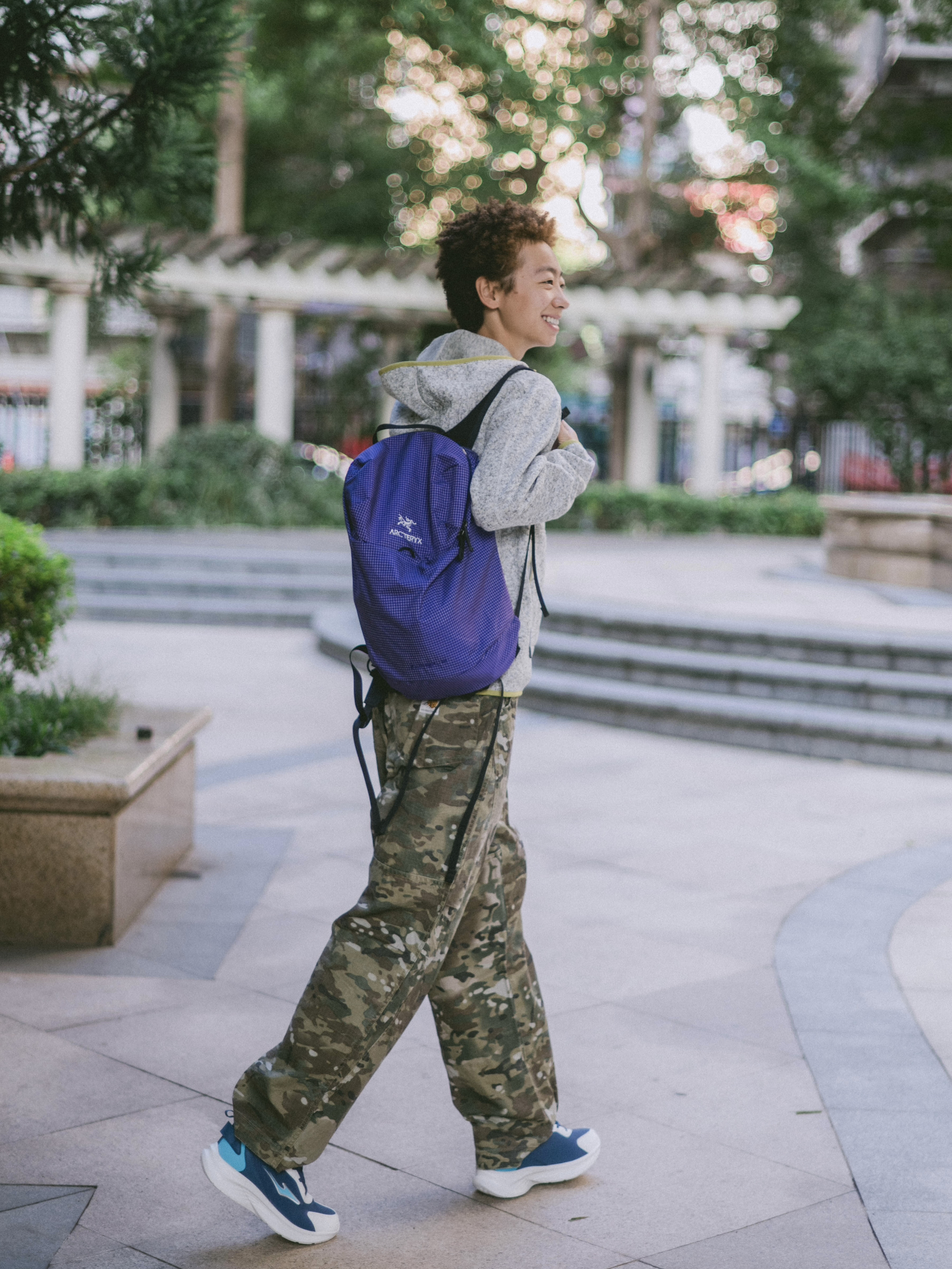 欢迎进入哇哇哇的穿搭分享频道 172CM|55KG 👔:m👖:m|👟:39码 上身鸿星尔克的深蓝白配色跑鞋👟 出门户外玩咯~ 搭配迷彩工装裤 灰色卫衣的黄色袖标悄悄呼应鞋带颜色 背上俺的始祖鸟紫色💜双肩包 Gogogo出门啦~