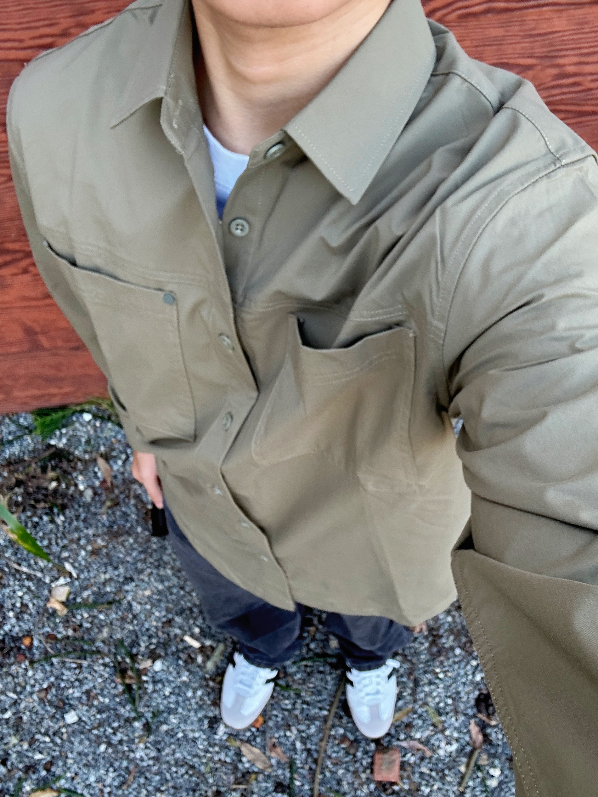 这件 英爵伦ENJEOLON 家的工装衬衫👔 是真的纯纯硬帅‼️🧱 接地气的灰绿配色🟢 面料手感舒服 落肩设计 单穿或叠穿都很有秋天的味道🍂 通勤/正式场合 都没问题🆗 上身给人一种硬朗帅气的感觉👔 个人很喜欢这件工装衬衫❤️ 真的有被硬控到了💥