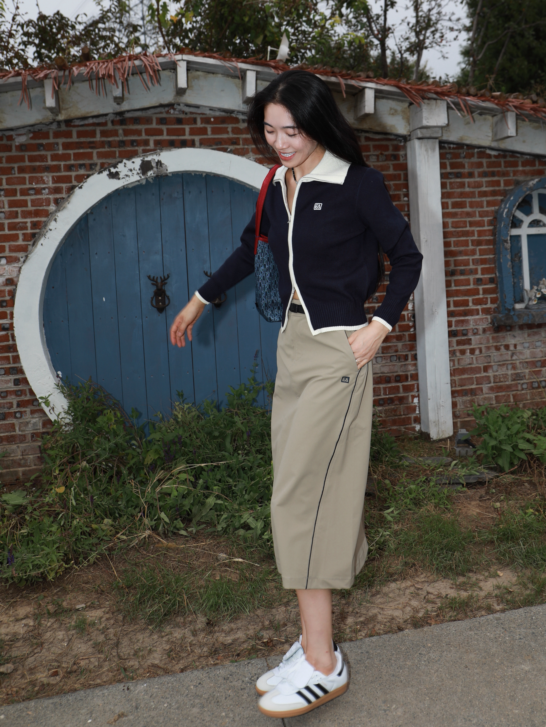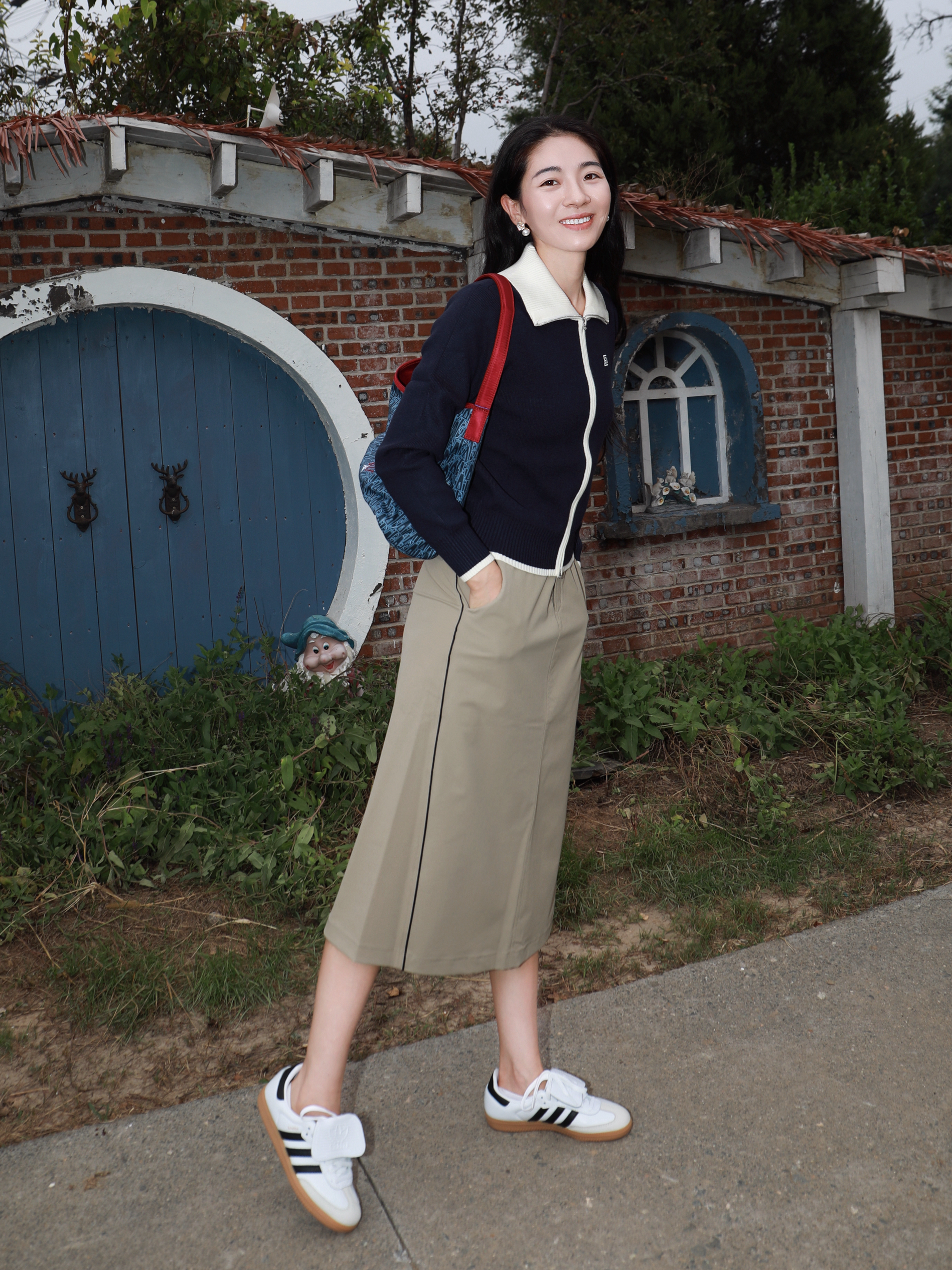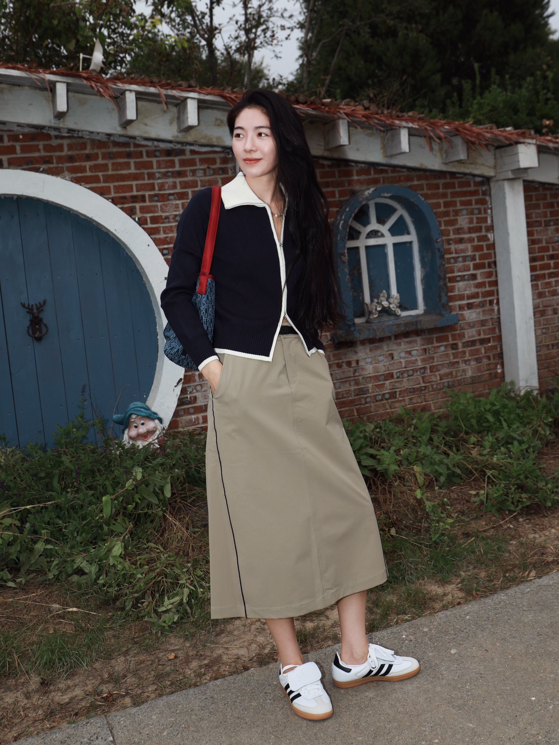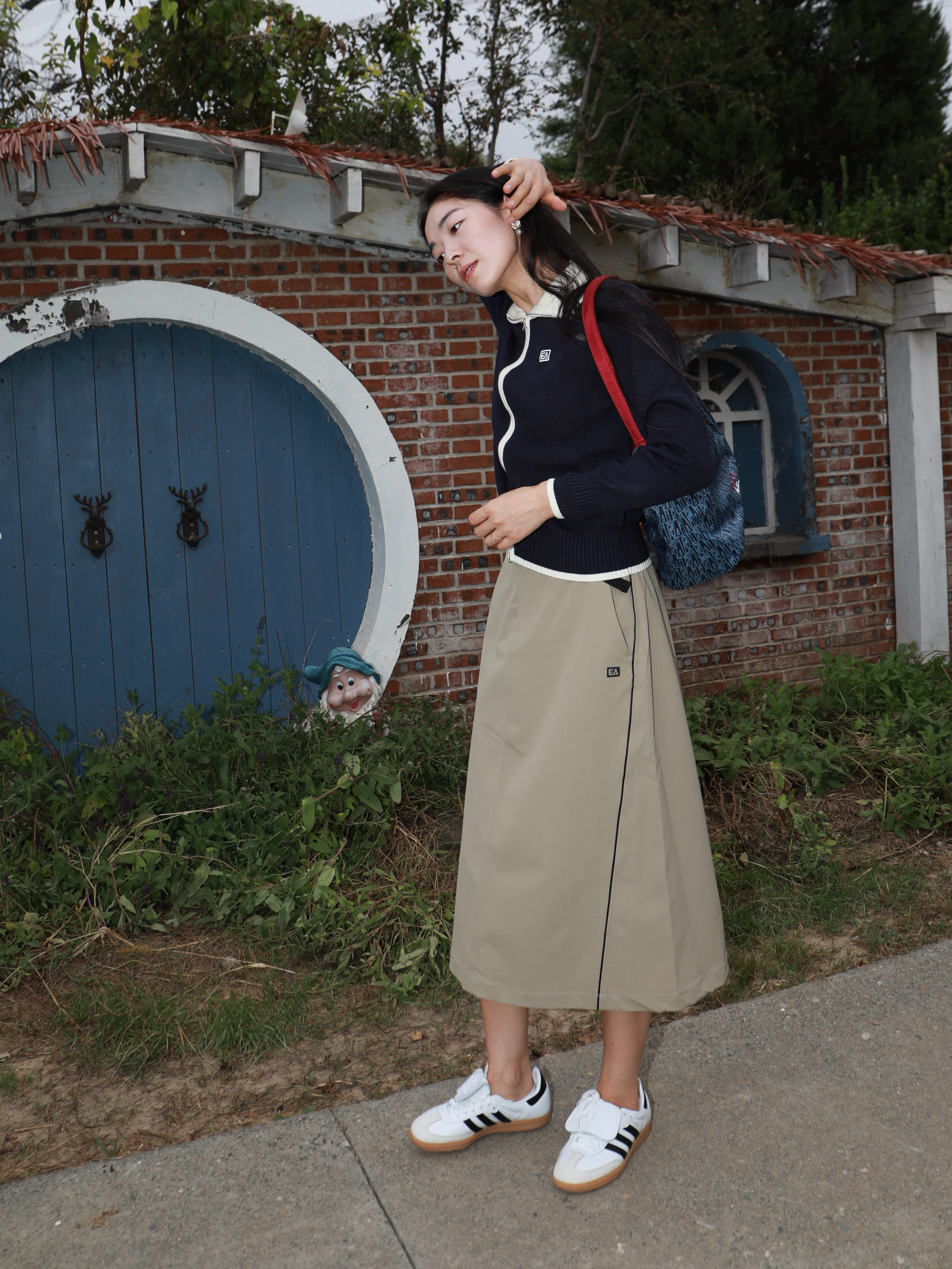 作为一个淡人 所有的颜色里,最喜欢暗色 因为它低调、耐看、不张扬✌️ 但又有态度~简约且魅力无限 今日份穿搭主打一个松弛感 老钱风的拼色开衫➕卡其色的半身裙 再加一个腋下包 松弛慵懒感直接up好几个档✌️ 秋冬通勤上班穿是合适的 So,像我这种淡人国庆出游也照穿不误 适配的场景还挺多 一套来自ELLEActive 身高168体重90,本人入s码现货,供参考