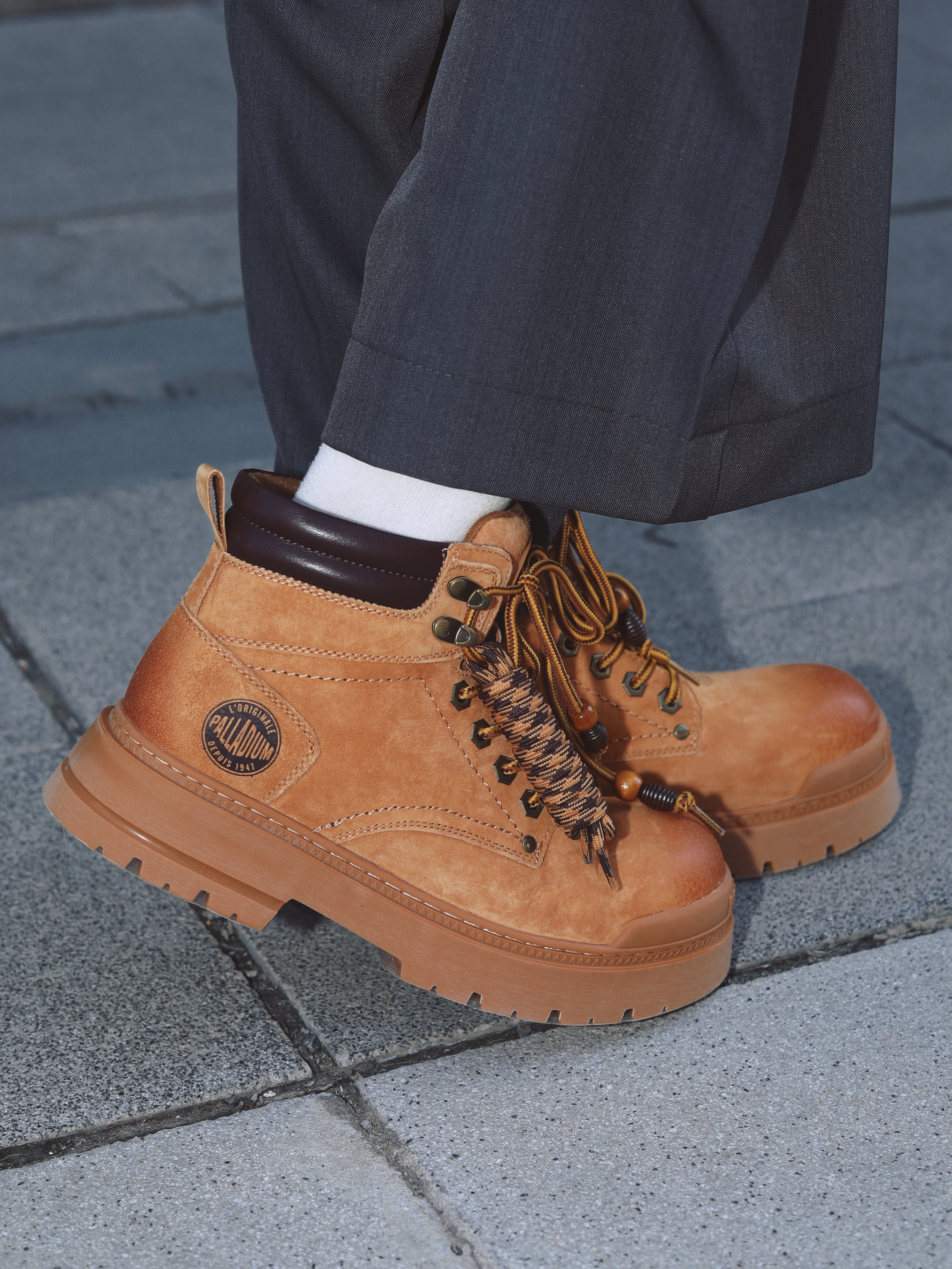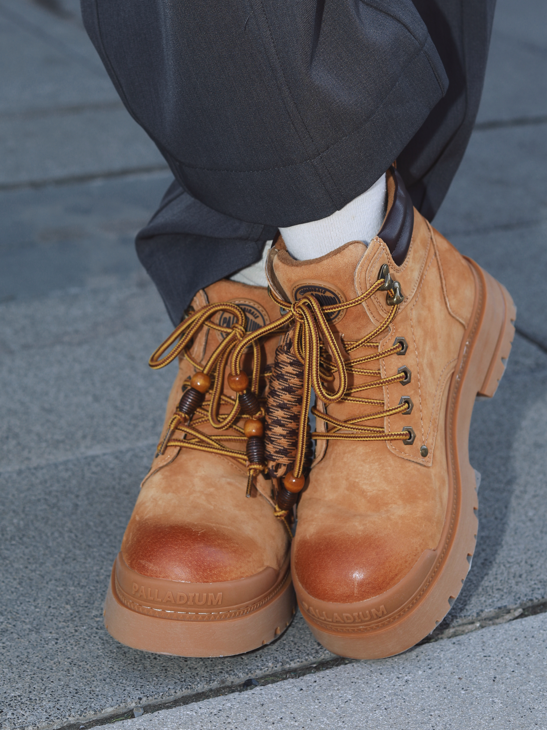 夏天与秋天悄然交接,狠狠期待秋冬啦✌️ 是想去户外的心真的克制不住啊🥹 自从入手了Palladium 帕拉丁 已经疯狂期待着再快点降温啦🥰 黄色的经典绒面大黄靴 是一种温柔的力量 是一种肆意,舒适,自在的心情 搭配棕色的元素,一整个都市栗人 脚下生风,时尚又有氛围感