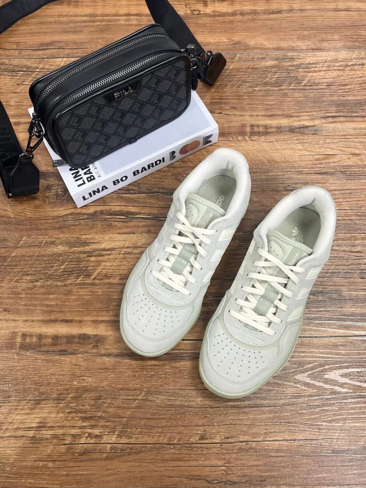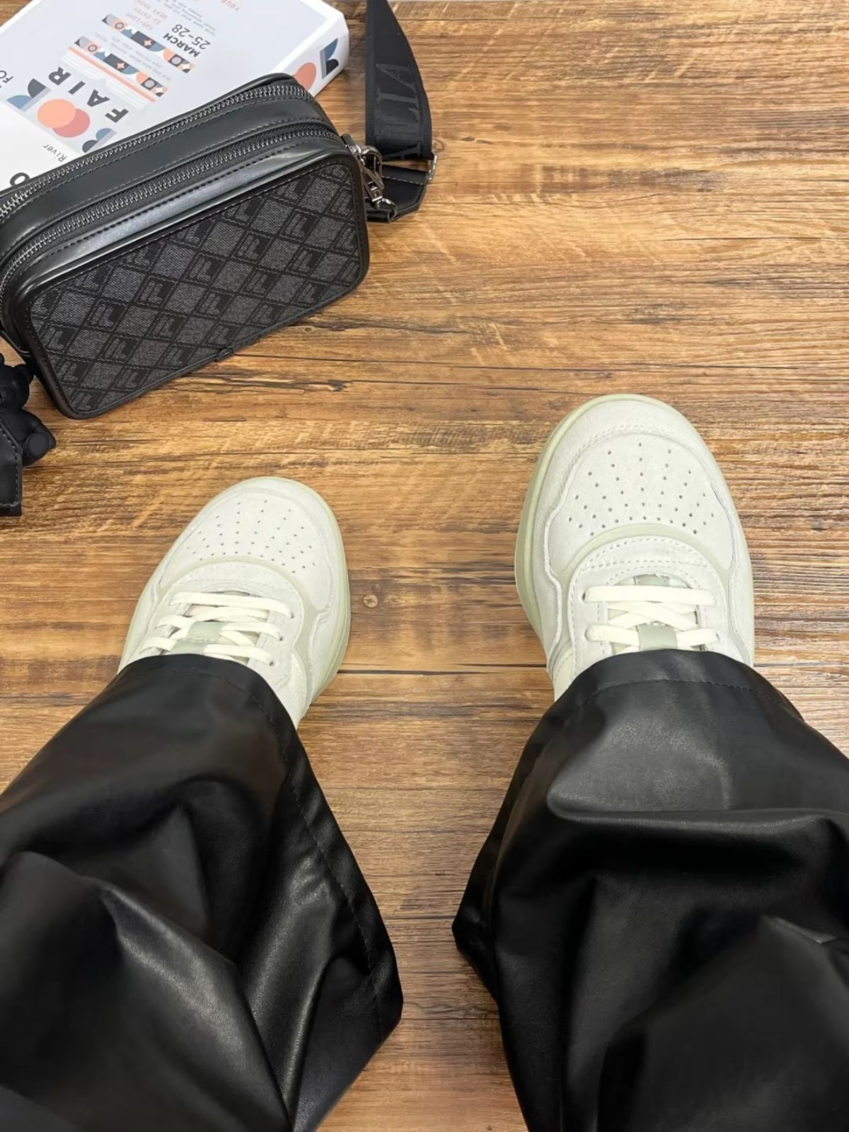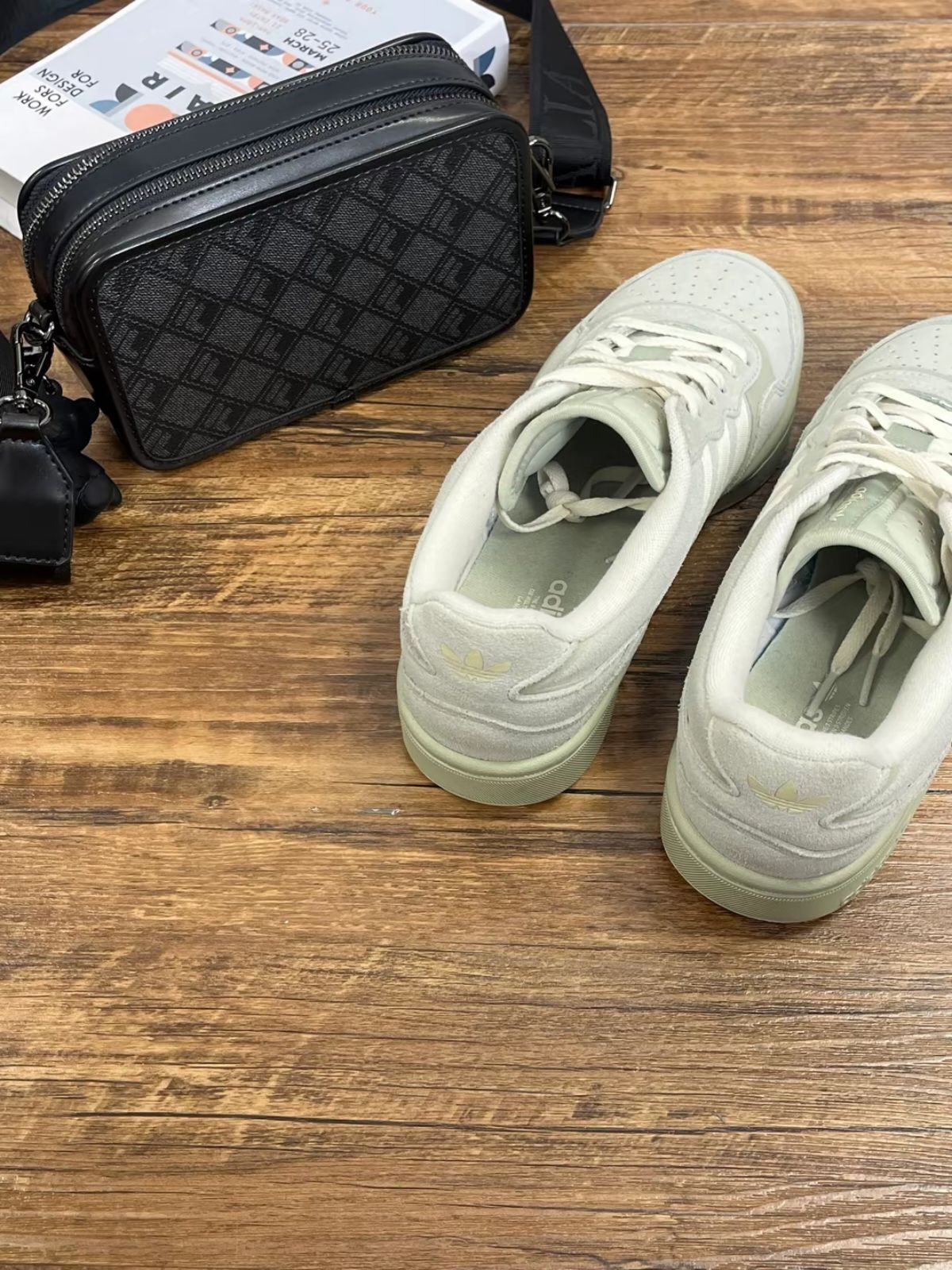 鞋子是织物+皮革拼接,清新奶抹茶色温柔又干净 包裹感也很赞,走一天脚底也不怎么累😌 再搭这个黑色小方包🖤,容量刚好,通勤还是出街都顺手~ 👉 一套搞定日常穿搭,配牛仔裤、工装裤都好看✨