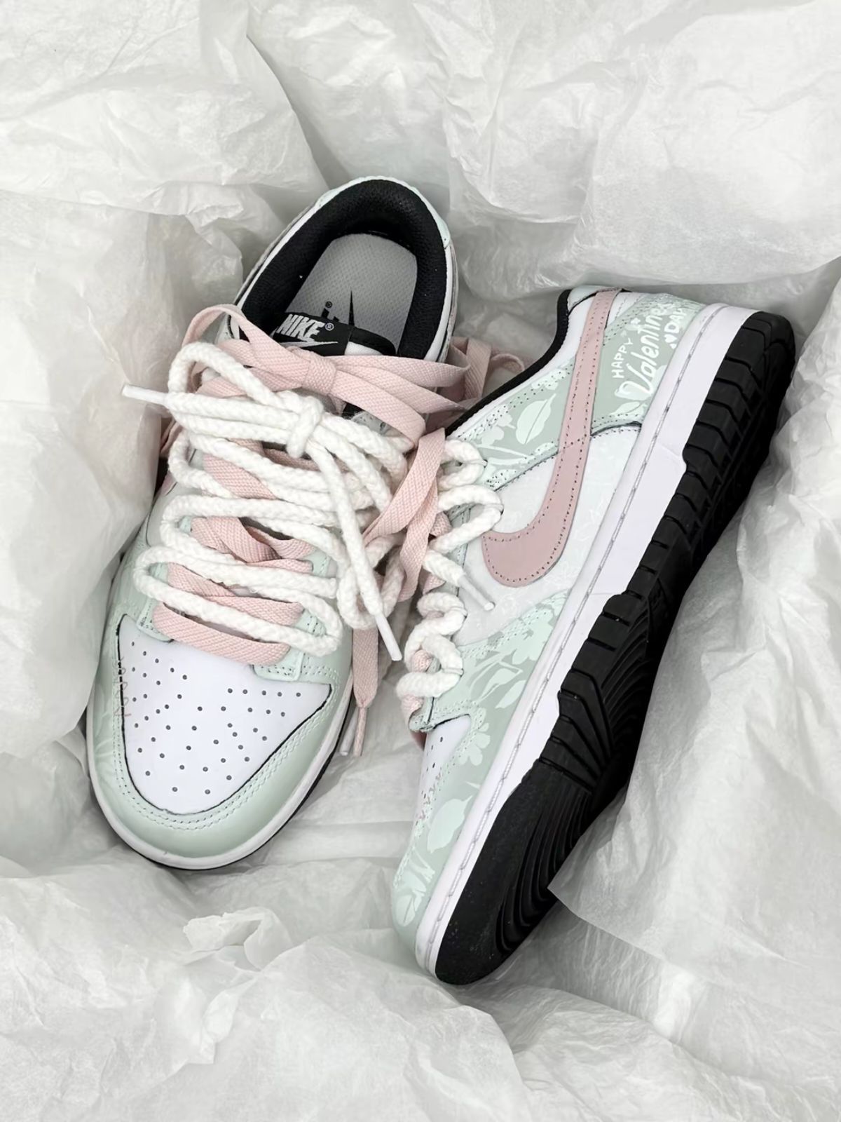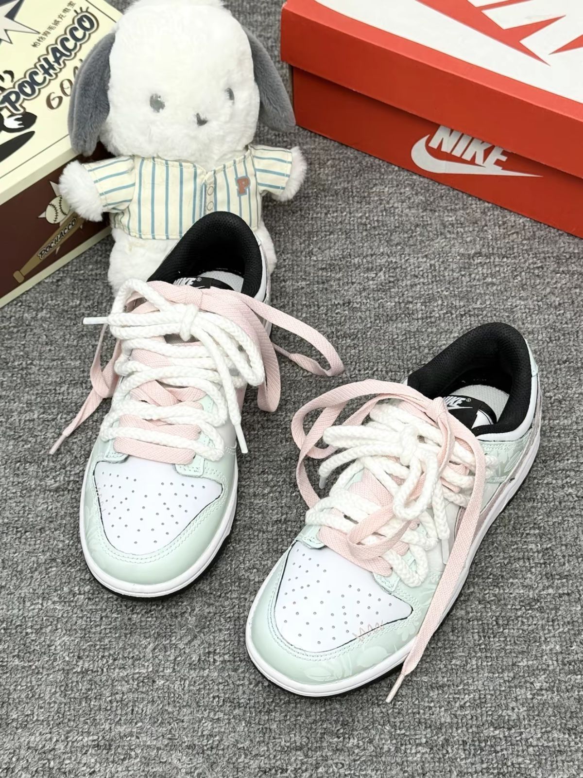 Nike的介双秋日绮梦尊嘟好看哎 淡淡的嫩绿色➕粉色大logo对钩又乖又美腻 我感觉踩着软软的走路脚感还蛮舒服滴 鞋面好打理 平时脏了擦擦就干净 日常搭配牛仔裤小裙子都敲合适