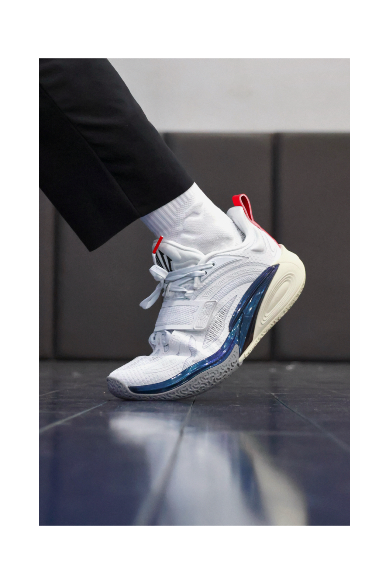 第一次上脚就被惊喜到——低帮设计完全不卡脚踝,系紧鞋带后脚踝活动超灵活,打全场跑跳时没有一点束缚感。蓝色鞋身比图片更有质感,不是那种廉价的亮蓝,搭配黑色运动裤或牛仔裤都很搭,日常出街也不突兀,完全不用特意为了鞋子搭衣服。 实战性能更是没话说。鞋底纹路很深,不管是室内木地板还是室外塑胶场,急停、变向都稳得一批,从没有过打滑的情况,耐磨度也超出预期,穿了快两个月,鞋底纹路几乎没怎么磨损。