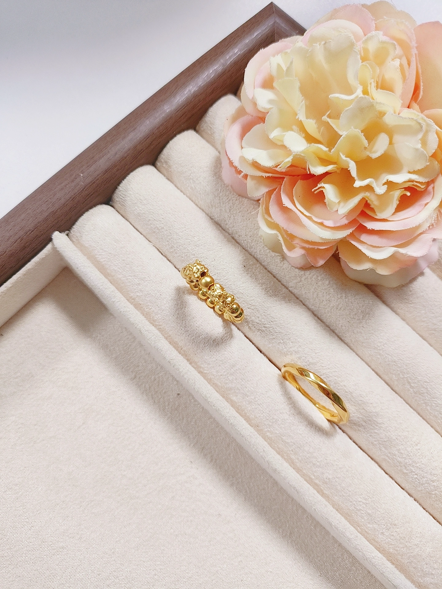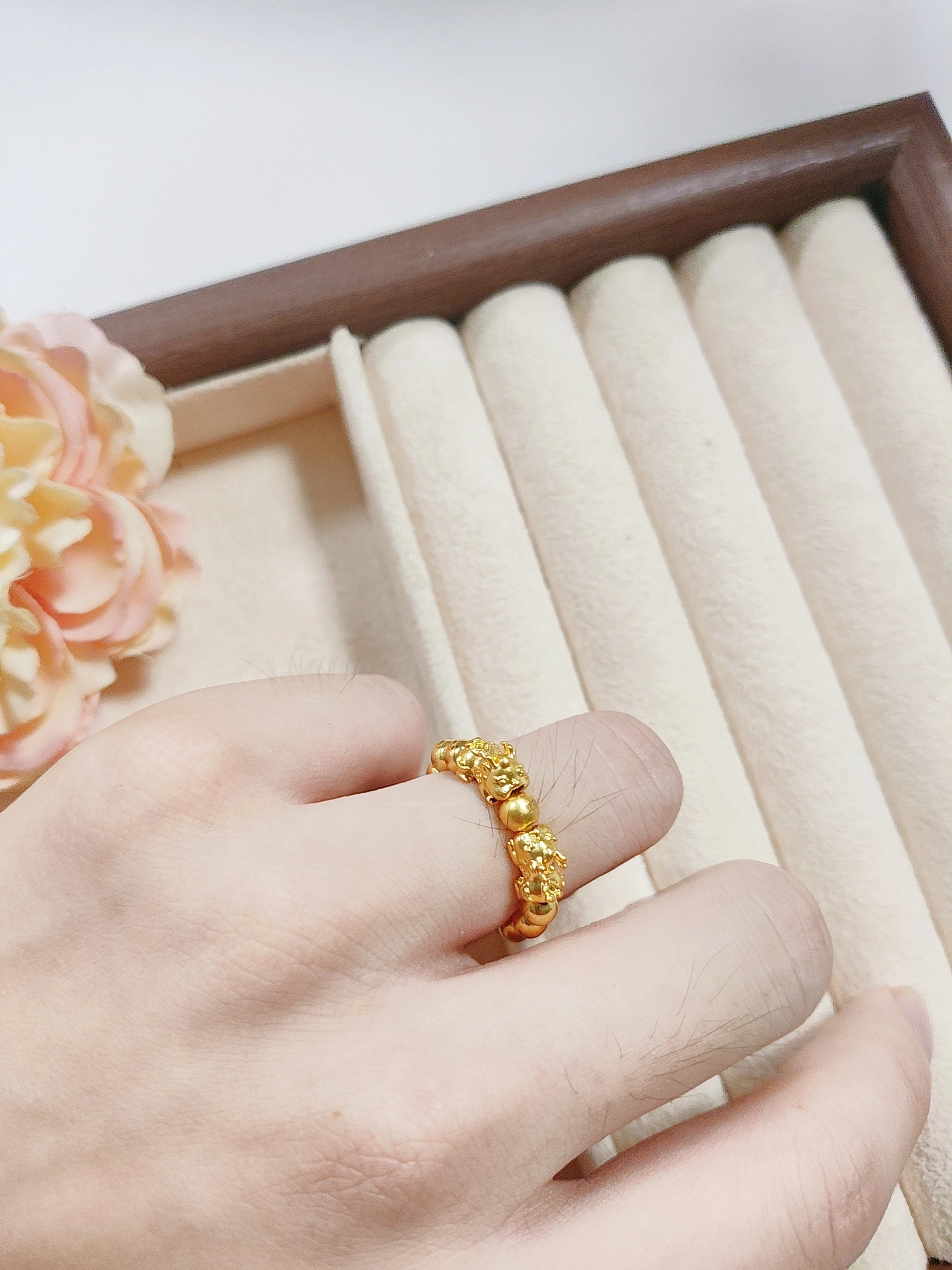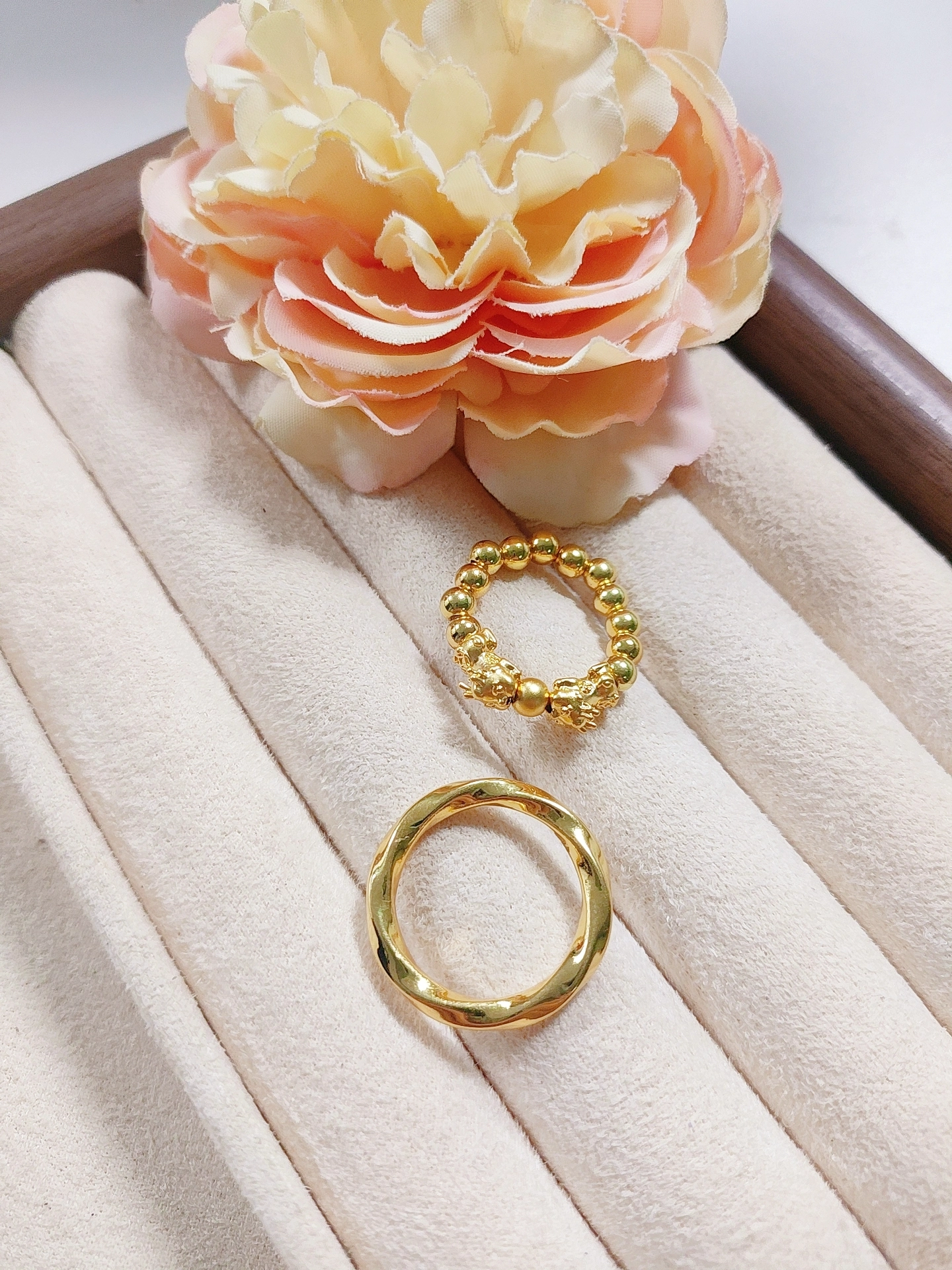 我发现一对很有意思的戒指组合诶~貔貅款萌乎乎的,寓意也讨喜,配着莫比乌斯素圈戴,简约又有氛围感,像把‘永恒爱意’和‘吉祥好运’都圈住了✨ 日常单戴素圈也低调百搭,不过貔貅款细节多,洗手得注意别刮到~情侣戴或者自己叠戴都好有风格,春夏配小裙子、小衬衫都很加分,我自己戴着上班、约会都合适,算是最近挖到的配饰小惊喜啦🥰