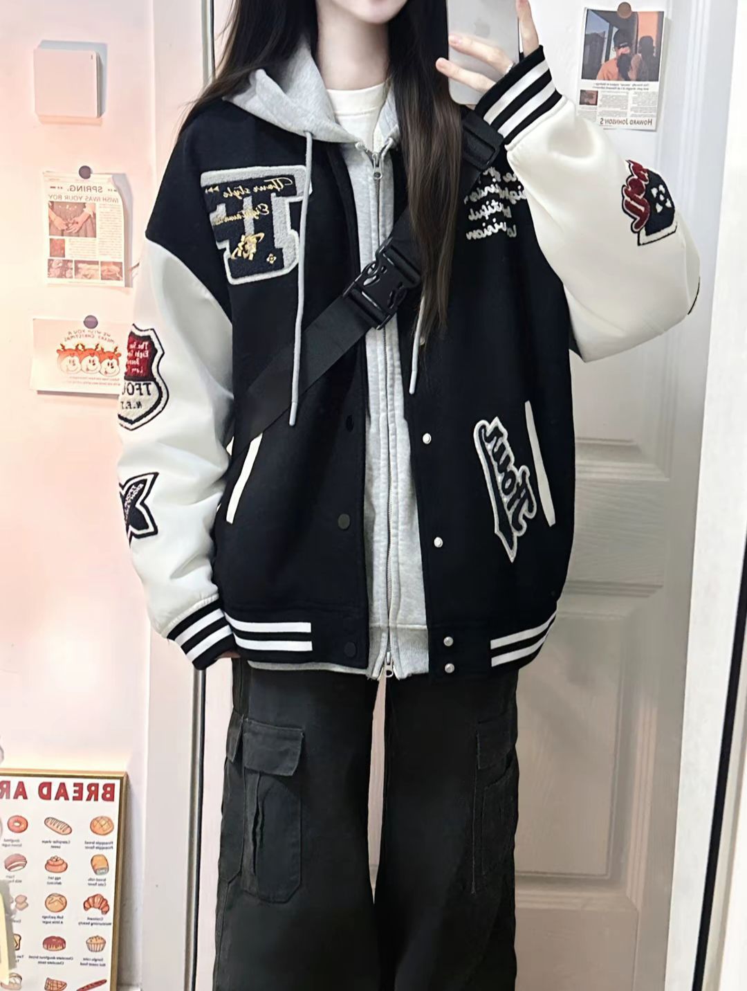 美式棒球服十灰色卫衣叠穿好有秋冬少年感!!!
