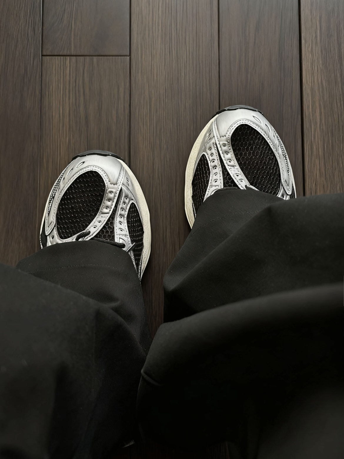 经典的网眼材质搭配未来感银色装饰 复古中还透着高级感 通勤出街✅ 轻运动溜达✅ 一双搞定 舒适度杠杠的还百搭!