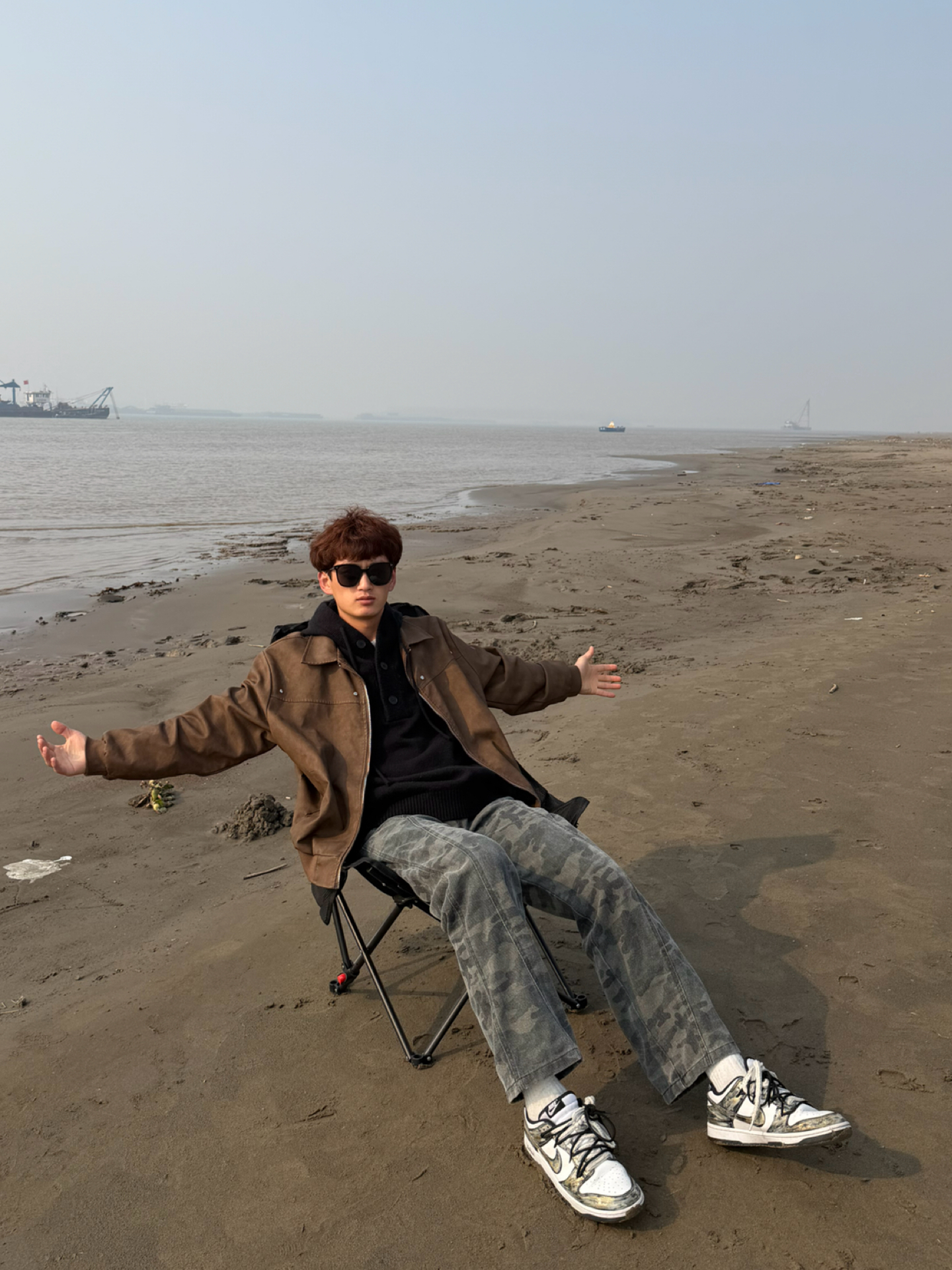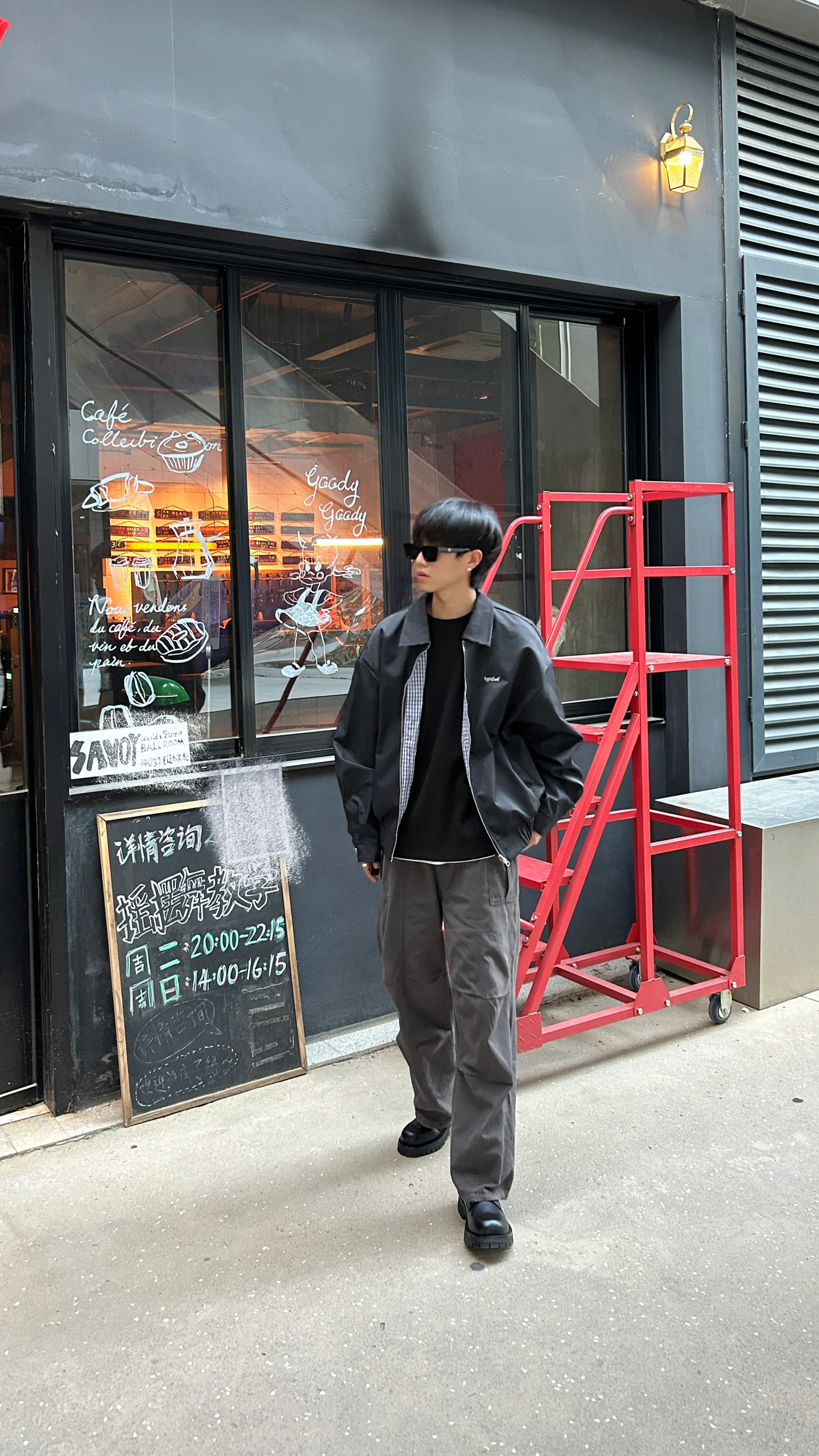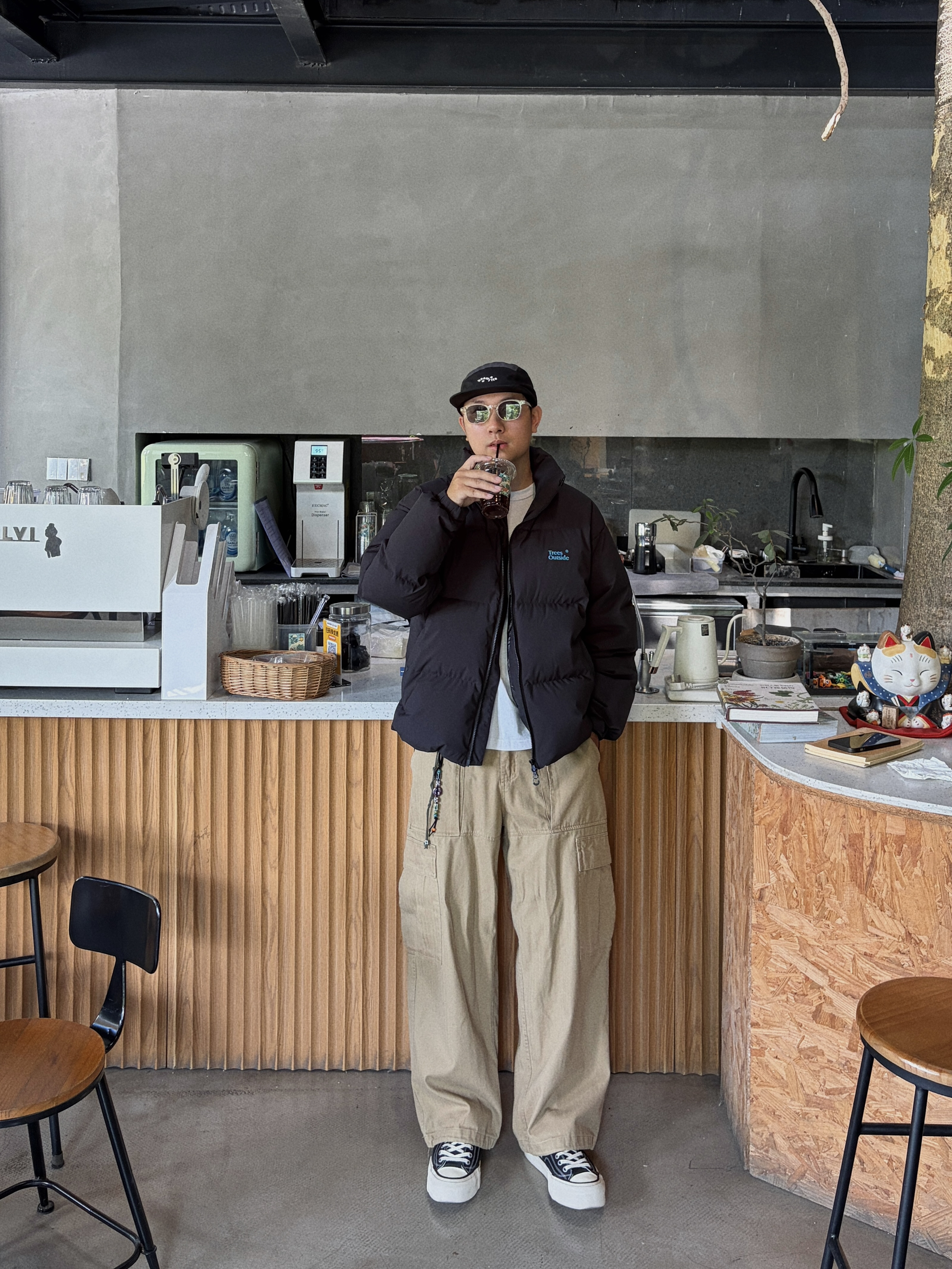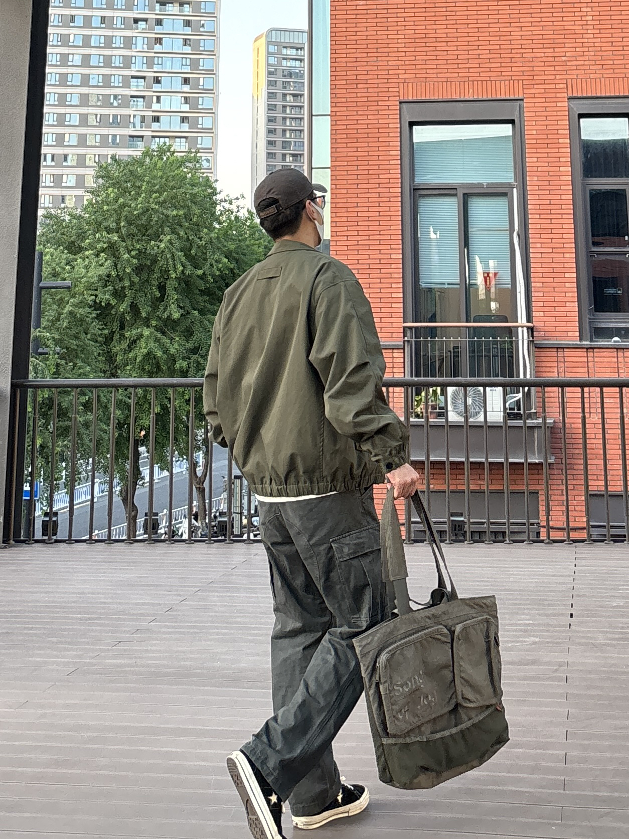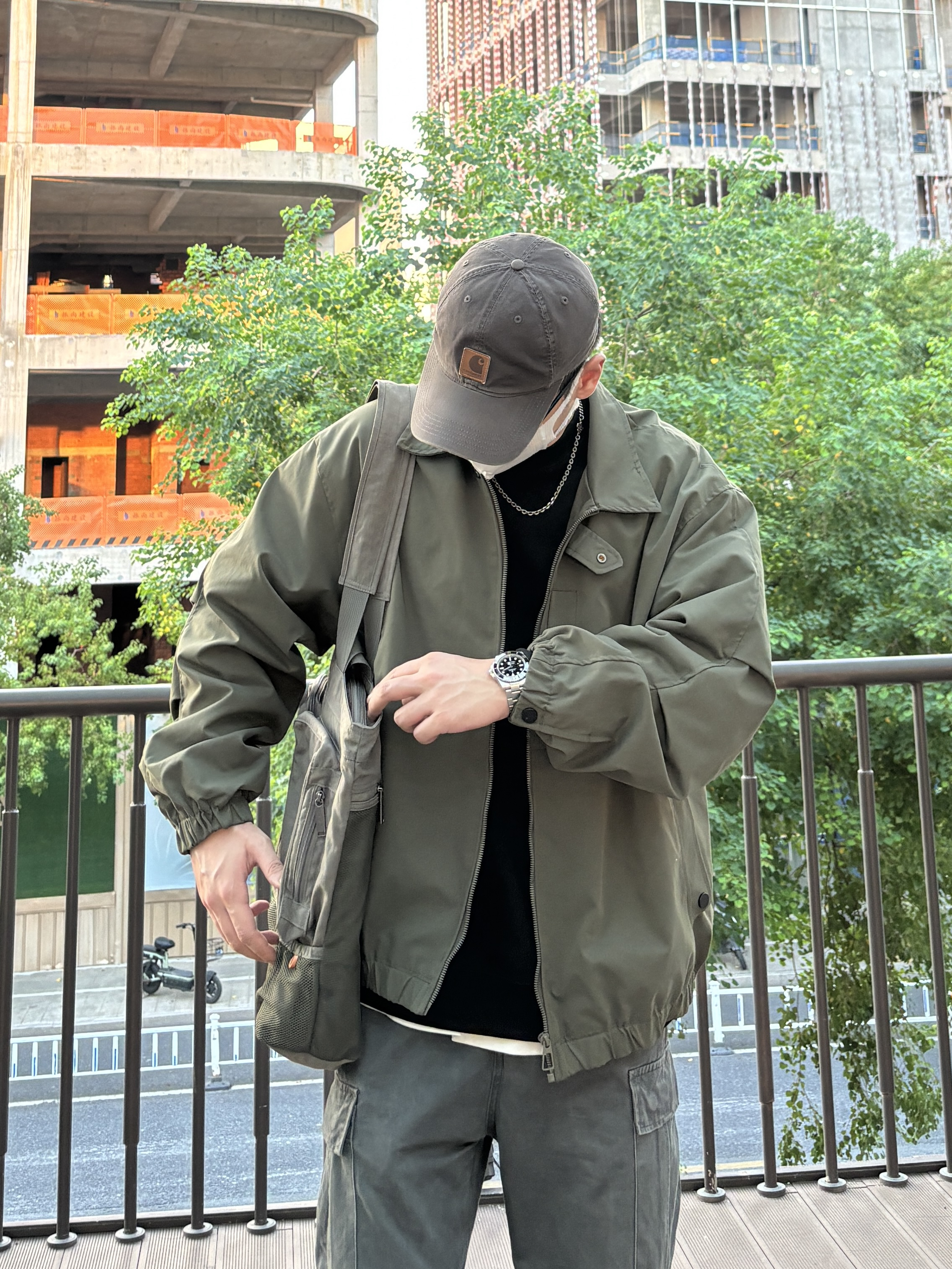 今天选择黑色圆领卫衣搭配绿色阔版飞行夹克,再搭一条深灰色工装裤,最后穿双经典百搭的匡威one star,复古又休闲😎 - 衣服裤子:NICE LILI 鞋子:匡威one star