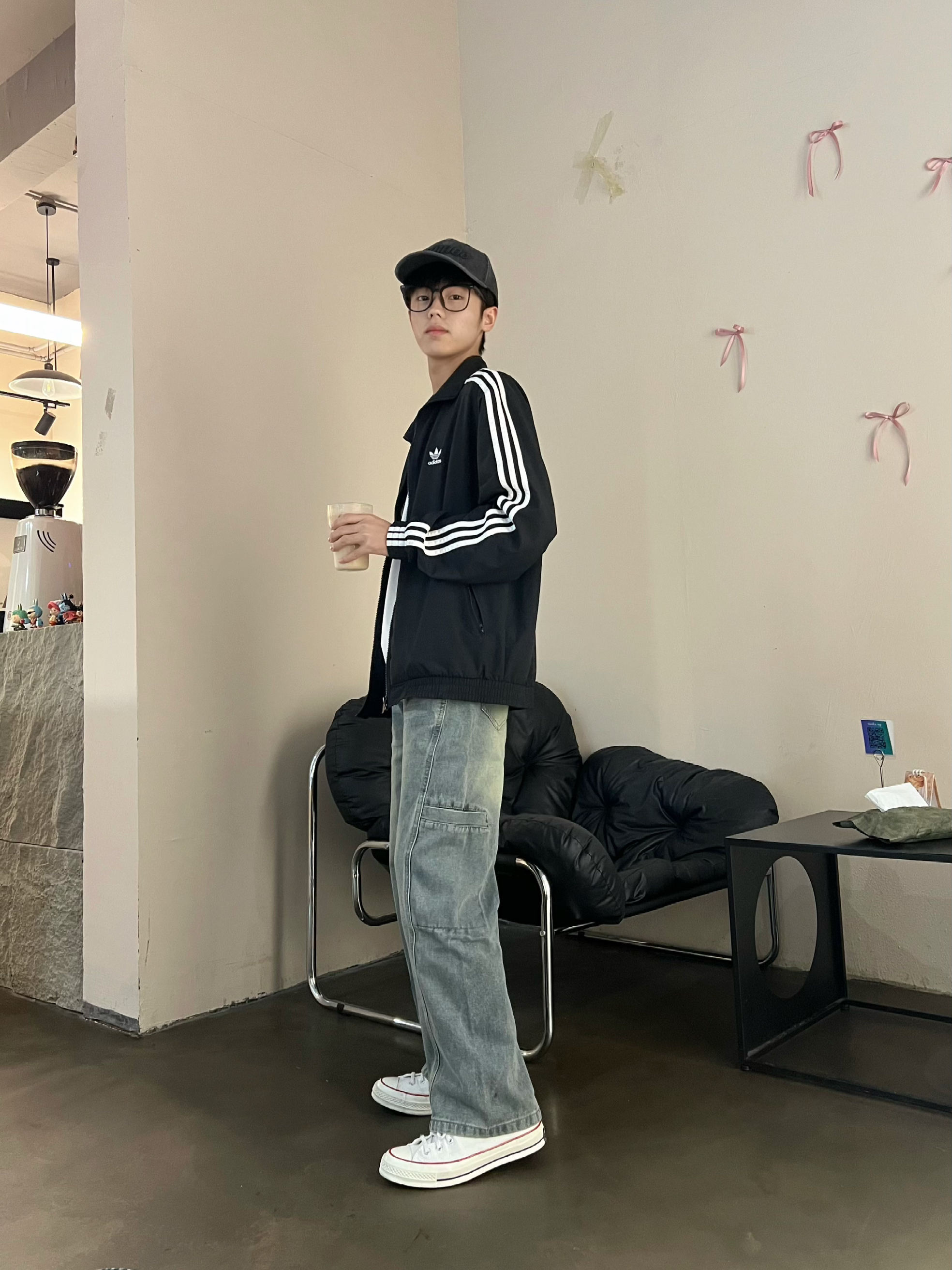 上衣阿迪夹克秋冬必备穿搭单品~ 厚度适中 单穿叠穿都好看 搭配上这双匡威简单帅气!!