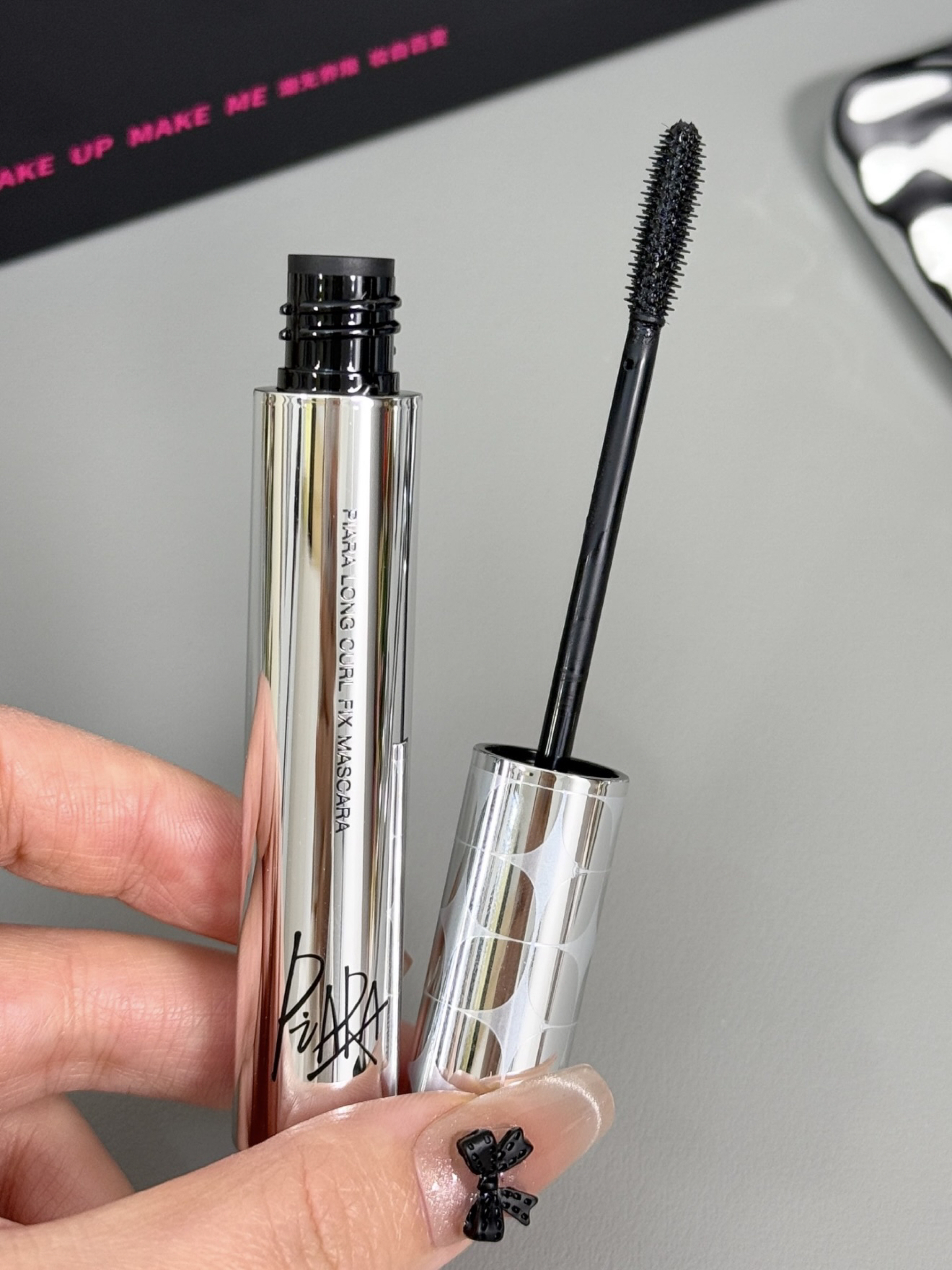 piara你是懂女孩子的 介个黑粉配色的彩妆礼盒吼吼看! 打开之后里面是散粉+睫毛膏+手持镜 散粉粉质还挺细腻的 每次上完底妆之后用它定妆 一按磨皮 睫毛膏刷头细密 能照顾到每一根睫毛 刷出来的睫毛纤长 也不会苍蝇腿