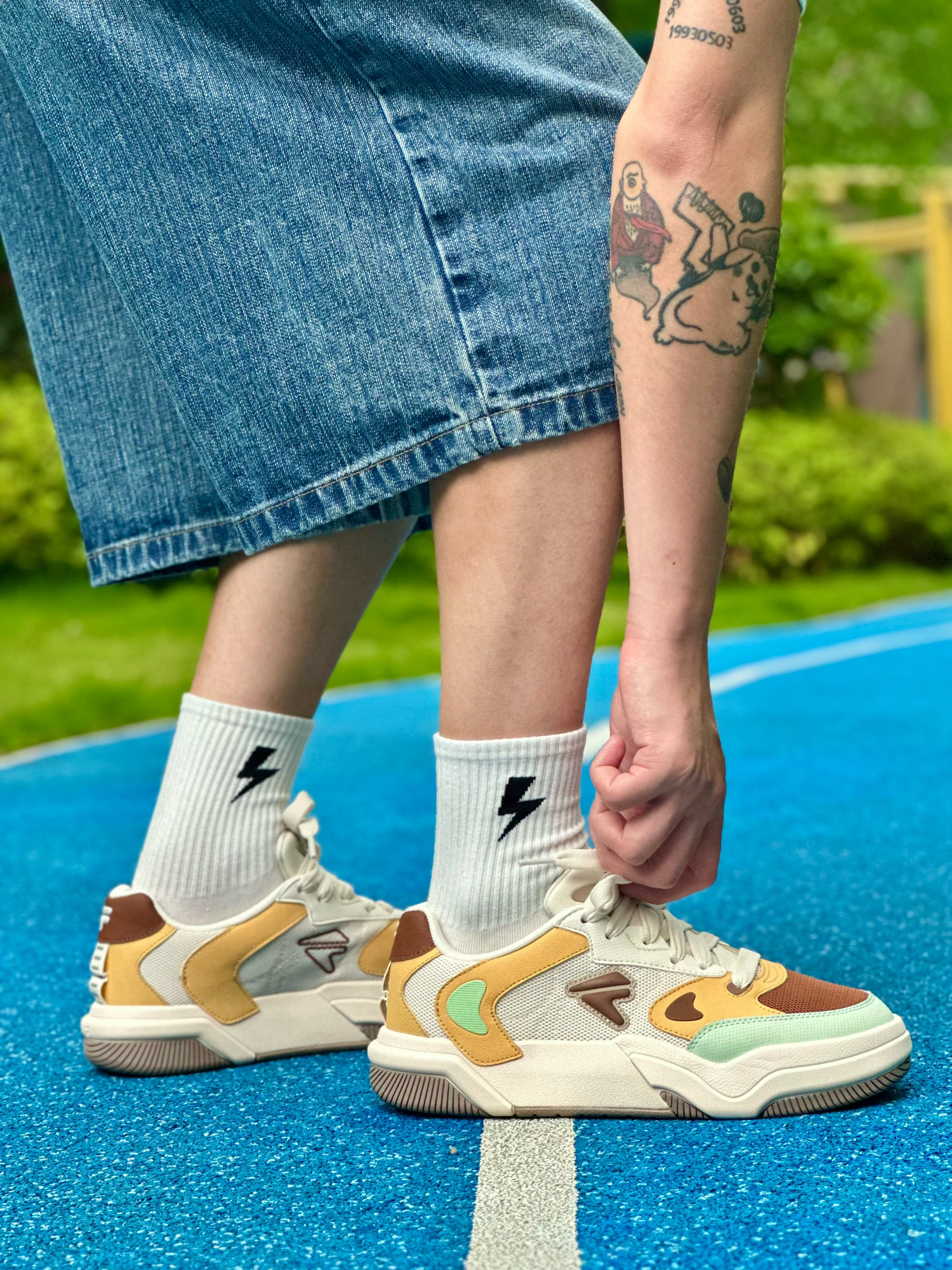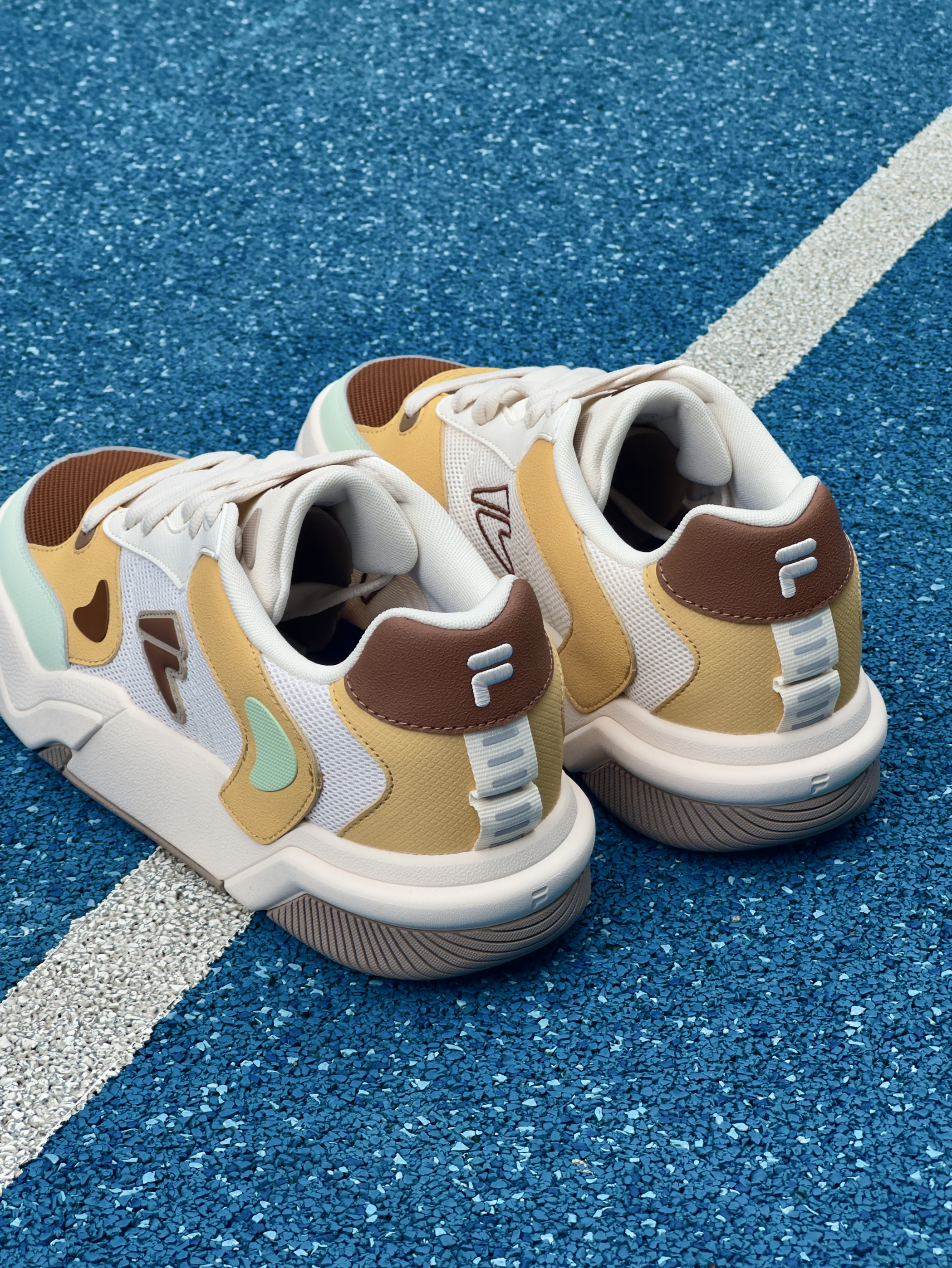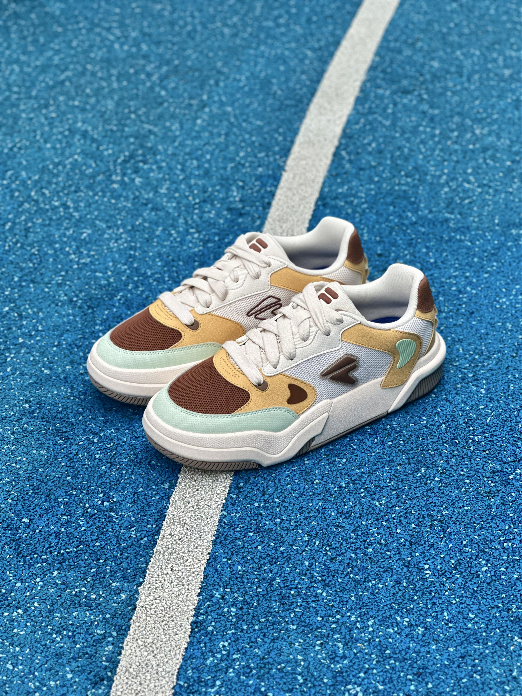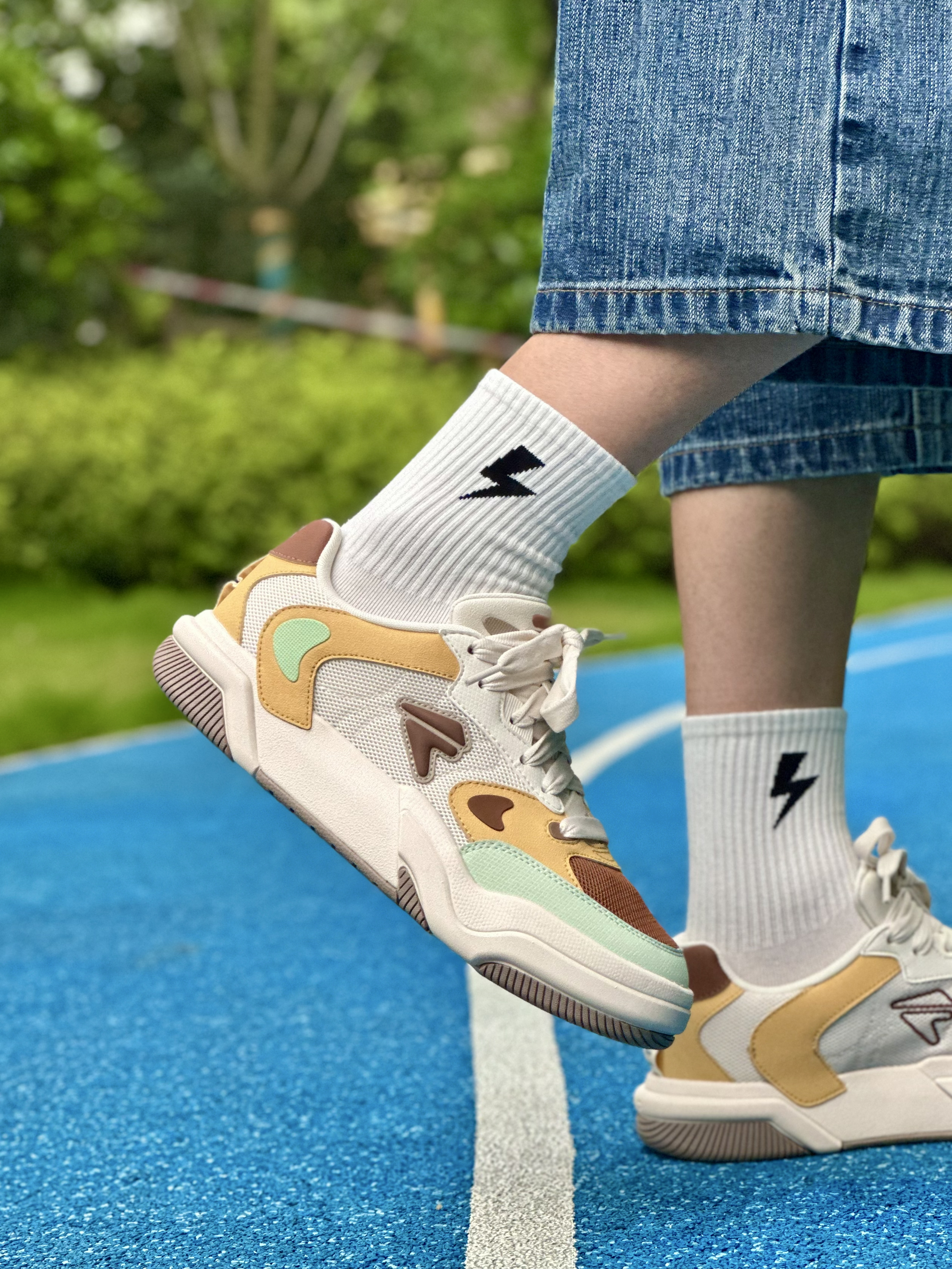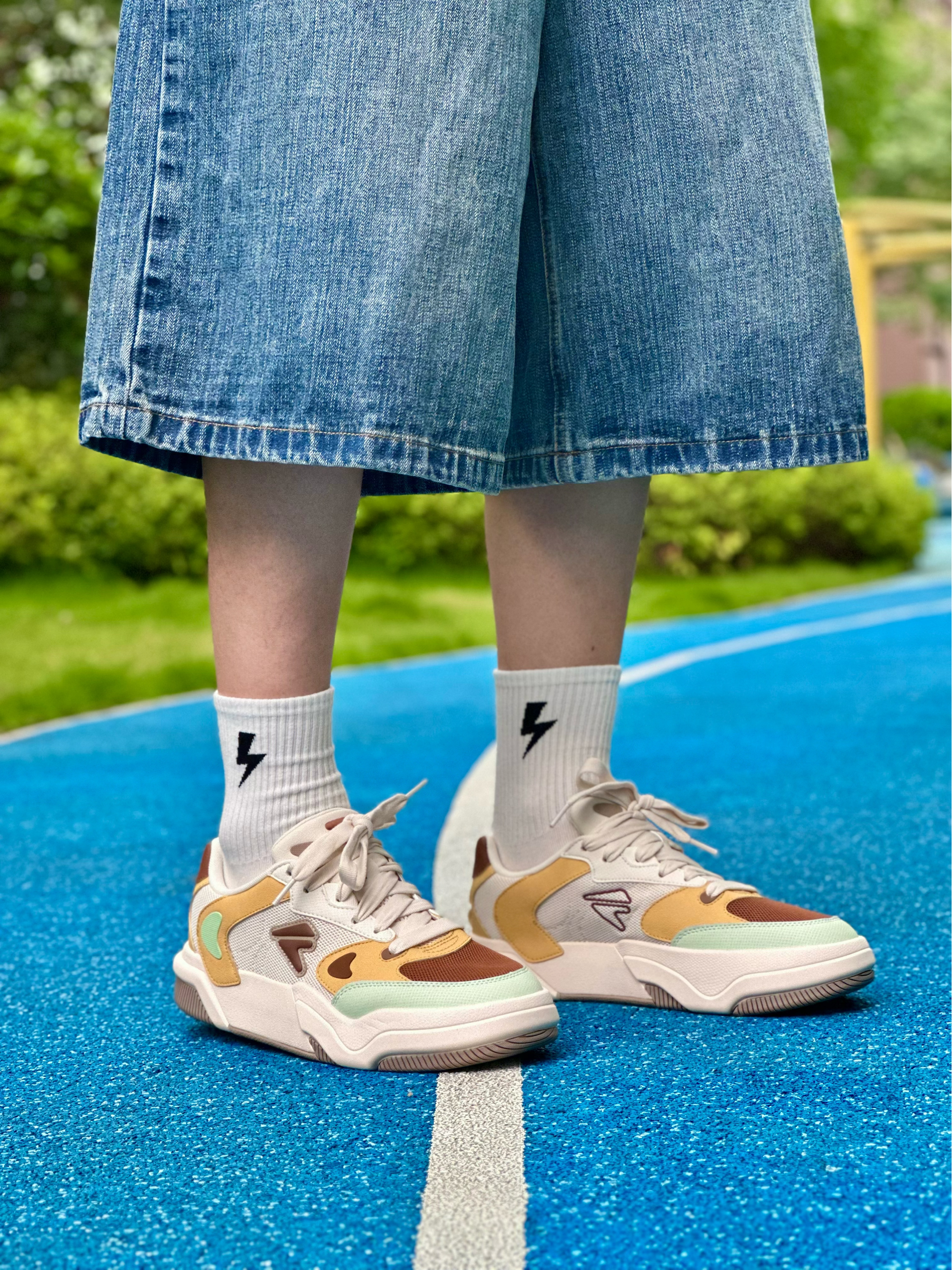 当90年代vibe撞上千禧年糖果色 这双自带复古感的斐乐潮牌GRIND休闲板鞋 就是我为夏日出街而准备的通勤搭子~ 焦糖棕+杏叶黄+薄荷绿的三色拼接 看起来清新又复古,上脚是满满的少年感 加厚发泡大底拉长腿部比例 悄悄增高3.5cm 脚感却轻得如踩进云朵面包里🥯 日常除了搭短裤,拿去配阔腿裤、工装裤都好看 一双鞋承包我的夏日衣橱ootd.