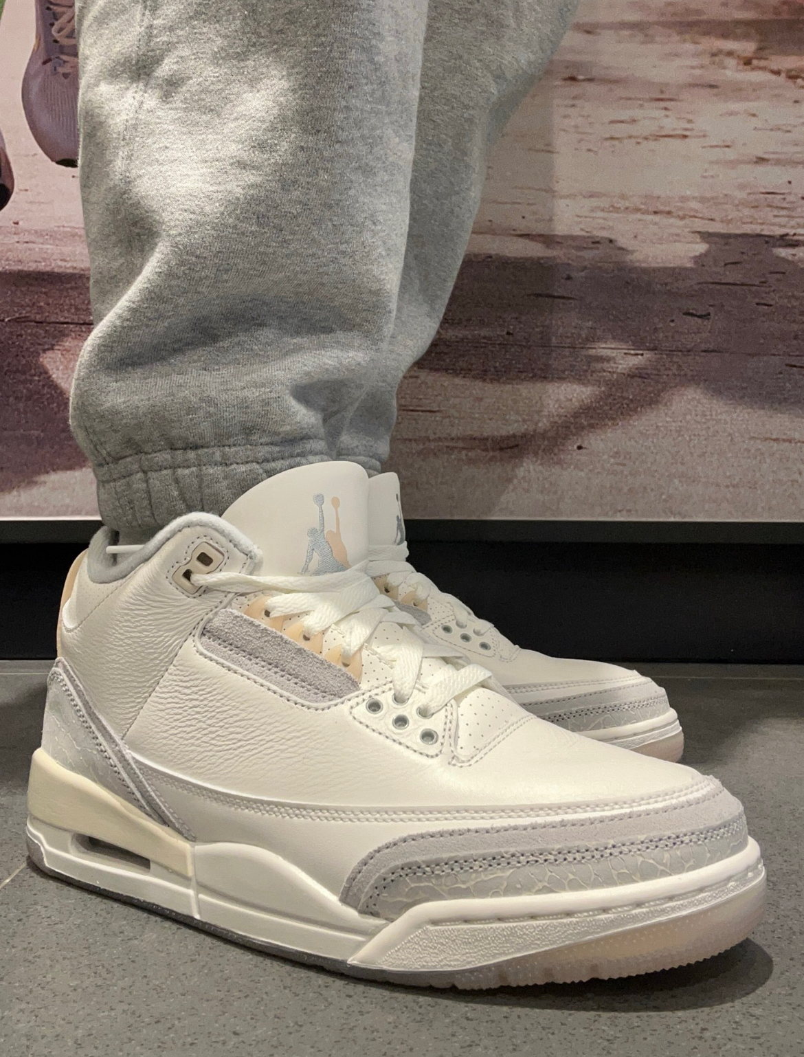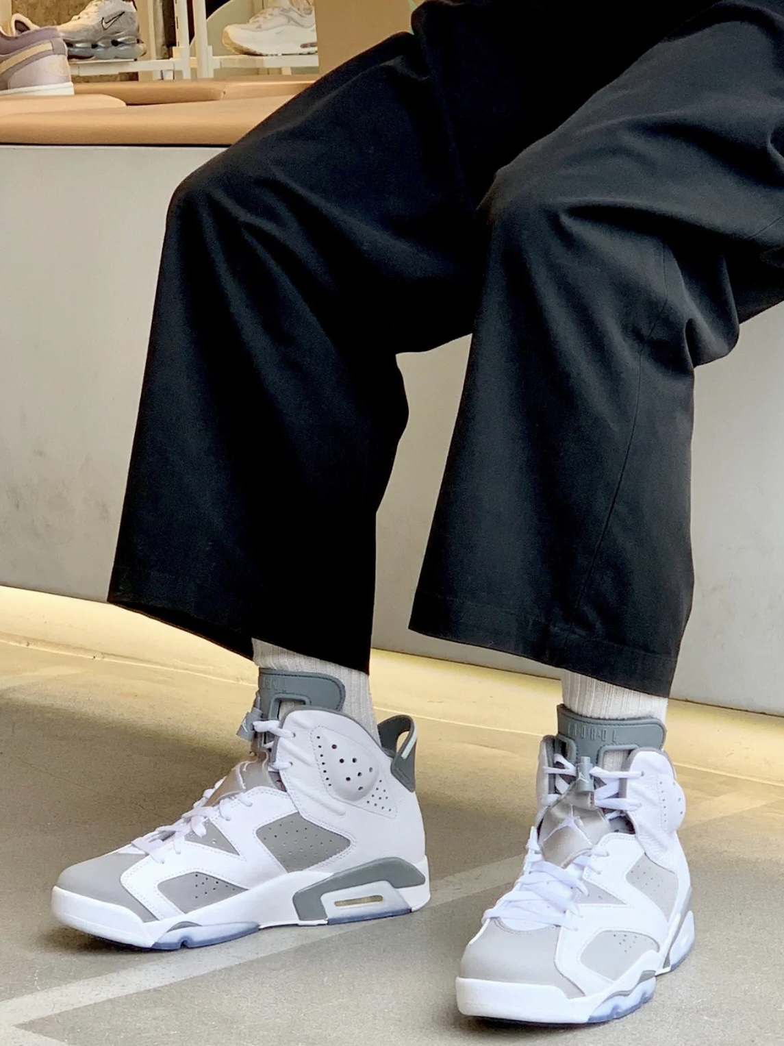 漆皮面积比经典款更大,质感高级,实物比图片惊艳太多!上脚第一感觉是包裹性一如既往的优秀,但透气性好了不少,夏天穿也不会闷脚。 经典的碳板和气垫加持,走路带点软弹,通勤逛街完全不累脚。 这个冰蓝色非常清爽,搭配灰色运动裤或者黑色工装裤都毫无压力,既能收藏又能日常穿,真心推荐给所有AJ党!