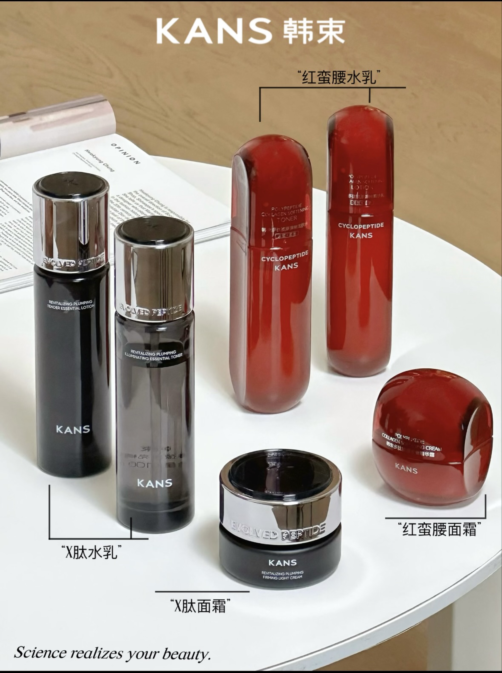 一、红蛮腰系列(适合20+抗初老) 适合肤质:干皮/混干/粗糙暗沉肌(新手抗老首选) • 抗老组合拳:环六肽-9+紧致组合肽直击胶原流失,用后苹果肌肉眼可见嘭弹 • 抗氧抗糖双通路:VC+VE+阿魏酸对抗自由基,肌肽阻击糖化,改善暗黄粗糙 • 润而不腻质地:水乳触肤即融,面霜如乳酪般丝滑,干皮用够润,油皮用不闷 ------ 二、X肽系列(适合25+熟龄肌) 适合肤质:油皮/混油/松垮皱纹肌(进阶...