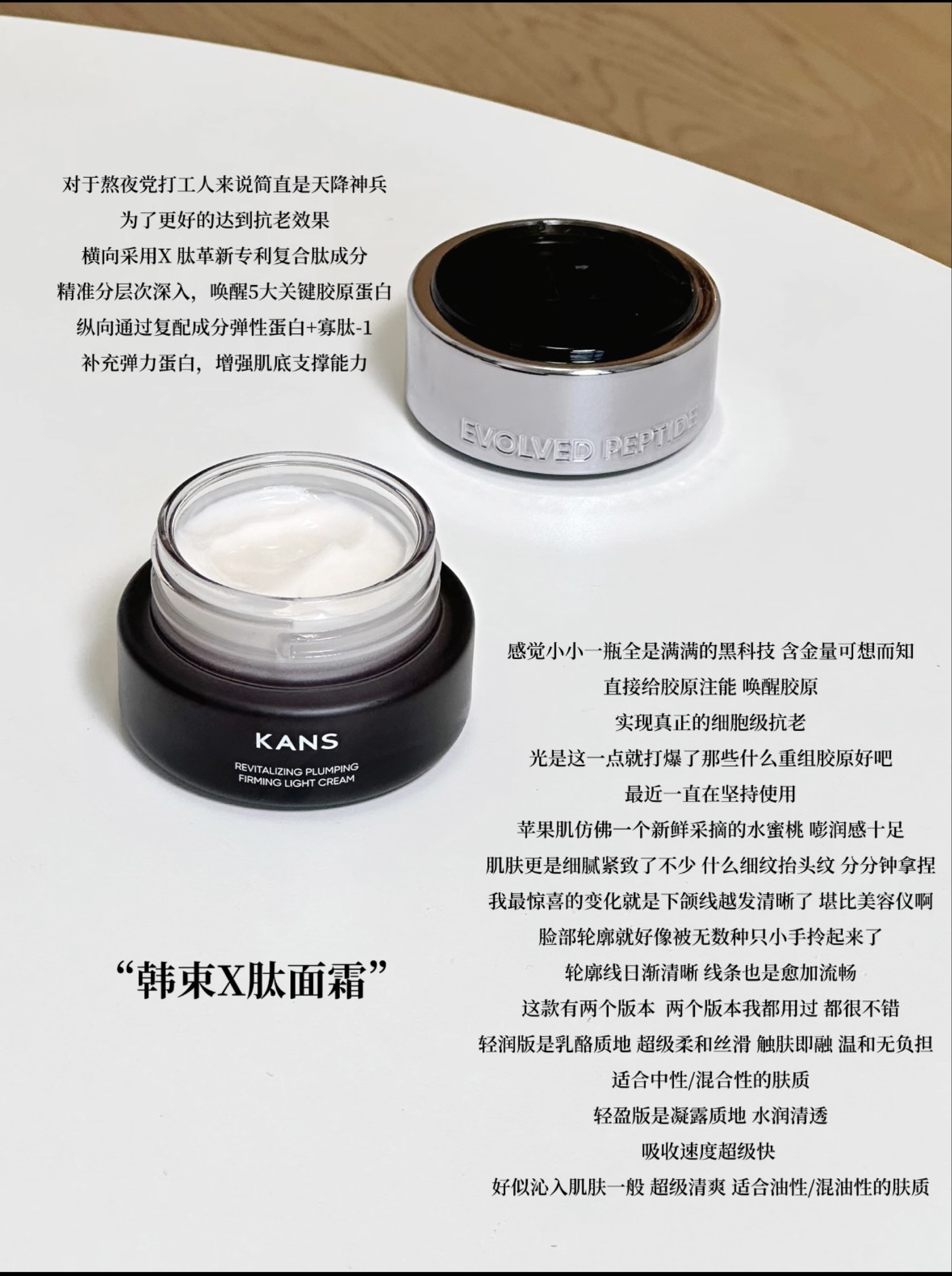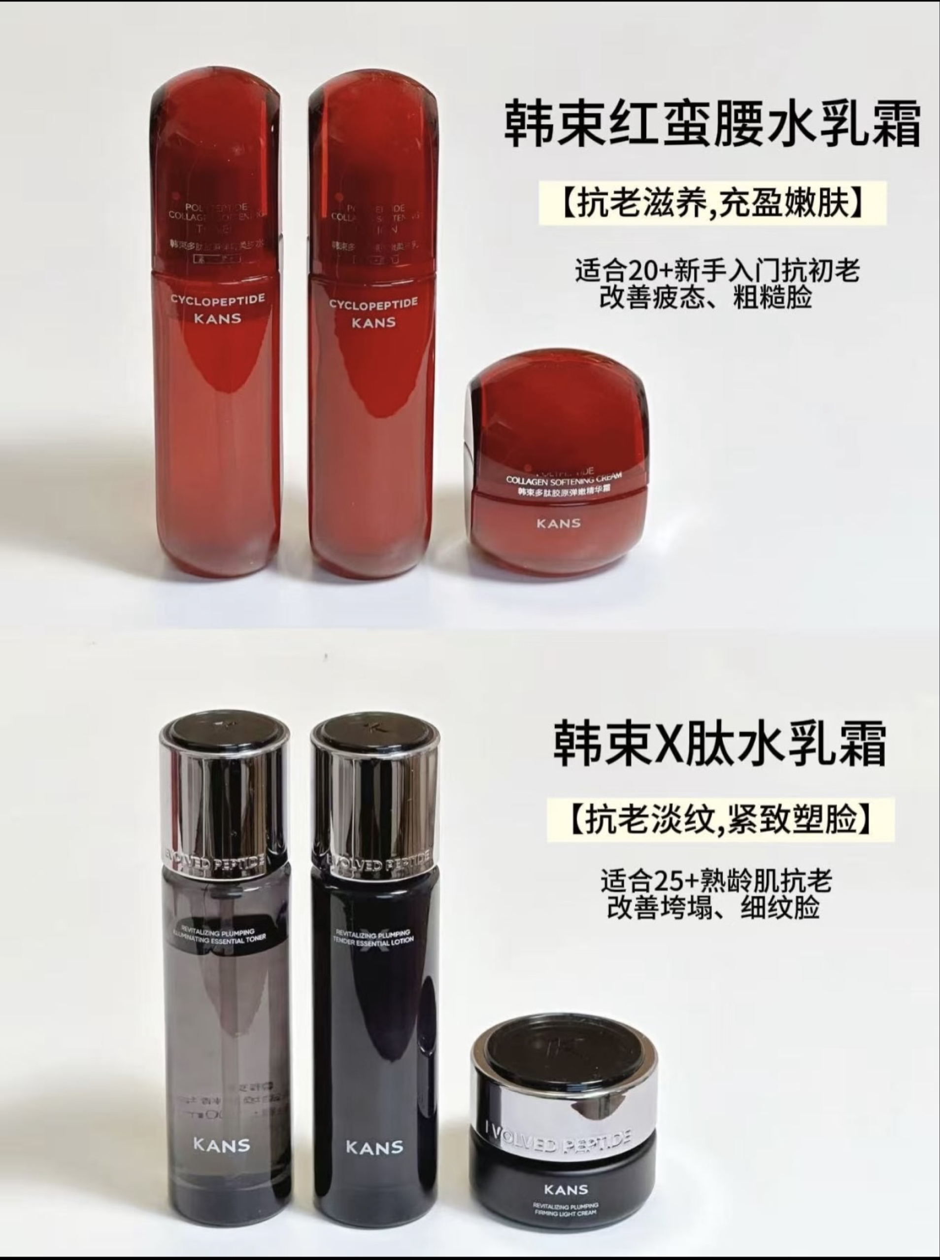 本篇笔记关联了Kans/韩束 X肽超频赋活眼霜 丰盈抚纹紧致抗皱淡化细纹 紧致、Kans/韩束 多肽胶原弹嫩乳霜 保湿提拉紧致肌肤抗氧糖淡纹 【1.0】多肽胶原、Kans/韩束 X肽护肤套装【水+乳】 抗老提拉紧致淡纹保湿 精华水100ml+精华乳100ml等商品,为用户提供真实的使用体验和购买参考。